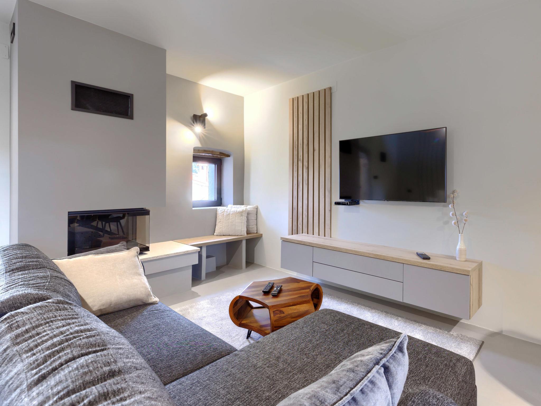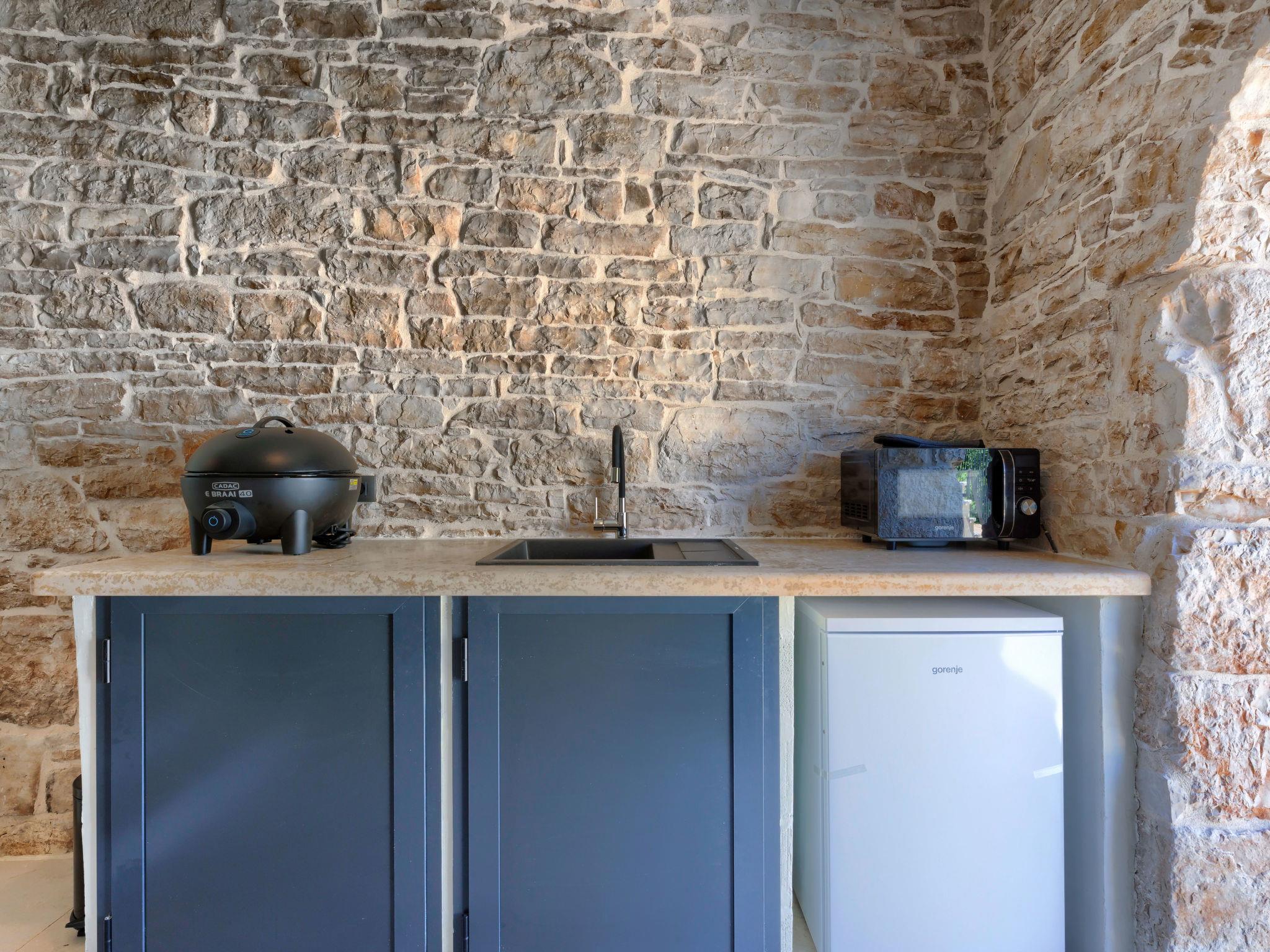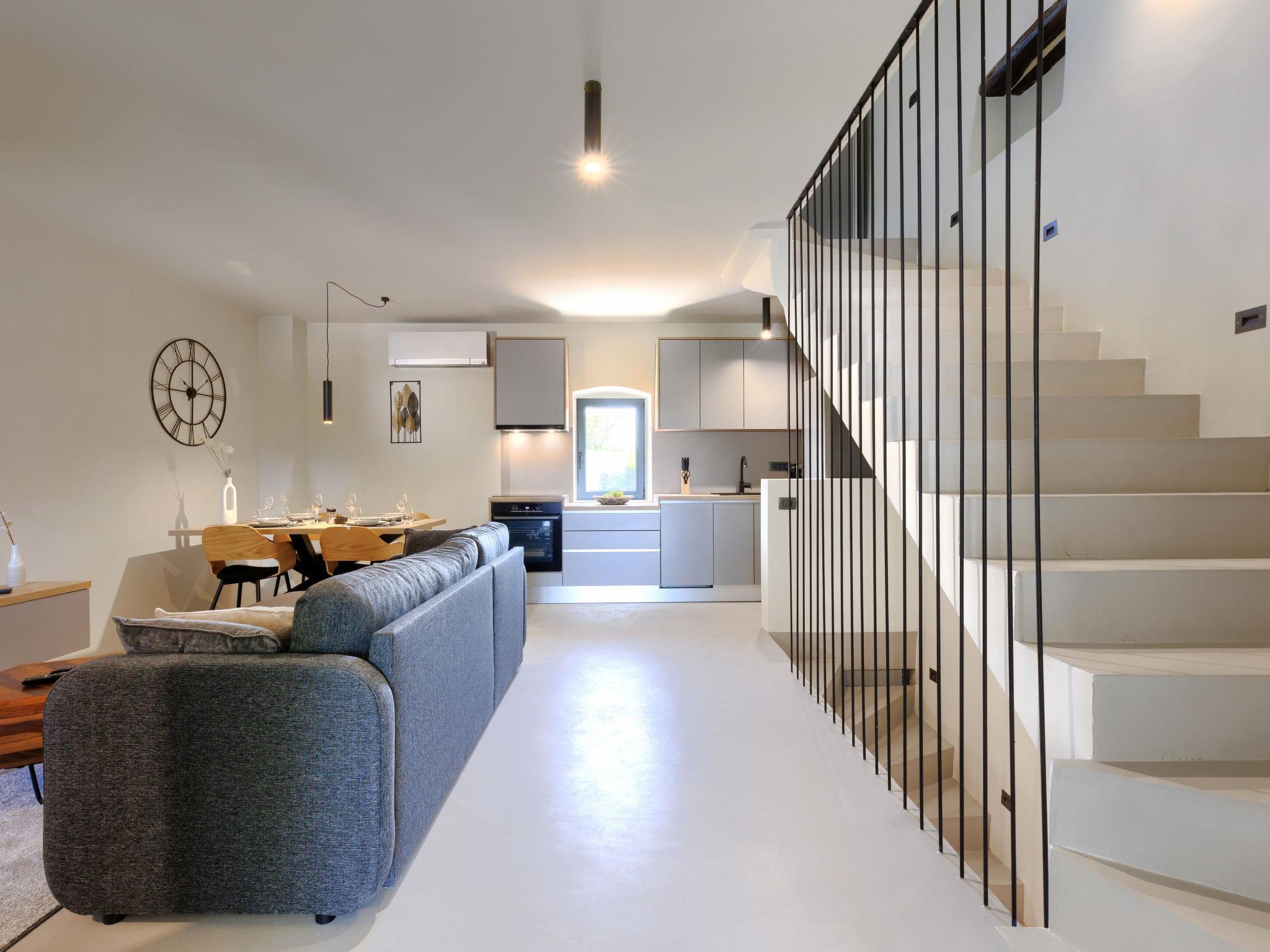 Schönes Reihenhaus "Villa Luca", auf 3 Stockwerken, renoviert im Jahre 2022. Im Weiler Muntrilj, 4 km vom Zentrum von Tinjan, sonnige Lage, 20 km vom Meer. Zur Alleinbenutzung: Grundstück 200 m2 (eingezäunt), Schwimmbad eckig (22 m2, 150 cm tief, saisonale Verfügbarkeit: 01.Mai. - 01.Okt.) mit Innentreppe. Aussendusche, Terrasse (15 m2), Gartenmöbel, Grill, Poolpflege durch den Besitzer/Gärtner. Im Hause: Internetzugang, Waschmaschine. Parkplatz (für 2 Autos) beim Haus auf dem Grundstück. Einkaufsgeschäft 4 km, Restaurant 4 km, Bar 4 km, Bushaltestelle 3.5 km, Kieselstrand 20 km, Felsstrand 20 km. Wanderwege ab Haus 100 m, Radweg 150 m. Nahe gelegene Sehenswürdigkeiten: Adrenalin park 8 km. Der Besitzer akzeptiert keine Jugendgruppen.