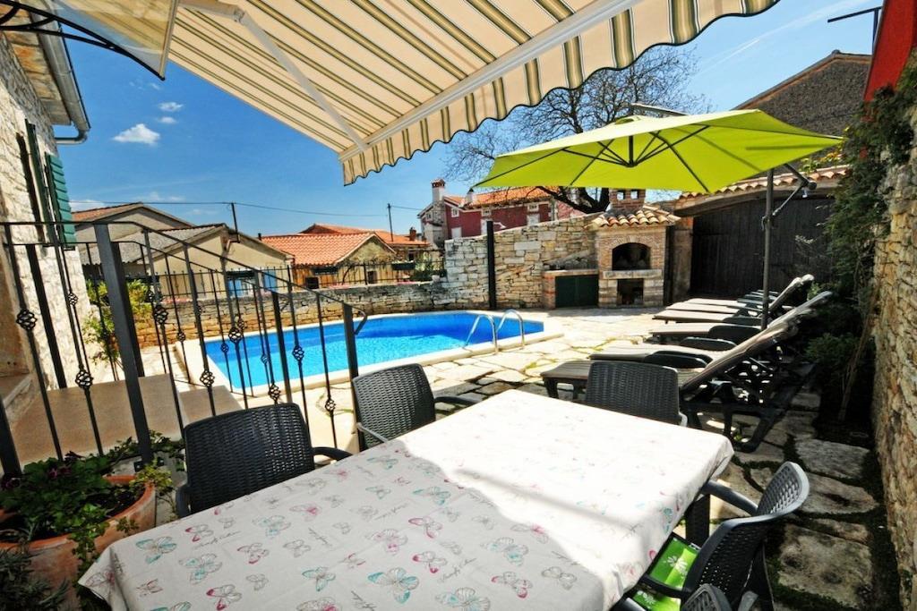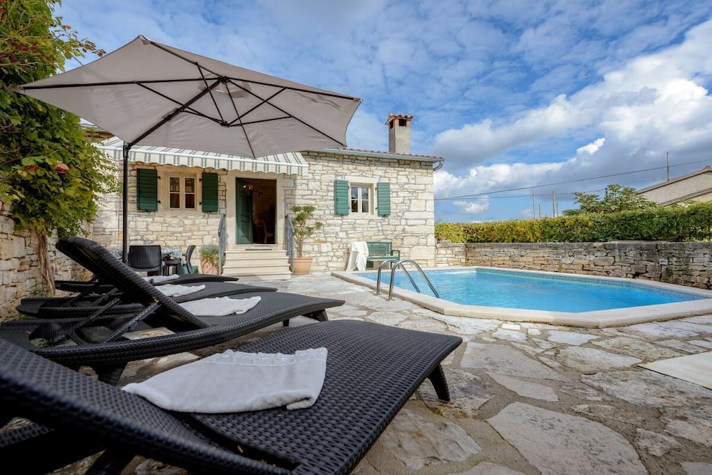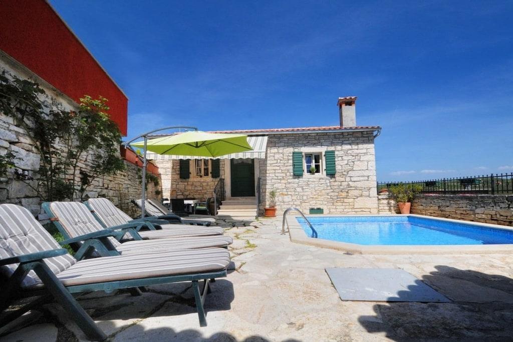 Casa Antignana ist ein traditionelles istrisches Steinhaus im Zentrum von Tinjan, Istrien, Kroatien. Es ist ein perfekter Ort, wenn Sie wie ein Einheimischer leben möchten. Das Ferienhaus wurde 2012 im ursprünglichen Stil und aus traditionellen Materialien umgebaut. Der vor Ort gefundene Stein wird wiederverwendet, alte Treppen werden jetzt in Kaminrahmen umgewandelt, altes vorderes Holztor ist noch vorhanden ... Dicke Wände halten es im Sommer relativ kühl. Es gibt jedoch Klimaanlagen in jedem Schlafzimmer und einem Wohnbereich.Das Wohnzimmer bietet Blick auf den Garten und den Pool. Das Haus besteht aus einer offenen Küche, einem Wohnzimmer und einem Badezimmer mit Dusche im ersten Stock. Im Erdgeschoss befinden sich zwei Schlafzimmer und ein kleines Badezimmer mit Dusche. Im Garten gibt es einen Pool mit Hydromassage, Grill, Tisch, Stühlen, Sonnenliegen und Sonnenschirm. Die hohen Steinmauern umgeben das Anwesen.Das Anwesen ist haustierfreundlich. Ein kleiner öffentlicher Parkplatz befindet sich an der Seite des Grundstücks.