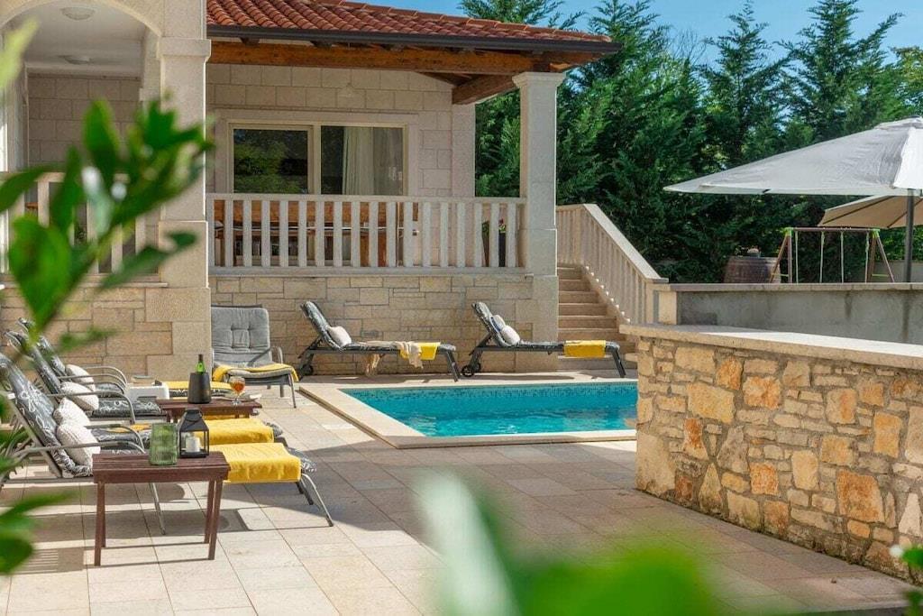 In der Natur eingebettet, verfügt die Villa Coridigo über einen geräumigen umzäunten Garten mit einem 26 qm großen Pool, einem Pavillon und einem Grillplatz. Speisen Sie auf der überdachten Terrasse, bleiben Sie aktiv mit unserem Fitnessraum vor Ort und genießen Sie kostenlos Netflix und Prime Video. Im Inneren erstreckt sich der 230 qm große Wohnraum der Villa über zwei voll klimatisierte Etagen. Das Erdgeschoss bietet eine voll ausgestattete Küche, einen Essbereich, ein Wohnzimmer, ein Schlafzimmer und ein Badezimmer. Im Obergeschoss erwarten Sie drei weitere Schlafzimmer mit eigenem Bad und einem Balkon mit herrlichem Blick auf die Landschaft und den Pool. Ihr perfekter Urlaub erwartet Sie in der Villa Coridigo!