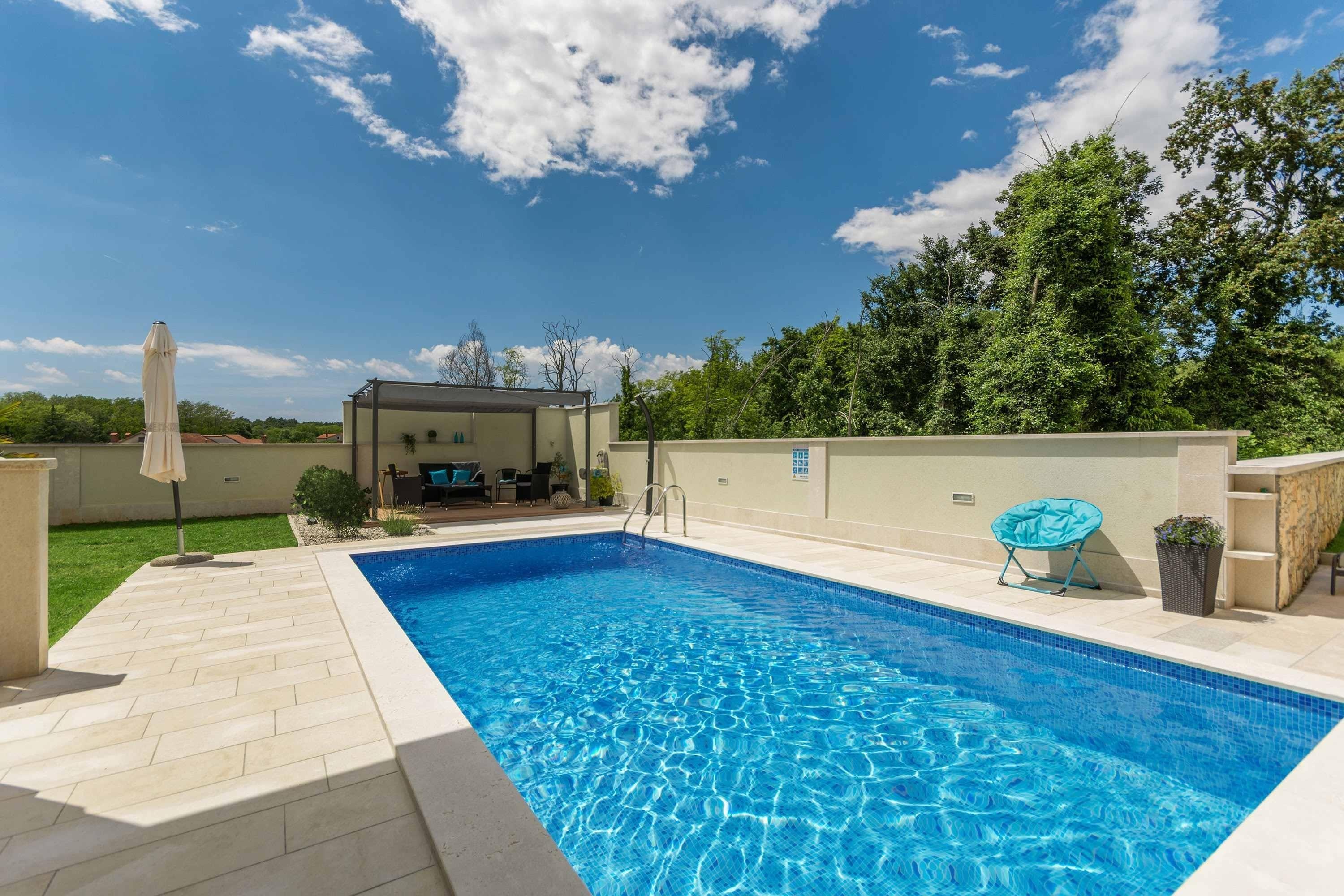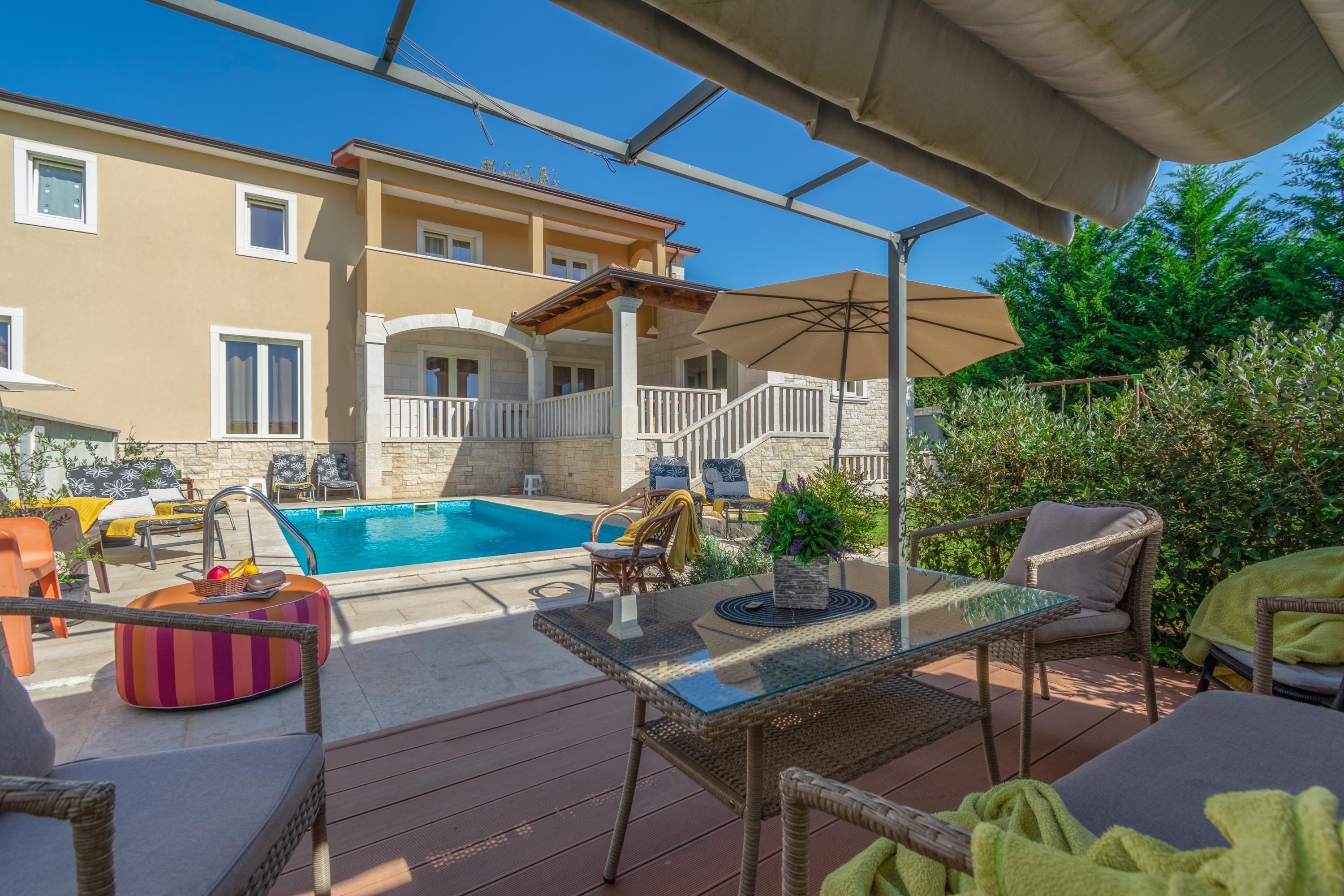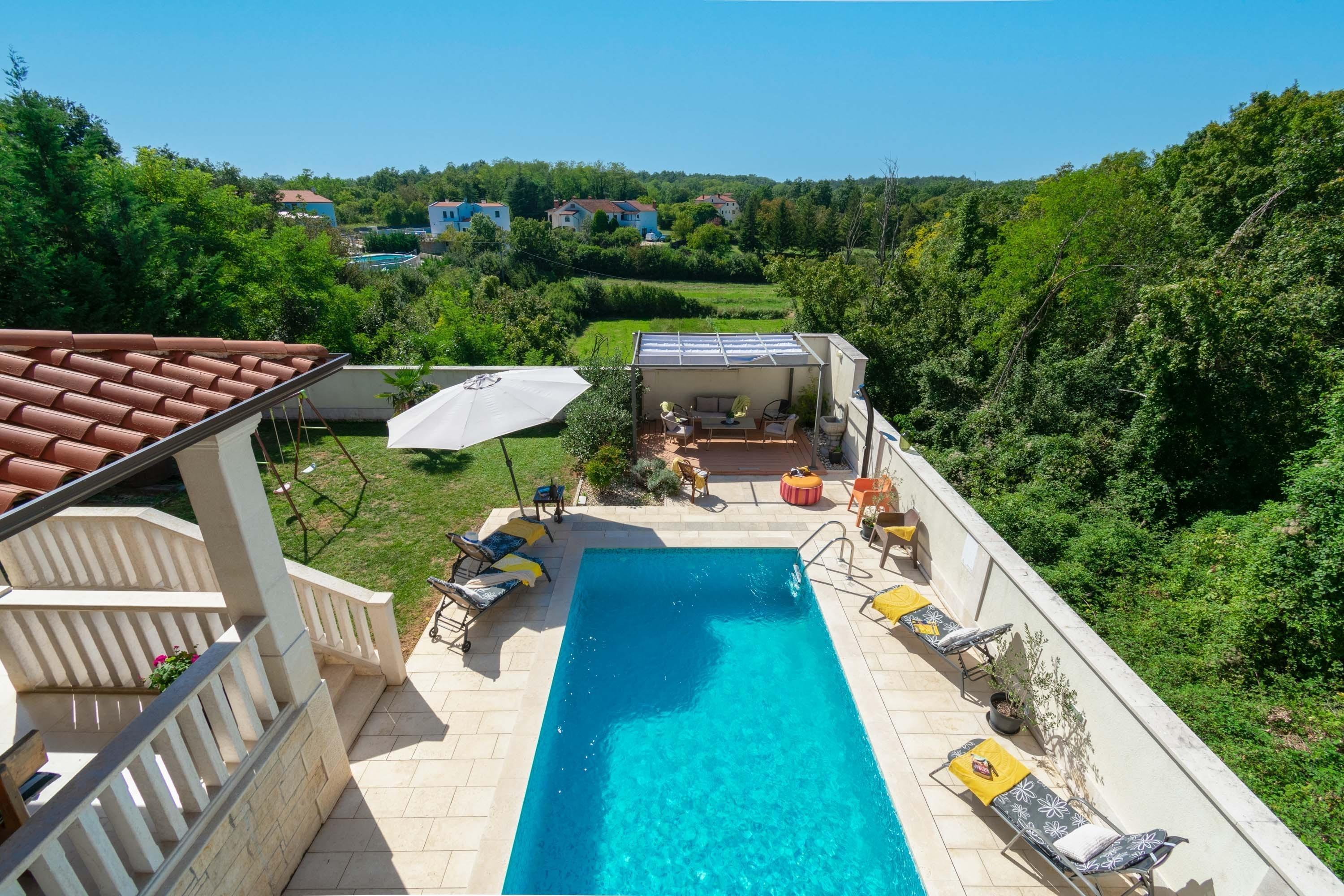Willkommen in der Villa Coridigo, einem 4-Sterne-Ferienhaus in Zentralistrien, ideal für 8+2 Gäste, die Privatsphäre und Entspannung suchen. Auf erhöhtem Gelände gelegen, bietet es wunderschöne Ausblicke, einen 26 m² Pool und 700 m² eingezäunten Außenbereich. Genießen Sie vollklimatisierte Innenräume, eine komplett ausgestattete Küche, kostenloses Netflix & Prime Video sowie Essbereiche im Freien. Nur 20 Minuten von der Küste entfernt, mit einem Restaurant in Gehweite- Ihr perfekter Rückzugsort!