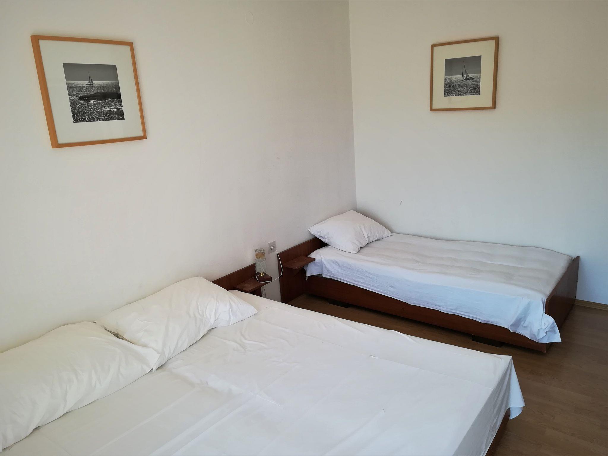 Ferienwohnung bietet Platz für 5 Gäste. Die Betten sind in Schlafzimmern, die es 2 gibt, innerhalb einer Gesamtfläche von 56m2, angeordnet. Die Gäste haben eine eigene Terrasse zur Verfügung, auf der sie in warmen Sommernächten genießen können. Das Apartment bietet Meerblick. In der Unterkunftseinheit besteht die Möglichkeit des Mitbringens von Haustieren, und die Dienstleistung ist im Preis der Unterkunft enthalten. IM PREIS INBEGRIFFEN: Kurtaxe, Endreinigung, Klimatisierung, Parkplatz, Garage, Internet, Haustiere, Bügeleisen, Bügelbrett, Föhn. VERBINDLICHE ZUSÄTZLICHE KOSTEN: Aufzahlung für Kurzaufenthalte (prozentualer Zuschlag pro Nächtigungsanzahl: 30% - 1, 20% - 2, 10% - 3). Die Verfügbarkeit zusätzlicher Dienstleistungen in Ihrem reservierten Termin und die Preise derselben (falls nicht aufgeführt) müssen im Voraus überprüft werden. Zusätzliche Dienstleistungen die in der Zahlungsaufforderung nicht aufgeführt sind werden direkt beim Vermieter bezahlt, angenommen der Gast nutzt auch diese.