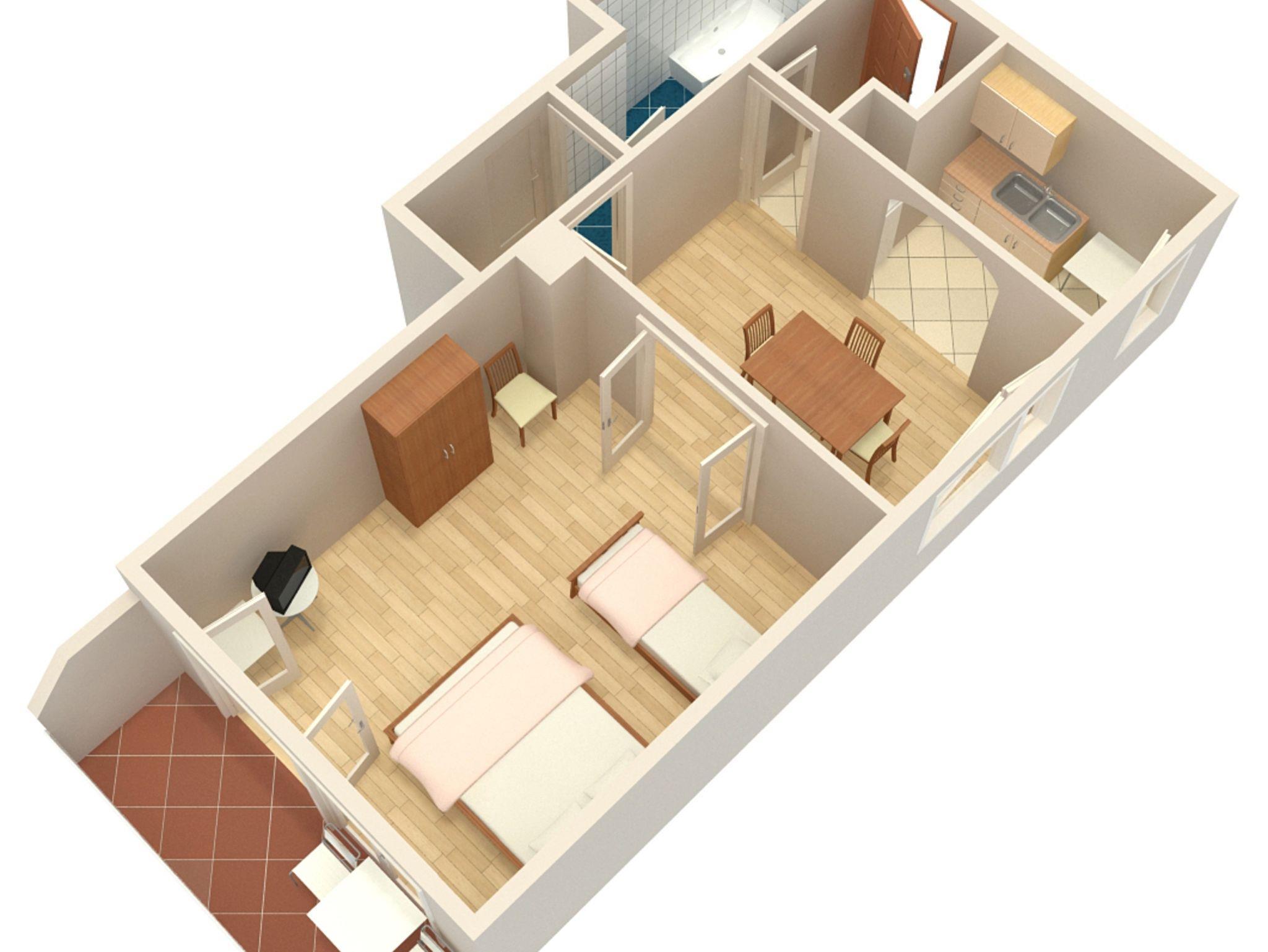 Ferienwohnung bietet Platz für 3 Gäste. Die Betten sind in Schlafzimmern, die es 1 gibt, innerhalb einer Gesamtfläche von 46m2, angeordnet. Die Gäste haben einen eigenen Balkon zur Verfügung, auf der sie in warmen Sommernächten genießen können. Das Apartment bietet Meerblick. In der Unterkunftseinheit besteht die Möglichkeit des Mitbringens von Haustieren, und die Dienstleistung ist im Preis der Unterkunft enthalten. IM PREIS INBEGRIFFEN: Kurtaxe, Endreinigung, Klimatisierung, Parkplatz, Garage, Internet, Haustiere, Bügeleisen, Bügelbrett, Föhn. VERBINDLICHE ZUSÄTZLICHE KOSTEN: Aufzahlung für Kurzaufenthalte (prozentualer Zuschlag pro Nächtigungsanzahl: 30% - 1, 20% - 2, 10% - 3). Die Verfügbarkeit zusätzlicher Dienstleistungen in Ihrem reservierten Termin und die Preise derselben (falls nicht aufgeführt) müssen im Voraus überprüft werden. Zusätzliche Dienstleistungen die in der Zahlungsaufforderung nicht aufgeführt sind werden direkt beim Vermieter bezahlt, angenommen der Gast nutzt auch diese.