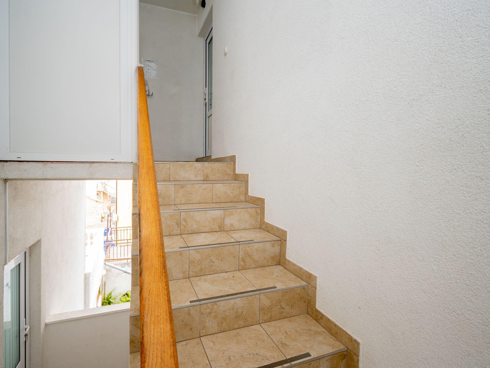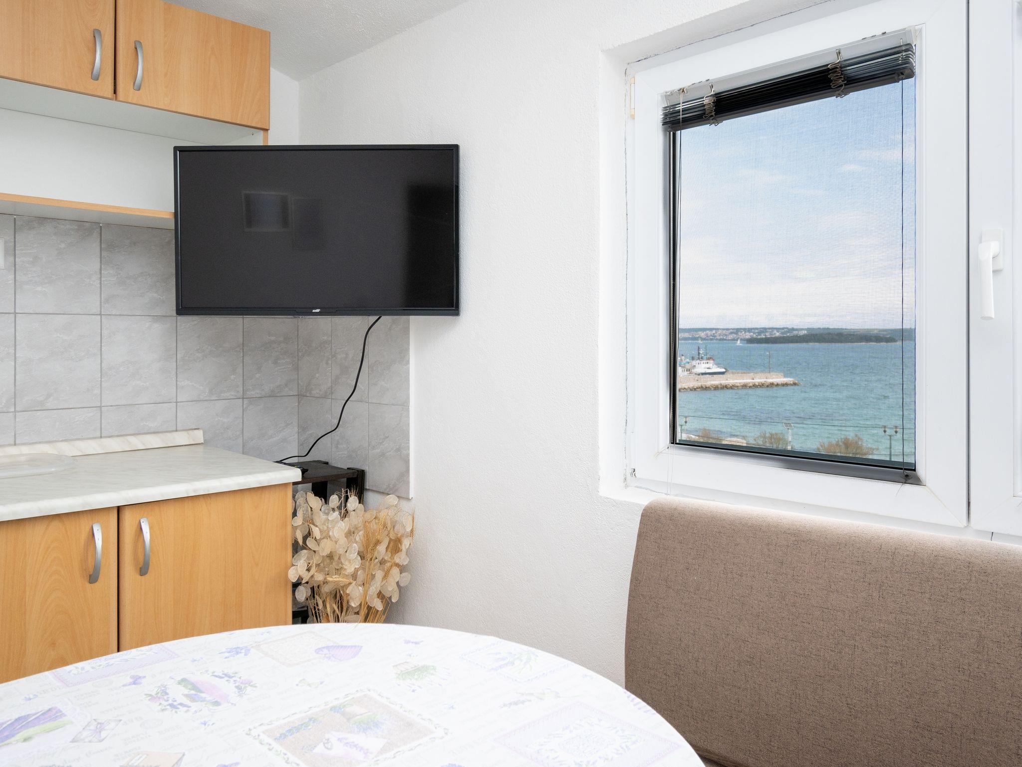 Ferienwohnung bietet Platz für 3 Gäste. Die Betten sind in Schlafzimmern, die es 1 gibt, innerhalb einer Gesamtfläche von 27m2, angeordnet. Die Gäste haben eine eigene Terrasse zur Verfügung, auf der sie in warmen Sommernächten genießen können. Das Apartment bietet Meerblick. Es ist erlaubt, Speisen auf dem Gemeinschafts-Grill vorzubereiten. IM PREIS INBEGRIFFEN: Kurtaxe, Endreinigung, Klimatisierung, Parkplatz, Internet, tragbarer Grill. VERBINDLICHE ZUSÄTZLICHE KOSTEN: Aufzahlung für Kurzaufenthalte (prozentualer Zuschlag pro Nächtigungsanzahl: 30% - 1, 20% - 2, 10% - 3). Die Verfügbarkeit zusätzlicher Dienstleistungen in Ihrem reservierten Termin und die Preise derselben (falls nicht aufgeführt) müssen im Voraus überprüft werden. Zusätzliche Dienstleistungen die in der Zahlungsaufforderung nicht aufgeführt sind werden direkt beim Vermieter bezahlt, angenommen der Gast nutzt auch diese. Ermäßigung auf den Grundpreis: Gratistag 14=13 (bei einem Aufenthalt von 14 Tagen oder mehr erhalten Sie einen Gratistag für den Aufenthalt bis 31.12.26).