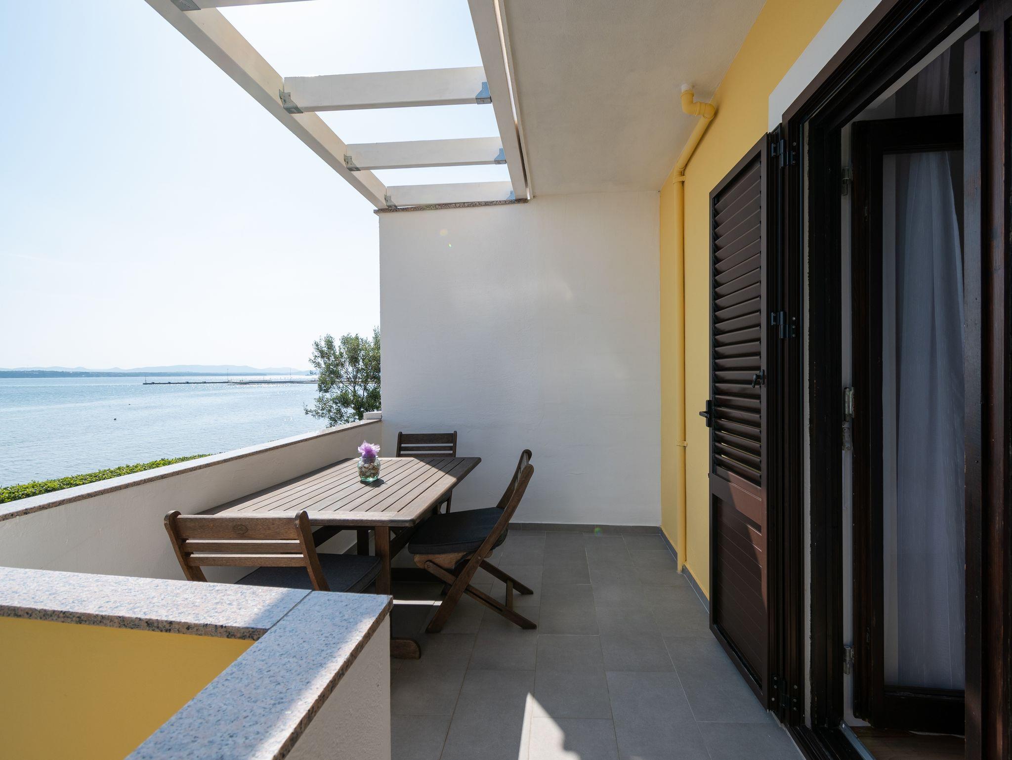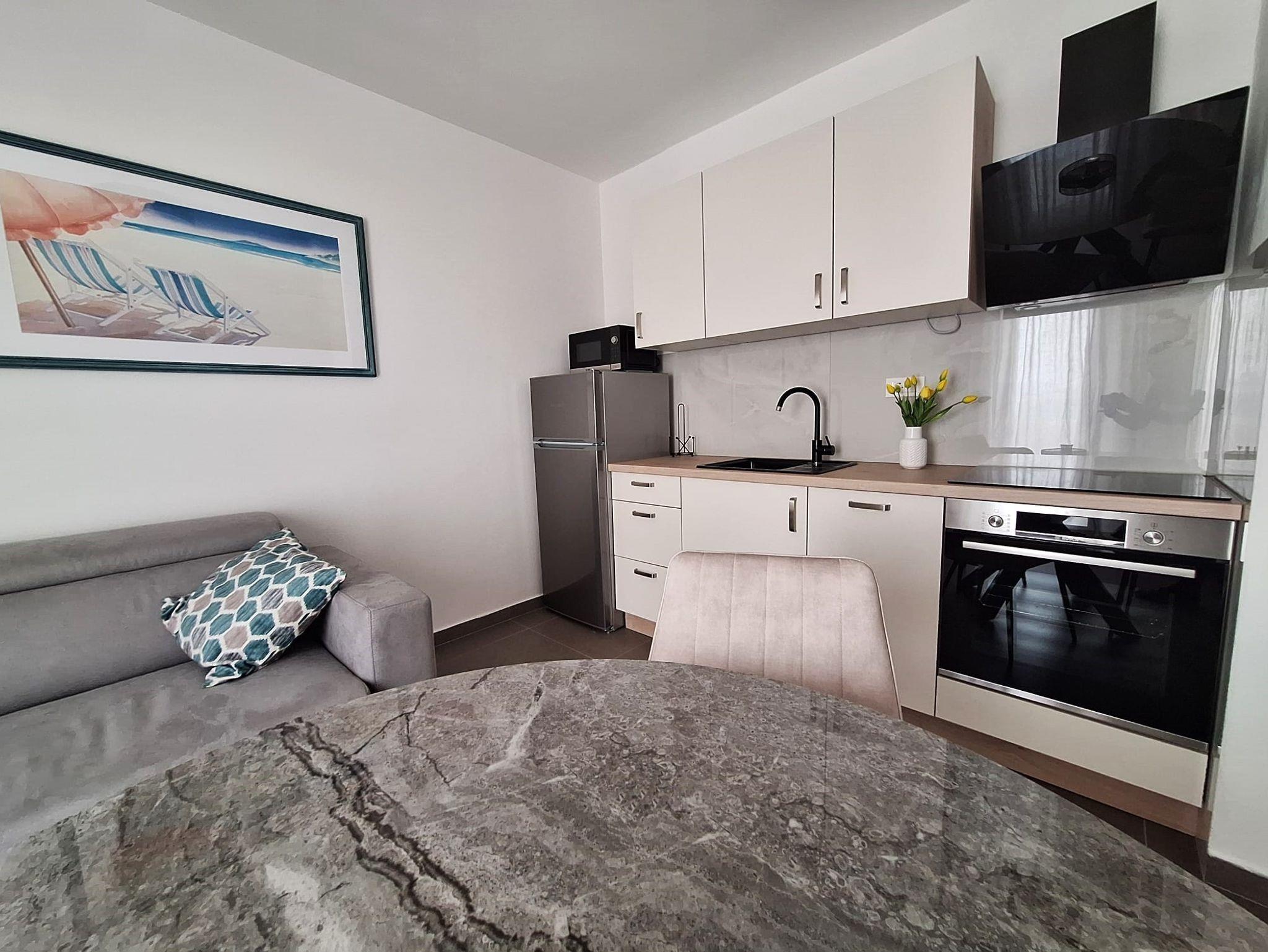 Ferienwohnung bietet Platz für 2 Gäste. Die Betten sind in Schlafzimmern, die es 1 gibt, innerhalb einer Gesamtfläche von 31m2, angeordnet. Die Gäste haben eine eigene Terrasse zur Verfügung, auf der sie in warmen Sommernächten genießen können. Das Apartment bietet Meerblick. Es ist erlaubt, Speisen auf dem Gemeinschafts-Grill vorzubereiten. IM PREIS INBEGRIFFEN: Kurtaxe, Endreinigung, Klimatisierung, Parkplatz, Internet, Bootsanlegeplatz, Bügeleisen, Föhn, tragbarer Grill, Sonnenschirm, Liegestühle, 1 Bett für Kinder (im Preis enthalten). VERBINDLICHE ZUSÄTZLICHE KOSTEN: Aufzahlung für Kurzaufenthalte (prozentualer Zuschlag pro Nächtigungsanzahl: 30% - 1, 20% - 2, 10% - 3). Die Verfügbarkeit zusätzlicher Dienstleistungen in Ihrem reservierten Termin und die Preise derselben (falls nicht aufgeführt) müssen im Voraus überprüft werden. Zusätzliche Dienstleistungen die in der Zahlungsaufforderung nicht aufgeführt sind werden direkt beim Vermieter bezahlt, angenommen der Gast nutzt auch diese. Ermäßigung auf den Grundpreis: Gratistag 28=25 (bei einem Aufenthalt von 28 oder mehr Tagen erhalten Sie 3 kostenlose Tage für den Aufenthalt bis 31.12.26).