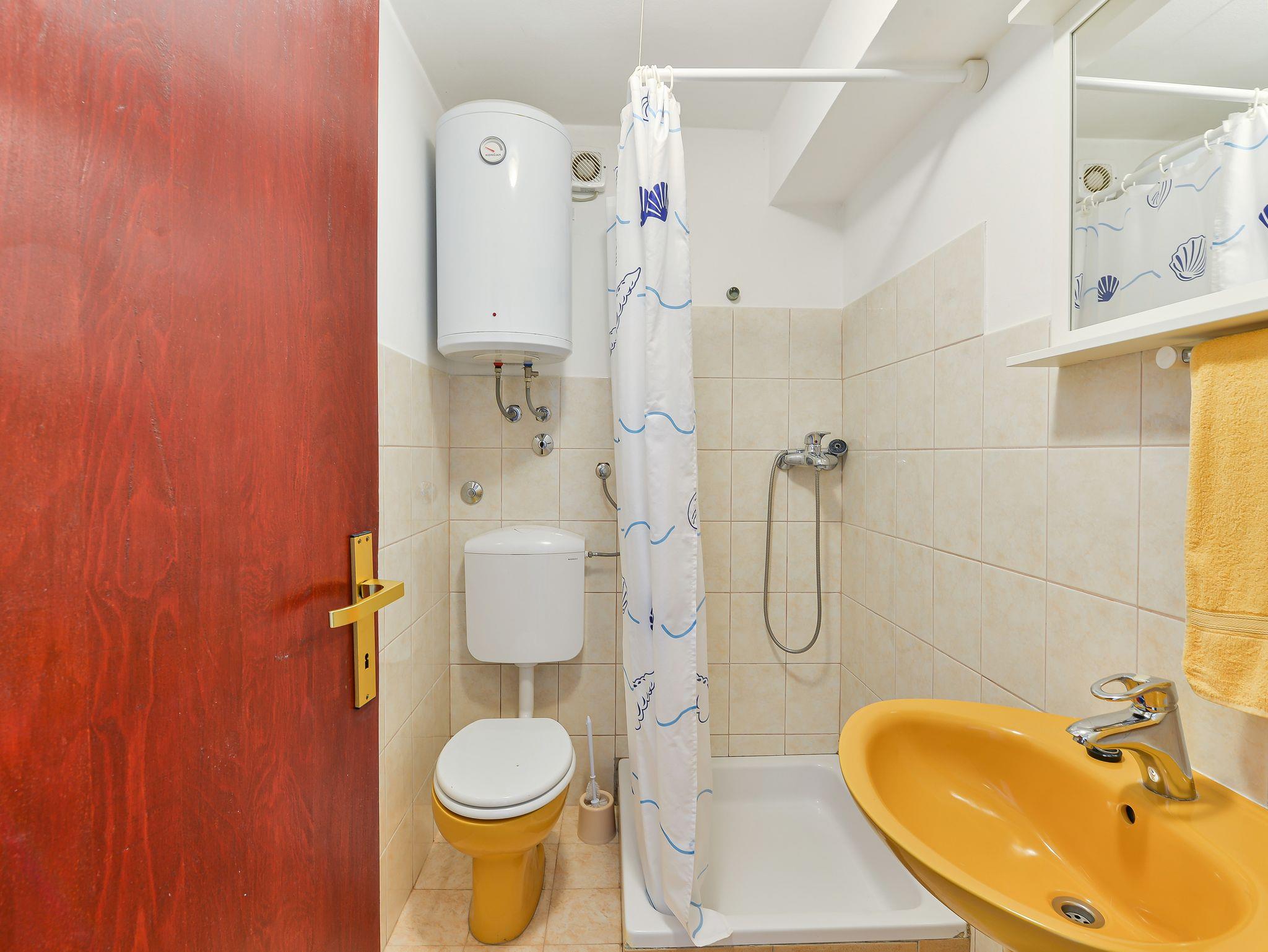 Ferienwohnung bietet Platz für 3 Gäste. Die Betten sind in Schlafzimmern, die es 1 gibt, und in Esszimmer, innerhalb einer Gesamtfläche von 25m2, angeordnet. Die Gäste haben eine eigene Terrasse zur Verfügung, auf der sie in warmen Sommernächten genießen können. Das Apartment bietet Meerblick. Es ist erlaubt, Speisen auf dem Gemeinschafts-Grill vorzubereiten. IM PREIS INBEGRIFFEN: Kurtaxe, Endreinigung, Parkplatz, Internet, Bootsanlegeplatz, Bügeleisen, Bügelbrett, Föhn. Die Verfügbarkeit zusätzlicher Dienstleistungen in Ihrem reservierten Termin und die Preise derselben (falls nicht aufgeführt) müssen im Voraus überprüft werden. Zusätzliche Dienstleistungen die in der Zahlungsaufforderung nicht aufgeführt sind werden direkt beim Vermieter bezahlt, angenommen der Gast nutzt auch diese. Ermäßigung auf den Grundpreis: Gratistag 14=13 (bei einem Aufenthalt von 14 Tagen oder mehr erhalten Sie einen Gratistag für den Aufenthalt bis 31.12.26).