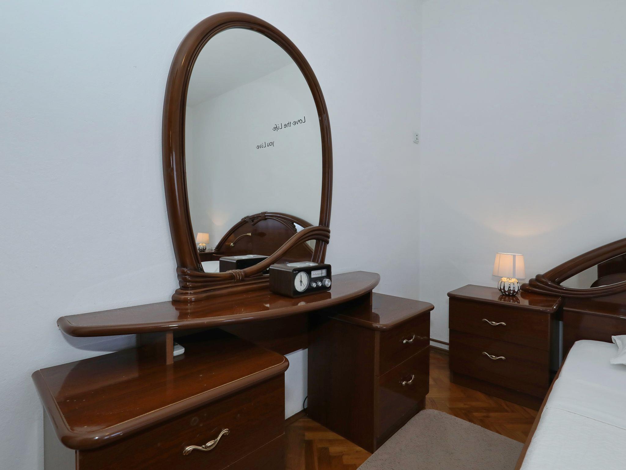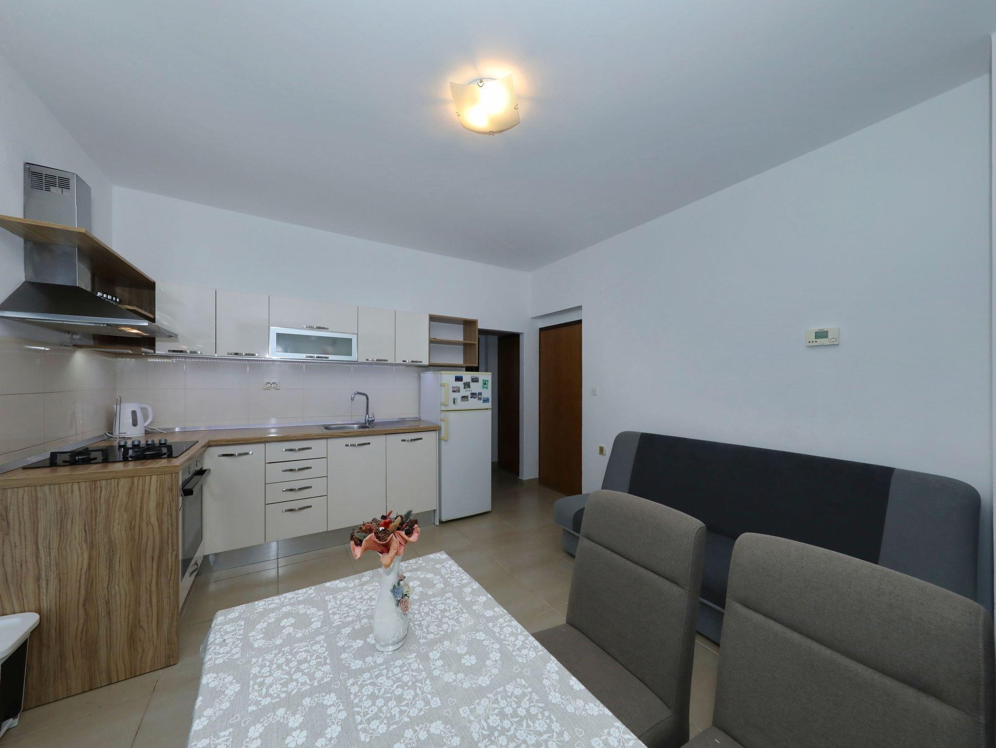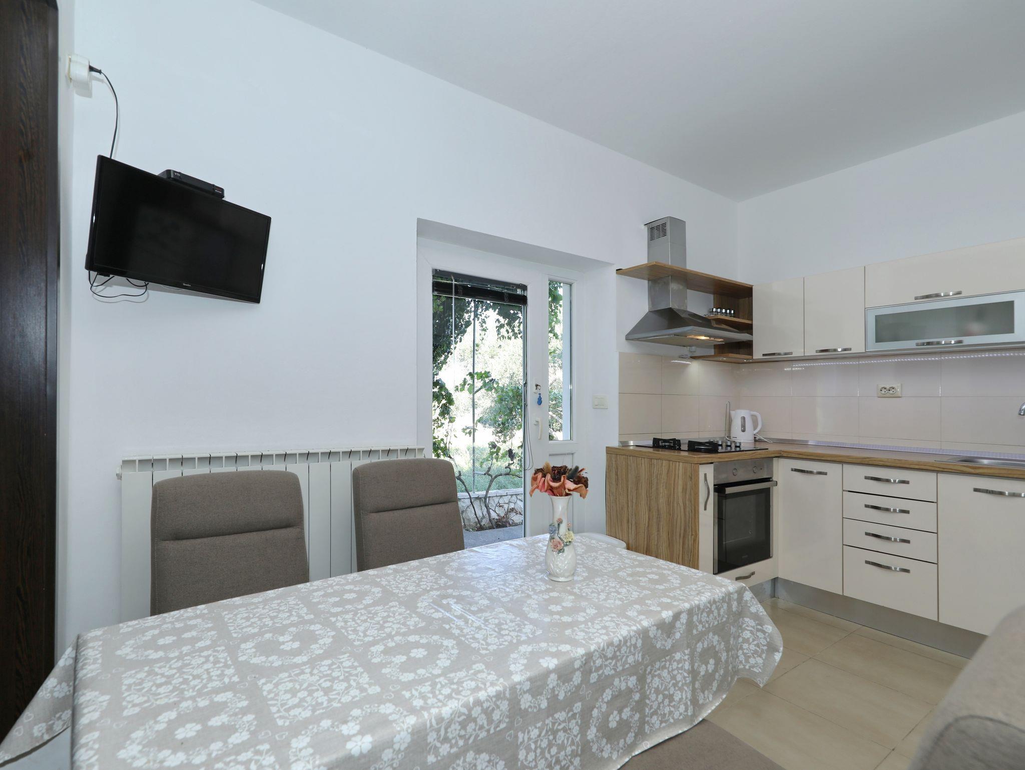 Ferienwohnung bietet Platz für 4 Gäste. Die Betten sind in Schlafzimmern, die es 1 gibt, und in Esszimmer, innerhalb einer Gesamtfläche von 33m2, angeordnet. Die Gäste haben eine eigene Terrasse zur Verfügung, auf der sie in warmen Sommernächten genießen können. Es ist erlaubt, Speisen auf dem Gemeinschafts-Grill vorzubereiten. In der Unterkunftseinheit besteht die Möglichkeit des Mitbringens von Haustieren gegen Aufpreis. IM PREIS INBEGRIFFEN: Kurtaxe, Endreinigung, Klimatisierung, Parkplatz, Internet, Bügeleisen, Bügelbrett, tragbarer Grill. VERBINDLICHE ZUSÄTZLICHE KOSTEN: Aufzahlung für Kurzaufenthalte (prozentualer Zuschlag pro Nächtigungsanzahl: 30% - 1, 20% - 2, 10% - 3). UNVERBINDLICHE ZUSÄTZLICHE KOSTEN: Wäschewaschen (10,00 € Waschen), Bootsanlegeplatz (5,00 € pro Nacht), Haustiere (10,00 € pro Nacht). Die Verfügbarkeit zusätzlicher Dienstleistungen in Ihrem reservierten Termin und die Preise derselben (falls nicht aufgeführt) müssen im Voraus überprüft werden. Zusätzliche Dienstleistungen die in der Zahlungsaufforderung nicht aufgeführt sind werden direkt beim Vermieter bezahlt, angenommen der Gast nutzt auch diese.