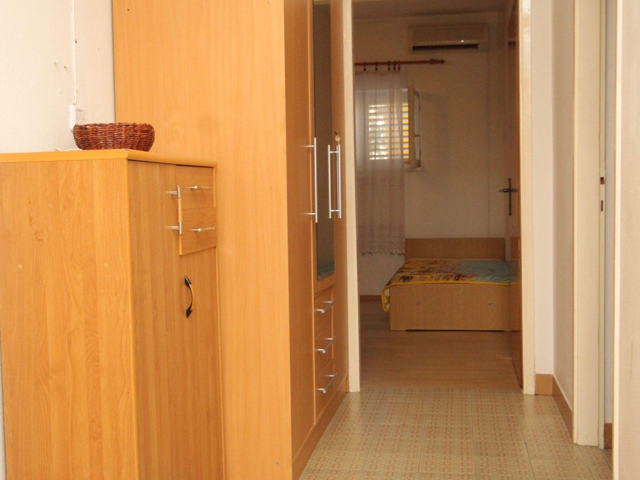 Ferienwohnung bietet Platz für 8 Gäste. Die Betten sind in Schlafzimmern, die es 3 gibt, innerhalb einer Gesamtfläche von 75m2, angeordnet. Die Gäste haben eine eigene Terrasse zur Verfügung, auf der sie in warmen Sommernächten genießen können. Das Apartment bietet Meerblick. Es ist erlaubt, Speisen auf dem Gemeinschafts-Grill vorzubereiten. Durch die Terrasse der gebuchten Unterkunftseinheit gehen auch andere Gäste oder Vermieter. IM PREIS INBEGRIFFEN: Kurtaxe, Endreinigung, Parkplatz, Internet, Kinderbett, Bügeleisen, Bügelbrett, Föhn. VERBINDLICHE ZUSÄTZLICHE KOSTEN: Aufzahlung für Kurzaufenthalte (prozentualer Zuschlag pro Nächtigungsanzahl: 30% - 1, 20% - 2, 10% - 3). UNVERBINDLICHE ZUSÄTZLICHE KOSTEN: Klimatisierung (5,00 € pro Nacht). Die Verfügbarkeit zusätzlicher Dienstleistungen in Ihrem reservierten Termin und die Preise derselben (falls nicht aufgeführt) müssen im Voraus überprüft werden. Zusätzliche Dienstleistungen die in der Zahlungsaufforderung nicht aufgeführt sind werden direkt beim Vermieter bezahlt, angenommen der Gast nutzt auch diese.