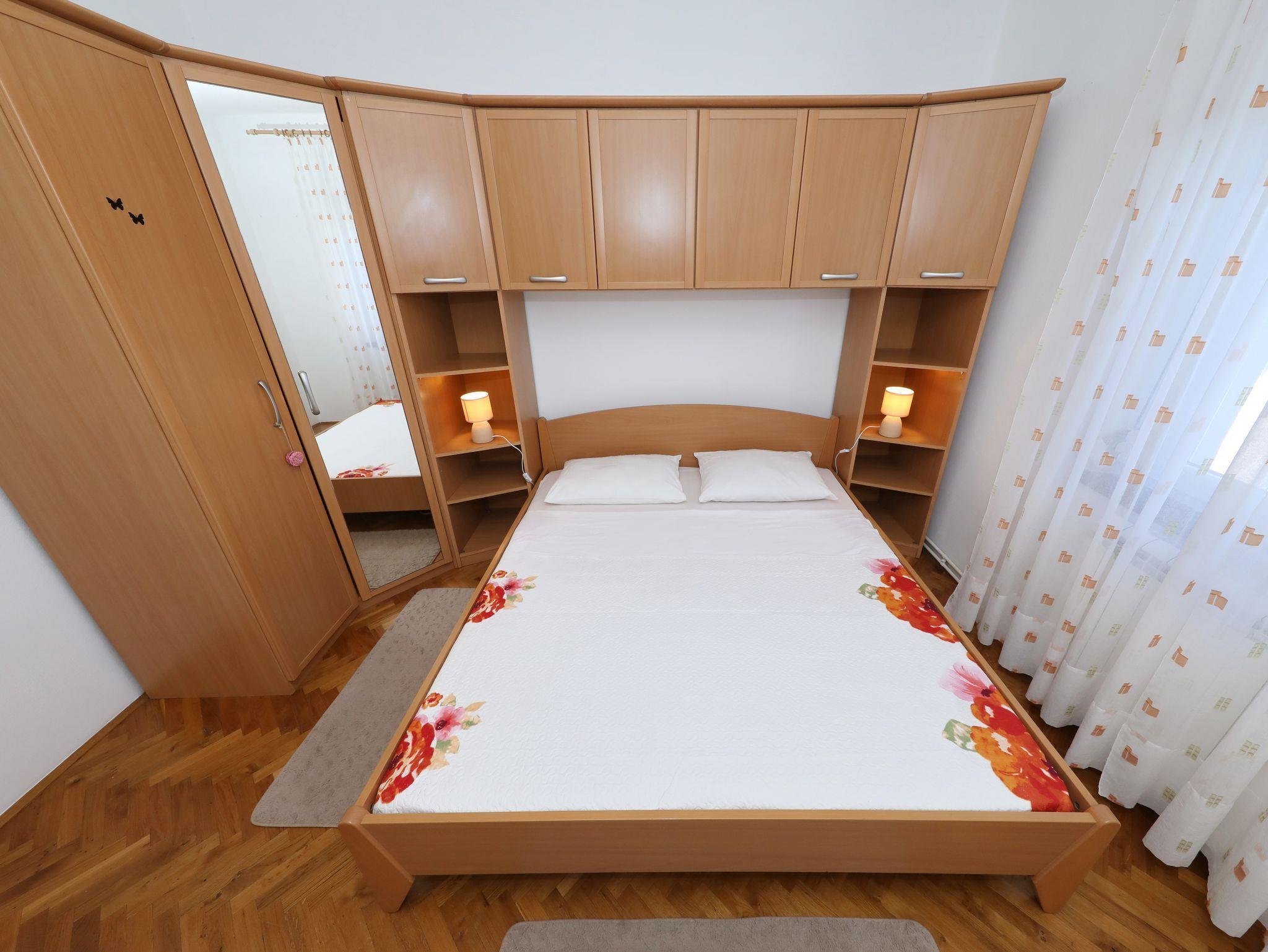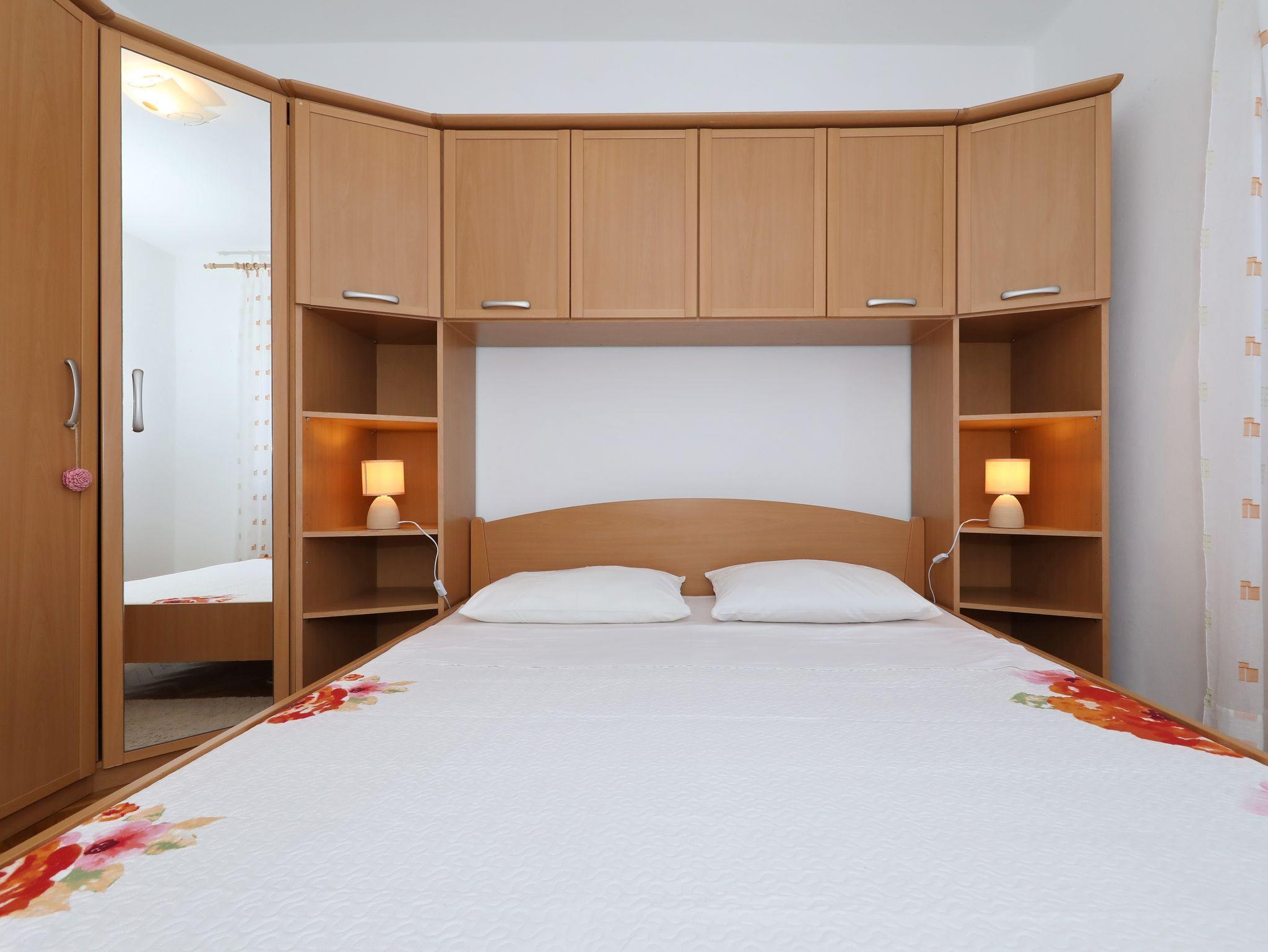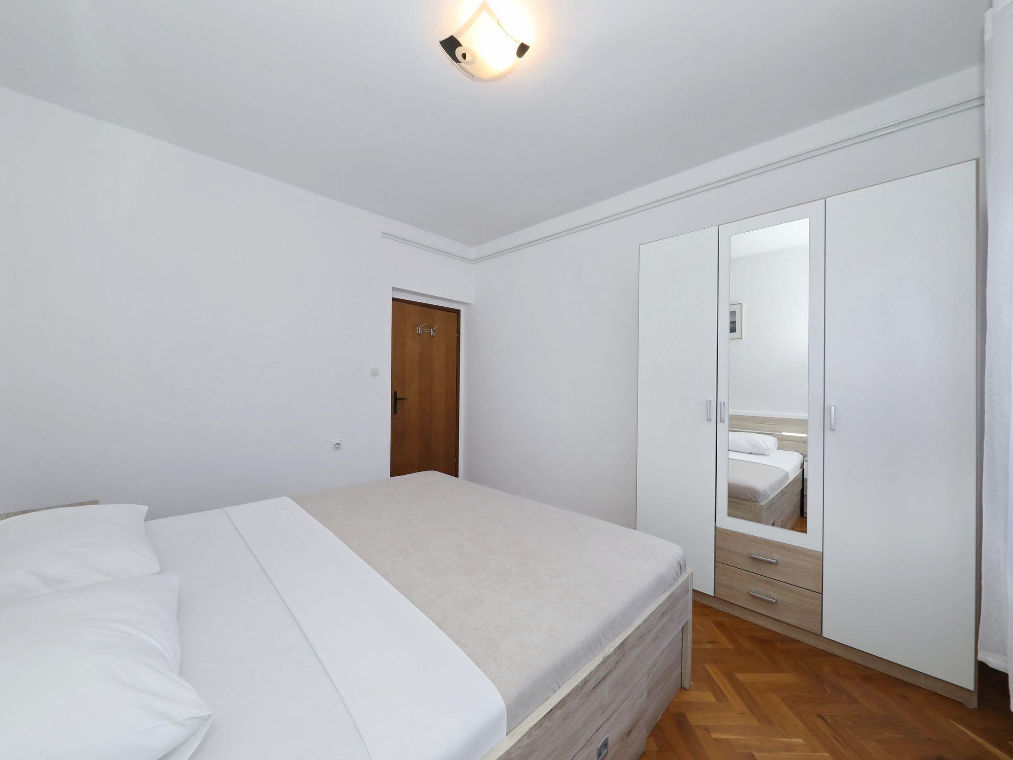 Ferienwohnung bietet Platz für 5 Gäste. Die Betten sind in Schlafzimmern, die es 2 gibt, und in Wohnzimmer, innerhalb einer Gesamtfläche von 48m2, angeordnet. Die Gäste haben eine eigene Terrasse zur Verfügung, auf der sie in warmen Sommernächten genießen können. Es ist erlaubt, Speisen auf dem Gemeinschafts-Grill vorzubereiten. In der Unterkunftseinheit besteht die Möglichkeit des Mitbringens von Haustieren gegen Aufpreis. Unterkunftseinheit hat Räume, die von dem Rest der Einheit abgetrennt werden. IM PREIS INBEGRIFFEN: Kurtaxe, Endreinigung, Klimatisierung, Parkplatz, Internet, Bügeleisen, Bügelbrett, tragbarer Grill. VERBINDLICHE ZUSÄTZLICHE KOSTEN: Aufzahlung für Kurzaufenthalte (prozentualer Zuschlag pro Nächtigungsanzahl: 30% - 1, 20% - 2, 10% - 3). UNVERBINDLICHE ZUSÄTZLICHE KOSTEN: Wäschewaschen (10,00 € Waschen), Bootsanlegeplatz (5,00 € pro Nacht), Haustiere (10,00 € pro Nacht), Zusatzbett (5,00 € pro Nacht). Die Verfügbarkeit zusätzlicher Dienstleistungen in Ihrem reservierten Termin und die Preise derselben (falls nicht aufgeführt) müssen im Voraus überprüft werden. Zusätzliche Dienstleistungen die in der Zahlungsaufforderung nicht aufgeführt sind werden direkt beim Vermieter bezahlt, angenommen der Gast nutzt auch diese.