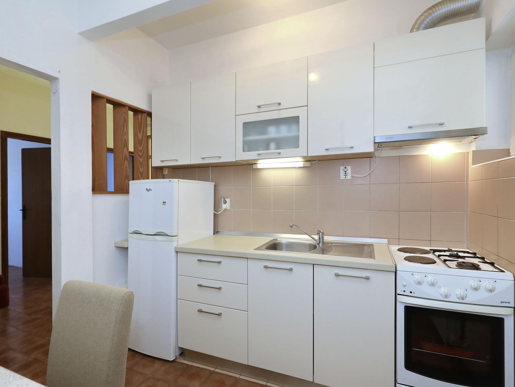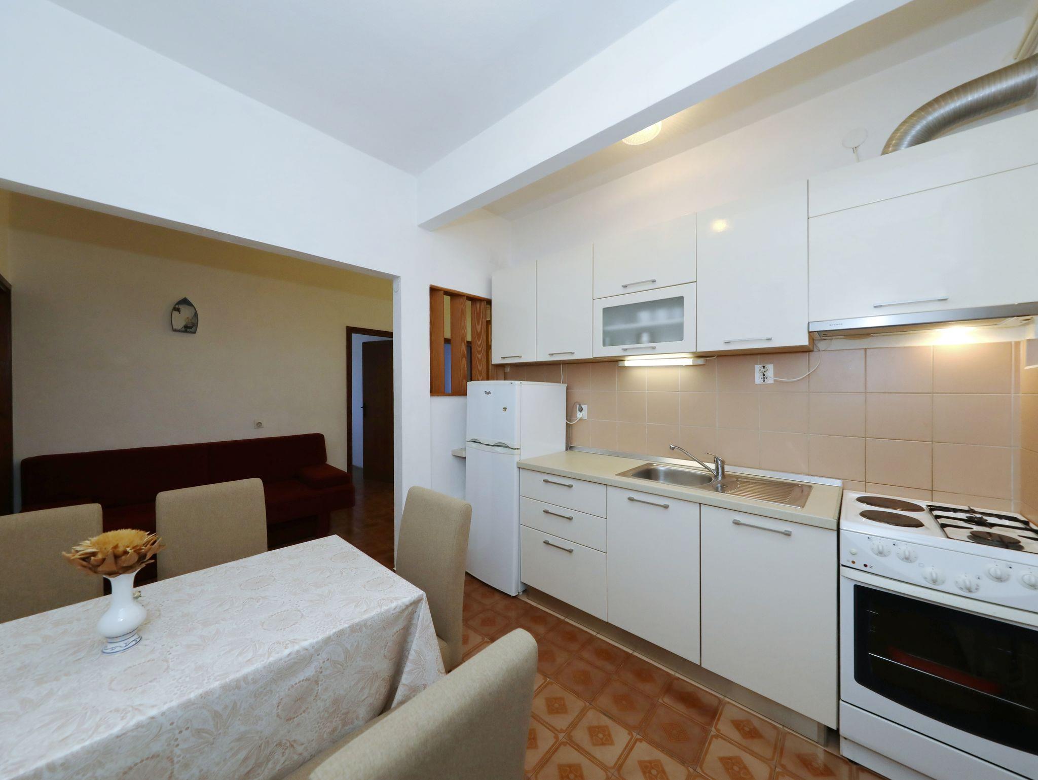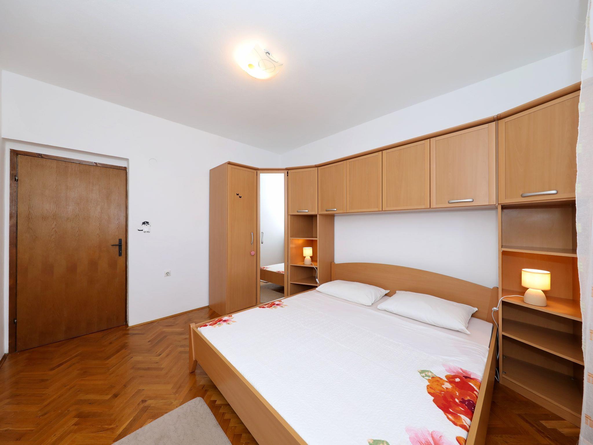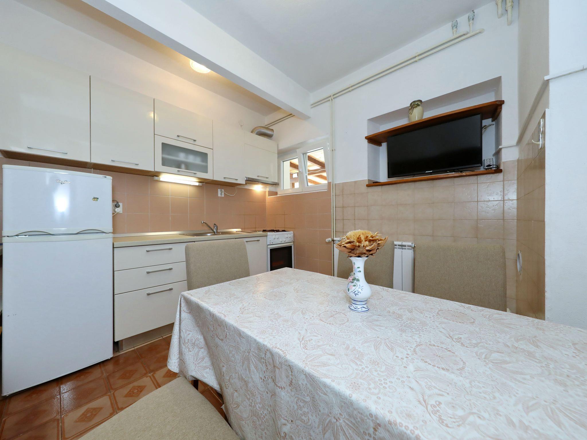 Ferienwohnung bietet Platz für 5 Gäste. Die Betten sind in Schlafzimmern, die es 2 gibt, und in Wohnzimmer, innerhalb einer Gesamtfläche von 48m2, angeordnet. Die Gäste haben eine eigene Terrasse zur Verfügung, auf der sie in warmen Sommernächten genießen können. Es ist erlaubt, Speisen auf dem Gemeinschafts-Grill vorzubereiten. In der Unterkunftseinheit besteht die Möglichkeit des Mitbringens von Haustieren gegen Aufpreis. Unterkunftseinheit hat Räume, die von dem Rest der Einheit abgetrennt werden. IM PREIS INBEGRIFFEN: Kurtaxe, Endreinigung, Klimatisierung, Parkplatz, Internet, Bügeleisen, Bügelbrett, tragbarer Grill. VERBINDLICHE ZUSÄTZLICHE KOSTEN: Aufzahlung für Kurzaufenthalte (prozentualer Zuschlag pro Nächtigungsanzahl: 30% - 1, 20% - 2, 10% - 3). UNVERBINDLICHE ZUSÄTZLICHE KOSTEN: Wäschewaschen (10,00 € Waschen), Bootsanlegeplatz (5,00 € pro Nacht), Haustiere (10,00 € pro Nacht), Zusatzbett (5,00 € pro Nacht). Die Verfügbarkeit zusätzlicher Dienstleistungen in Ihrem reservierten Termin und die Preise derselben (falls nicht aufgeführt) müssen im Voraus überprüft werden. Zusätzliche Dienstleistungen die in der Zahlungsaufforderung nicht aufgeführt sind werden direkt beim Vermieter bezahlt, angenommen der Gast nutzt auch diese.