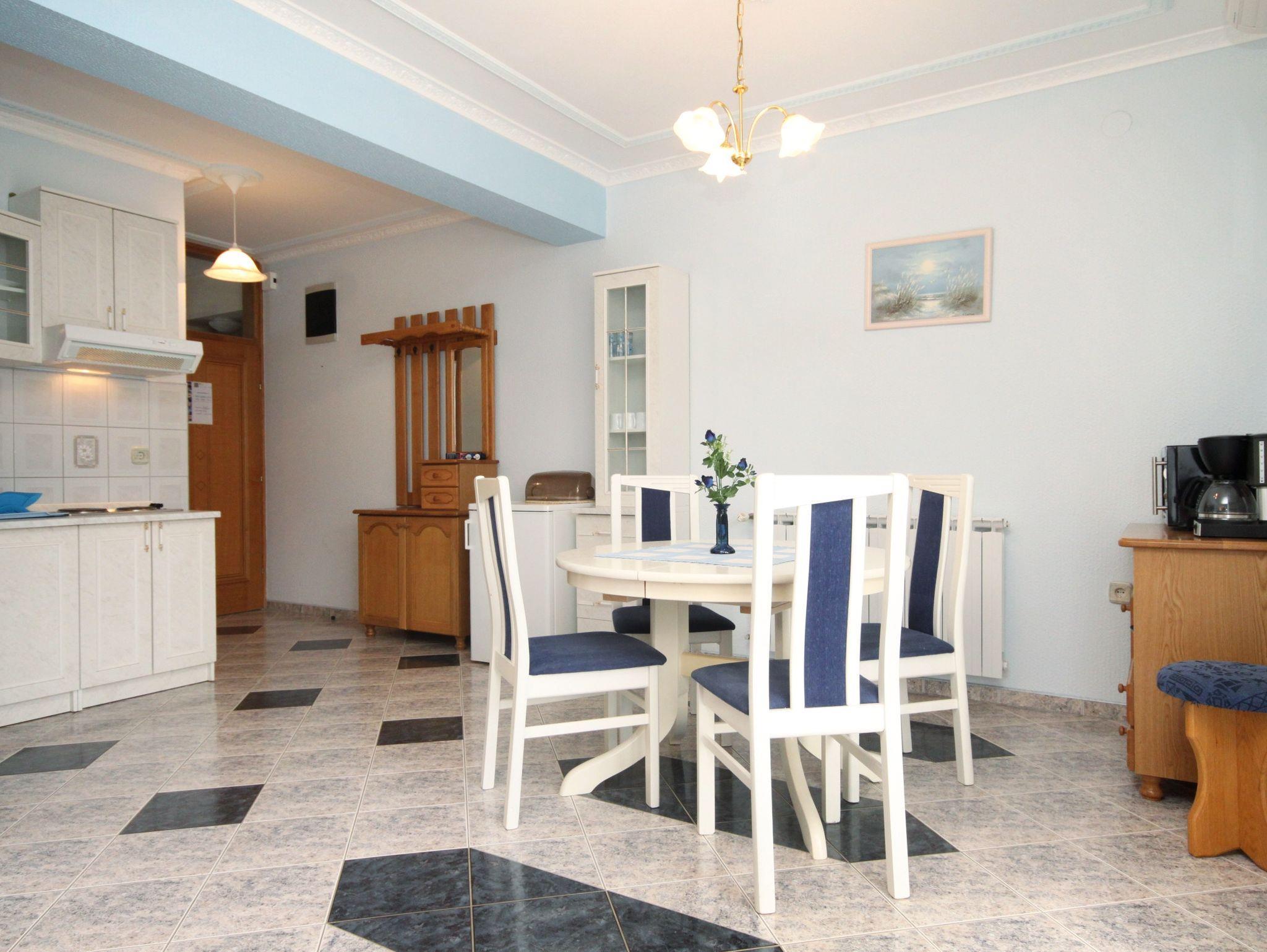 Ferienwohnung bietet Platz für 4 Gäste. Die Betten sind in Schlafzimmern, die es 1 gibt, und in Wohnzimmer, innerhalb einer Gesamtfläche von 40m2, angeordnet. Die Gäste haben einen eigenen Balkon zur Verfügung, auf der sie in warmen Sommernächten genießen können. Das Apartment bietet Meerblick. Es ist erlaubt, Speisen auf dem Gemeinschafts-Grill vorzubereiten. Während ihres Aufenthalts können Gäste das gemeinsam zur Nutzung stehende Schwimmbad benutzen. IM PREIS INBEGRIFFEN: Kurtaxe, Endreinigung, Klimatisierung, Zentralheizung, Pool, Parkplatz, Internet, Kinderbett, Zusatzbett, Bügeleisen, Bügelbrett, Föhn, Sonnenschirm, Liegestühle. VERBINDLICHE ZUSÄTZLICHE KOSTEN: Aufzahlung für Kurzaufenthalte (prozentualer Zuschlag pro Nächtigungsanzahl: 30% - 1, 20% - 2, 10% - 3). UNVERBINDLICHE ZUSÄTZLICHE KOSTEN: Frühstück (10,00 €, 50% Nachlass für Kinder zwischen 4 und 12 Jahren, Kinder bis 4 Jahre sind frei.), Halbpension (25,00 €, 50% Nachlass für Kinder zwischen 4 und 12 Jahren, Kinder bis 4 Jahre sind frei.), Vollpension (40,00 €, 50% Nachlass für Kinder zwischen 4 und 12 Jahren, Kinder bis 4 Jahre sind frei.). Die Verfügbarkeit zusätzlicher Dienstleistungen in Ihrem reservierten Termin und die Preise derselben (falls nicht aufgeführt) müssen im Voraus überprüft werden. Zusätzliche Dienstleistungen die in der Zahlungsaufforderung nicht aufgeführt sind werden direkt beim Vermieter bezahlt, angenommen der Gast nutzt auch diese.