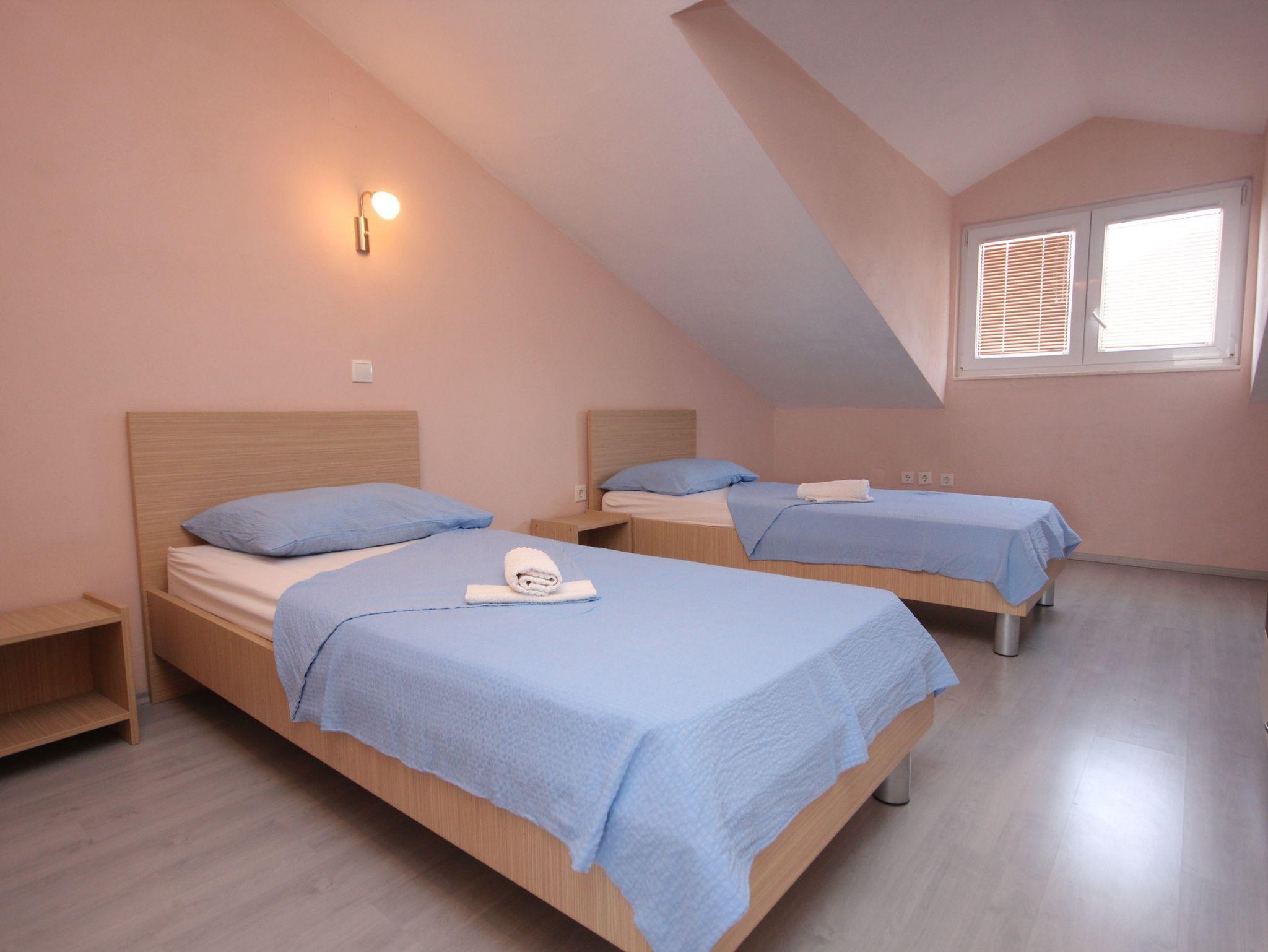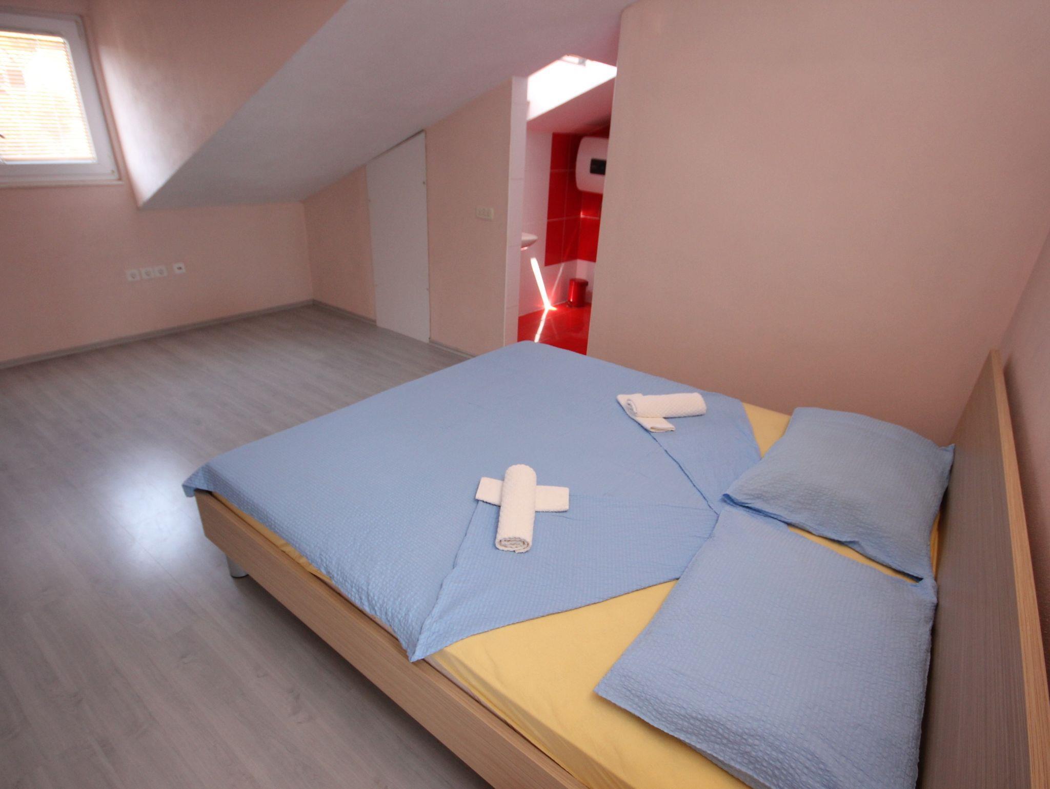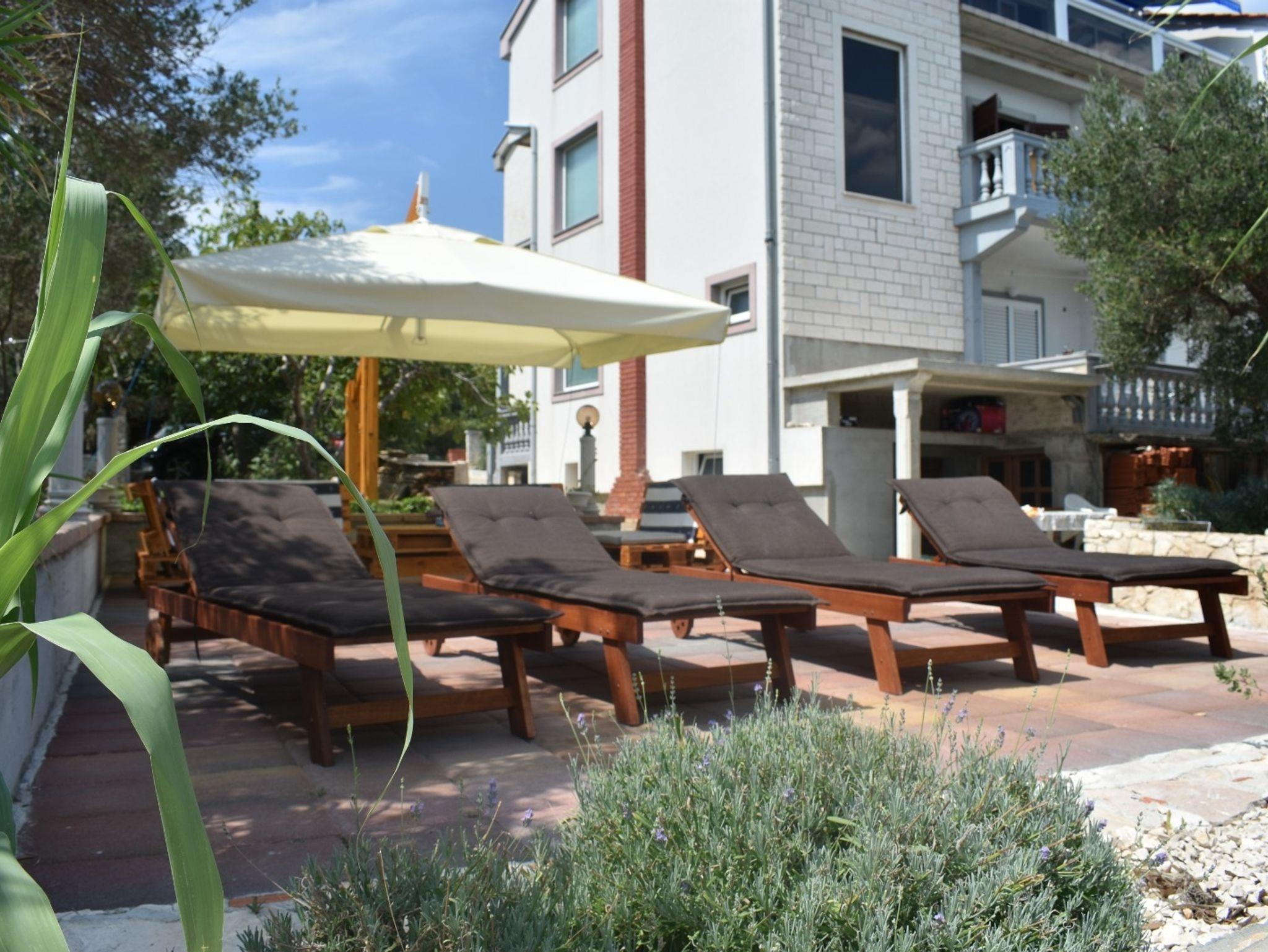 Ferienwohnung bietet Platz für 5 Gäste. Die Betten sind in Schlafzimmern, die es 2 gibt, und in Wohnzimmer, innerhalb einer Gesamtfläche von 64m2, angeordnet. Die Gäste haben eine eigene Terrasse zur Verfügung, auf der sie in warmen Sommernächten genießen können. Das Apartment bietet Meerblick. Es ist erlaubt, Speisen auf dem Gemeinschafts-Grill vorzubereiten. IM PREIS INBEGRIFFEN: Kurtaxe, Endreinigung, Klimatisierung, Parkplatz, Internet, Bootsanlegeplatz, Kinderbett, Bügeleisen, Bügelbrett, Föhn. VERBINDLICHE ZUSÄTZLICHE KOSTEN: Aufzahlung für Kurzaufenthalte (prozentualer Zuschlag pro Nächtigungsanzahl: 30% - 1, 20% - 2, 10% - 3). UNVERBINDLICHE ZUSÄTZLICHE KOSTEN: Wäschewaschen (5,00 € Waschen). Die Verfügbarkeit zusätzlicher Dienstleistungen in Ihrem reservierten Termin und die Preise derselben (falls nicht aufgeführt) müssen im Voraus überprüft werden. Zusätzliche Dienstleistungen die in der Zahlungsaufforderung nicht aufgeführt sind werden direkt beim Vermieter bezahlt, angenommen der Gast nutzt auch diese.