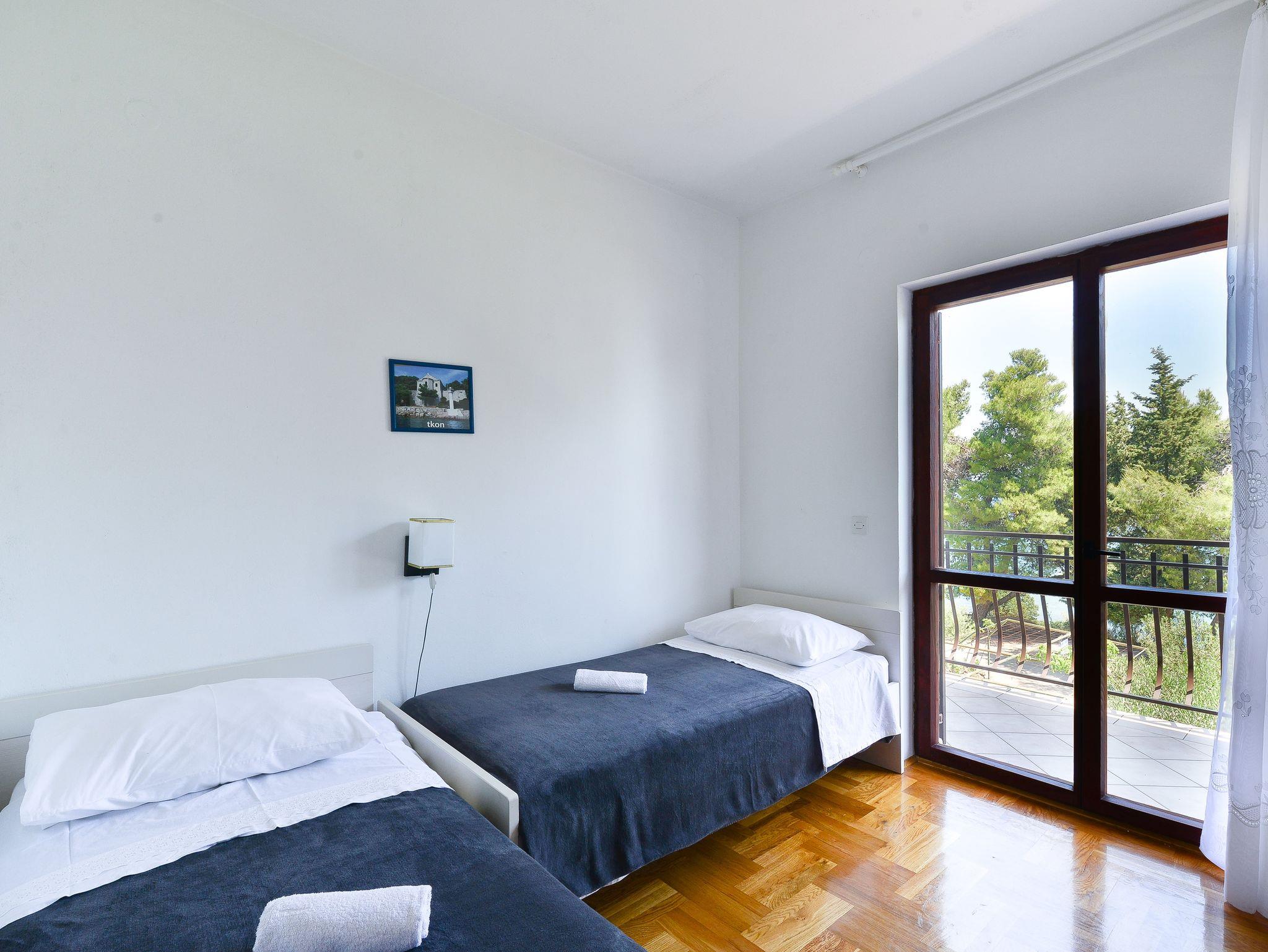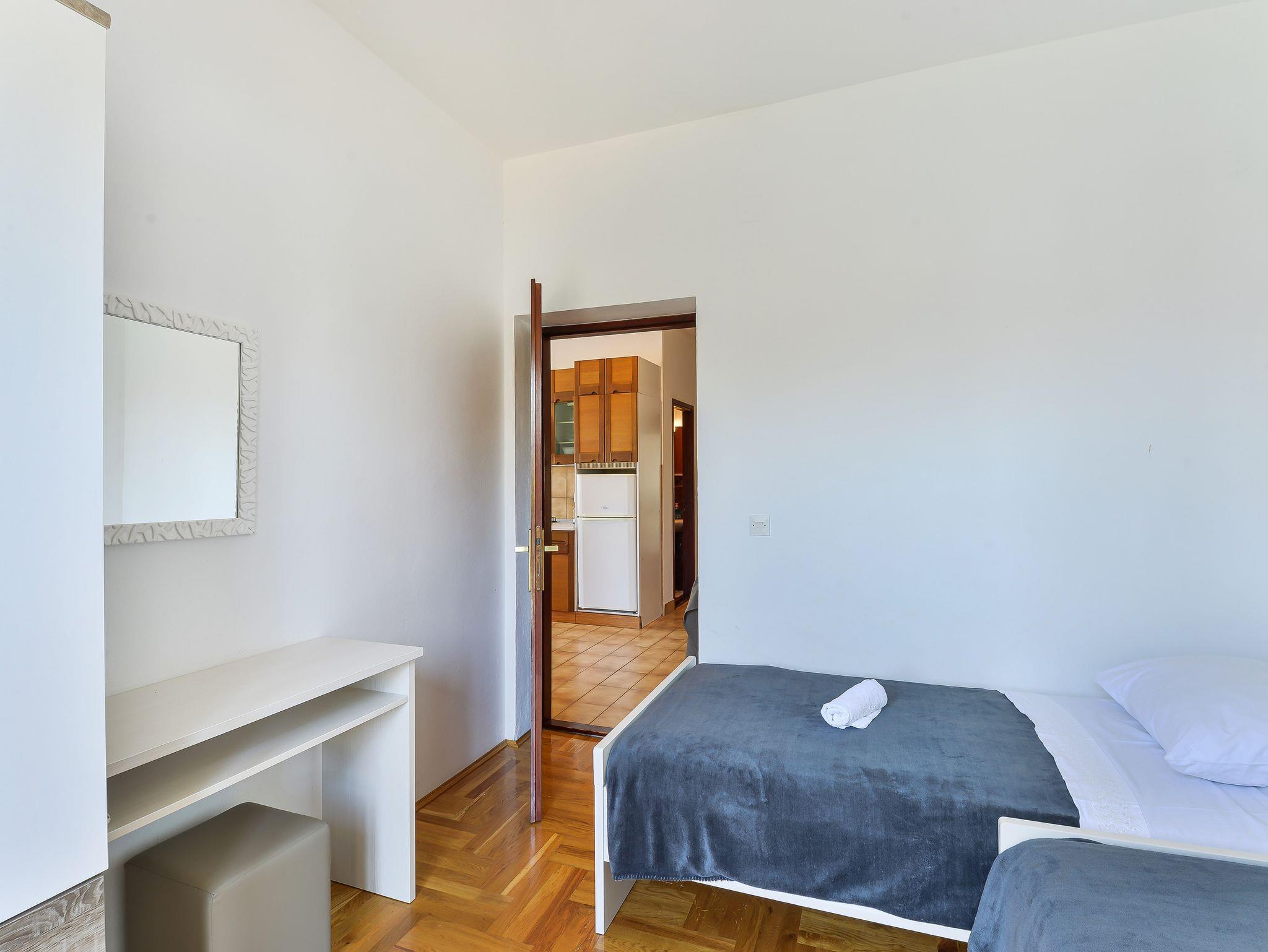Ferienwohnung bietet Platz für 4 Gäste. Die Betten sind in Schlafzimmern, die es 2 gibt, innerhalb einer Gesamtfläche von 51m2, angeordnet. Die Gäste haben eine eigene Terrasse zur Verfügung, auf der sie in warmen Sommernächten genießen können. Das Apartment bietet Meerblick. Es ist erlaubt, Speisen auf dem Gemeinschafts-Grill vorzubereiten. IM PREIS INBEGRIFFEN: Kurtaxe, Endreinigung, Klimatisierung, Parkplatz, Internet, Bootsanlegeplatz, Bügeleisen, Bügelbrett, Föhn. Die Verfügbarkeit zusätzlicher Dienstleistungen in Ihrem reservierten Termin und die Preise derselben (falls nicht aufgeführt) müssen im Voraus überprüft werden. Zusätzliche Dienstleistungen die in der Zahlungsaufforderung nicht aufgeführt sind werden direkt beim Vermieter bezahlt, angenommen der Gast nutzt auch diese. Ermäßigung auf den Grundpreis: Gratistag 14=13 (bei einem Aufenthalt von 14 Tagen oder mehr erhalten Sie einen Gratistag für den Aufenthalt bis 31.12.26).