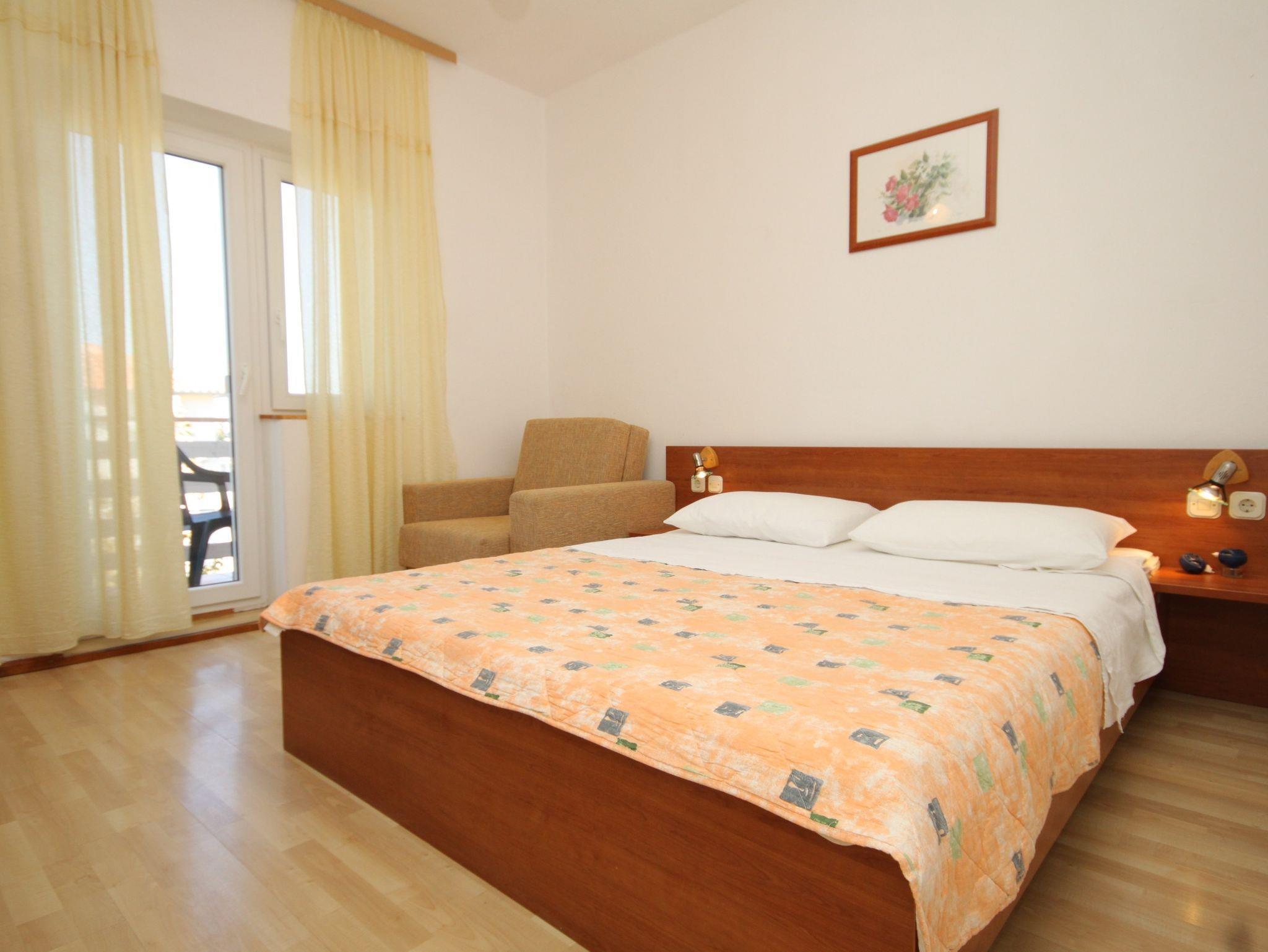 Zimmer bietet Platz für 2 Gäste. Die Betten sind in Schlafzimmern, die es 1 gibt, innerhalb einer Gesamtfläche von 16m2, angeordnet. Die Gäste haben einen eigenen Balkon zur Verfügung, auf der sie in warmen Sommernächten genießen können. Das Zimmer bietet Meerblick. Die reservierte Unterkunftseinheit ist ein Zimmer mit eigenem Badezimmer ohne die Möglichkeit der Nutzung einer Küche. IM PREIS INBEGRIFFEN: Kurtaxe, Endreinigung, Klimatisierung, Parkplatz, Internet, Kinderbett, Föhn. VERBINDLICHE ZUSÄTZLICHE KOSTEN: Aufzahlung für Kurzaufenthalte (prozentualer Zuschlag pro Nächtigungsanzahl: 30% - 1, 20% - 2, 10% - 3). UNVERBINDLICHE ZUSÄTZLICHE KOSTEN: Wäschewaschen (2,00 € Waschen). Die Verfügbarkeit zusätzlicher Dienstleistungen in Ihrem reservierten Termin und die Preise derselben (falls nicht aufgeführt) müssen im Voraus überprüft werden. Zusätzliche Dienstleistungen die in der Zahlungsaufforderung nicht aufgeführt sind werden direkt beim Vermieter bezahlt, angenommen der Gast nutzt auch diese. Ermäßigung auf den Grundpreis: Gratistag 14=13 (bei einem Aufenthalt von 14 Tagen oder mehr erhalten Sie einen Gratistag für den Aufenthalt bis 31.12.26).