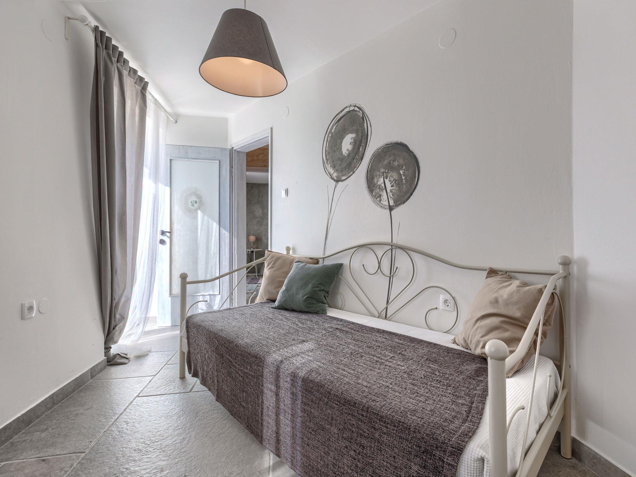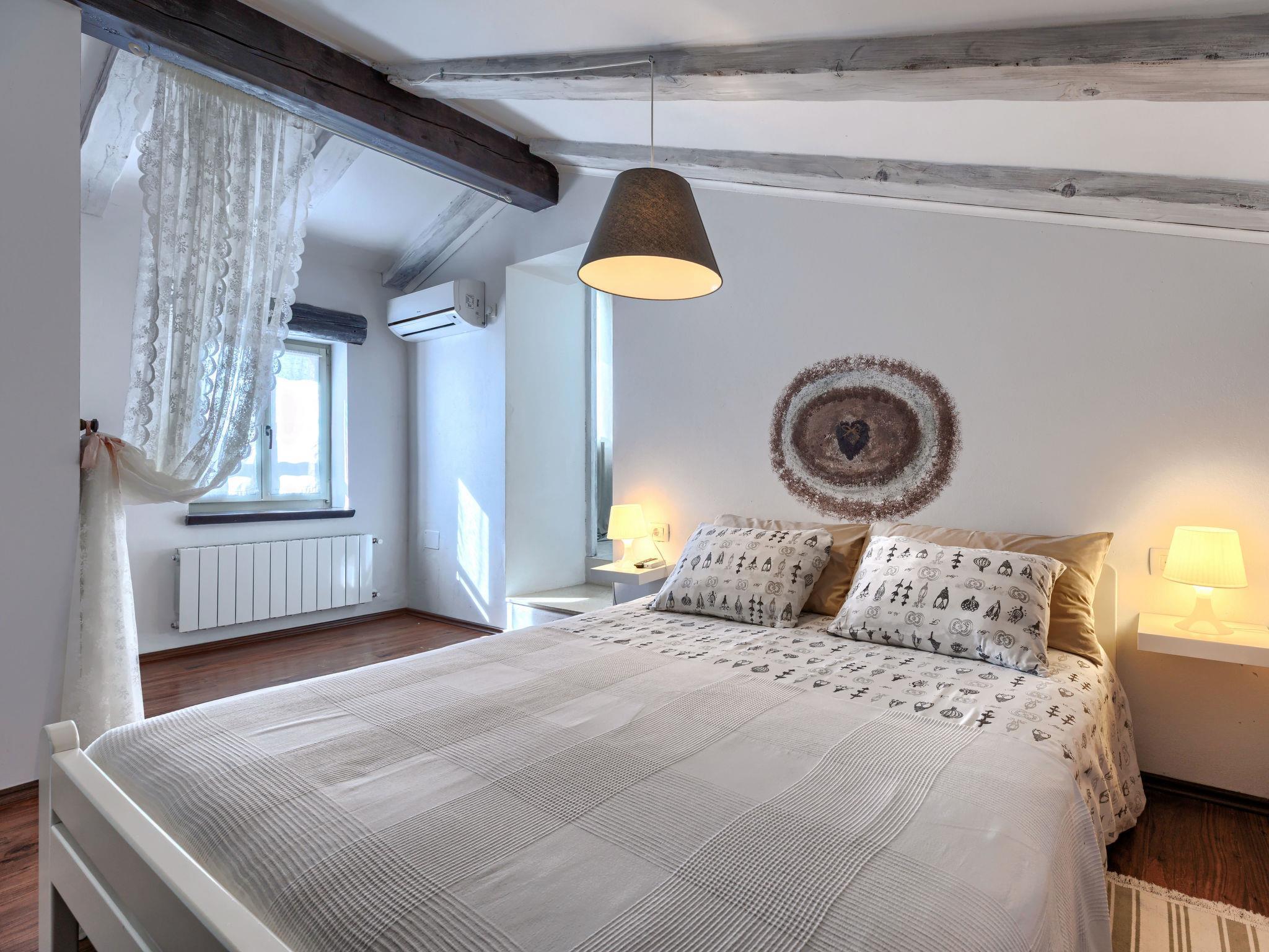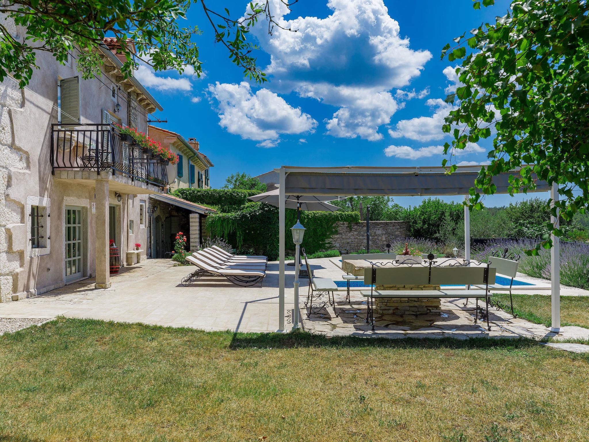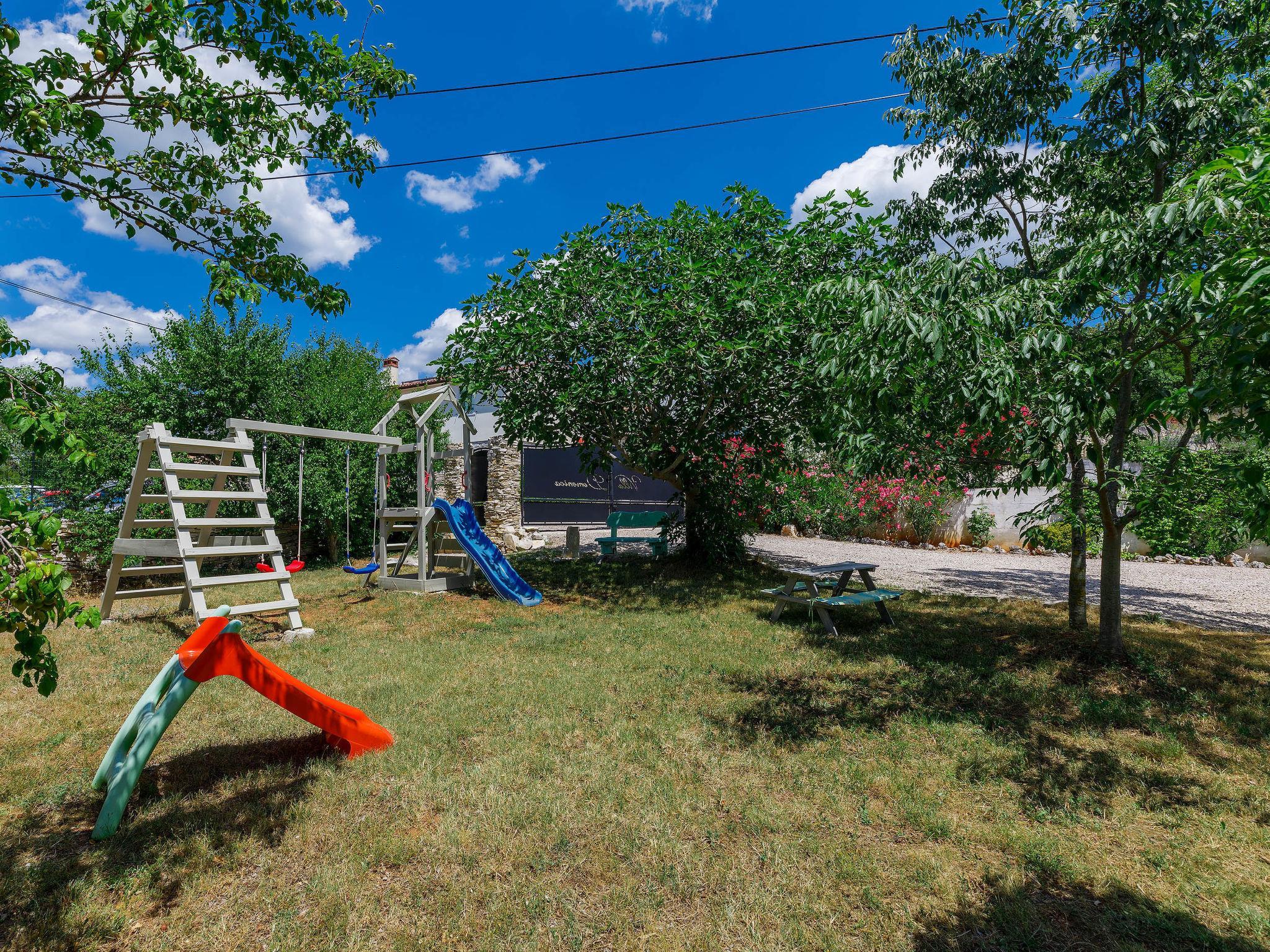 Doppelhaus "Villa Domenica", auf 2 Stockwerken, aus dem 18. Jahrhundert, renoviert. 1.1 km vom Zentrum von Trget, ausserhalb des Ortes, ruhige, sonnige, erhöhte Lage, 900 m vom Meer, 900 m vom Strand, in einer Sackgasse. Zur Alleinbenutzung: Grundstück 700 m2, Garten mit Pflanzen, Schwimmbad eckig (8 x 3 m, 140 cm tief, saisonale Verfügbarkeit: 11.Apr. - 24.Okt.) mit Innentreppe. Aussendusche, Terrasse (10 m2), Gartenmöbel, Grill, Kinderspielplatz (Schaukel). Im Hause: Internetzugang, Waschmaschine. Parkplatz (für 3 Autos) beim Haus auf dem Grundstück. Einkaufsgeschäft 1.1 km, Restaurant 600 m, Bushaltestelle 6.6 km, Kieselstrand 900 m. Verfügbar: Hundebox (im Preis inbegriffen).