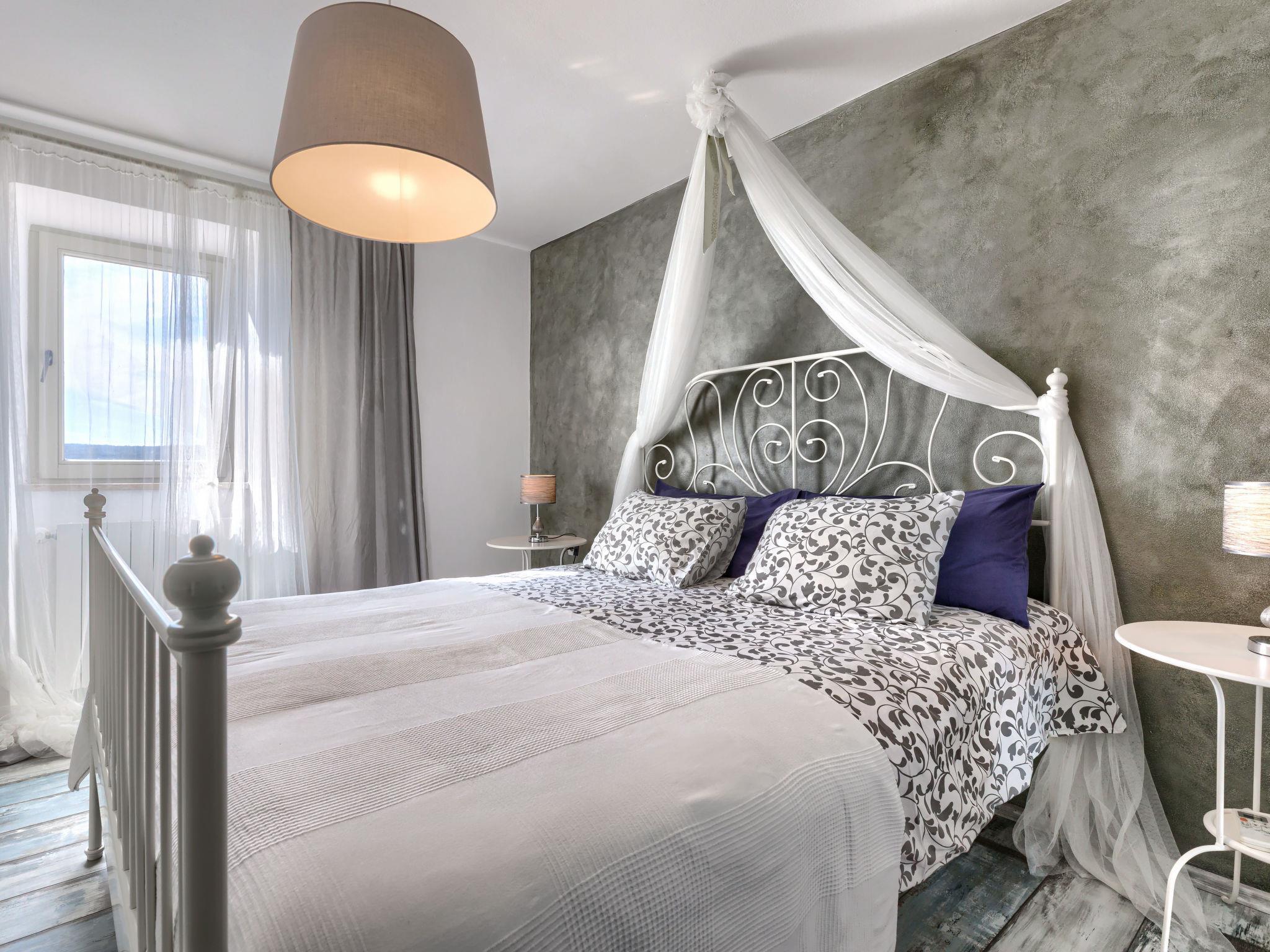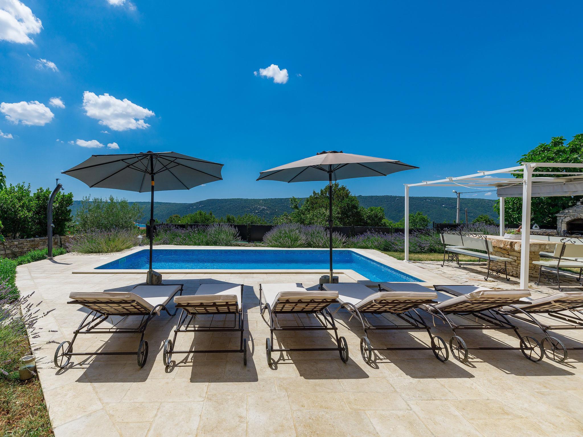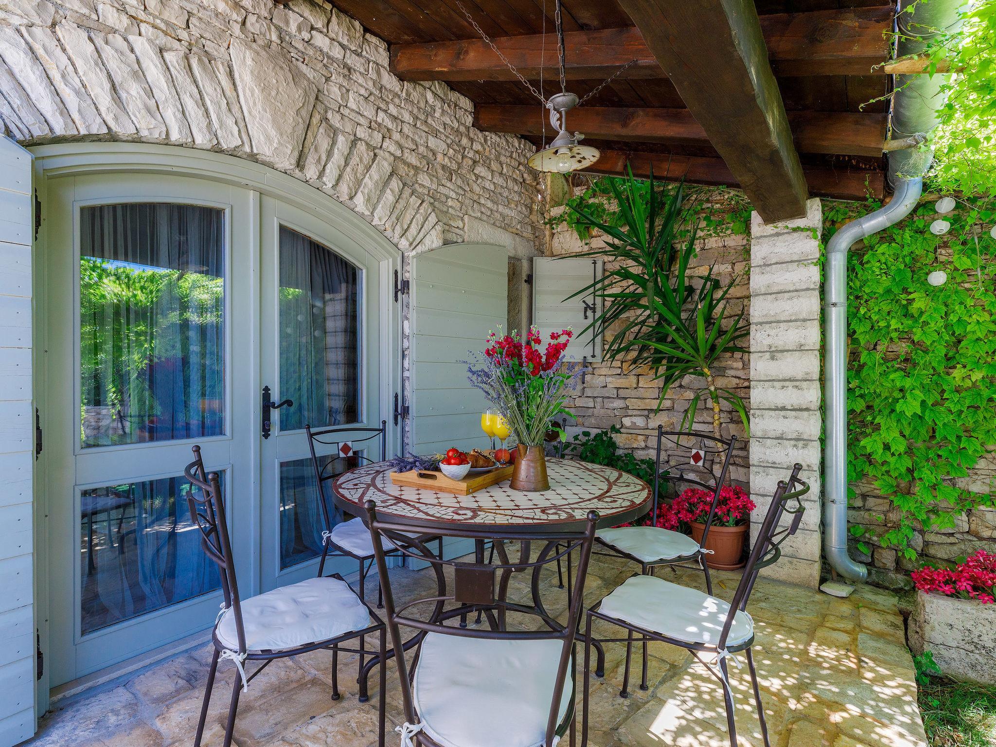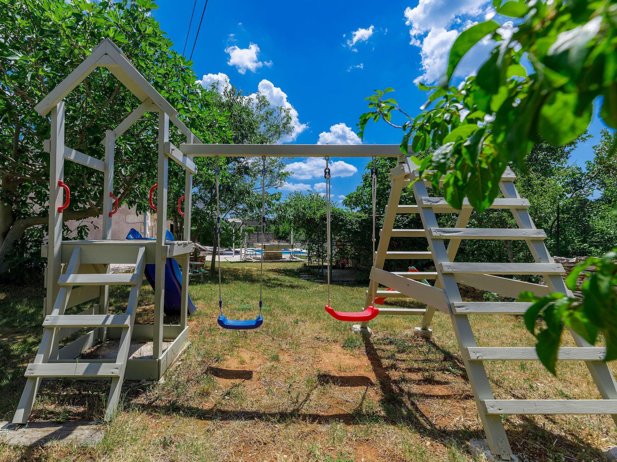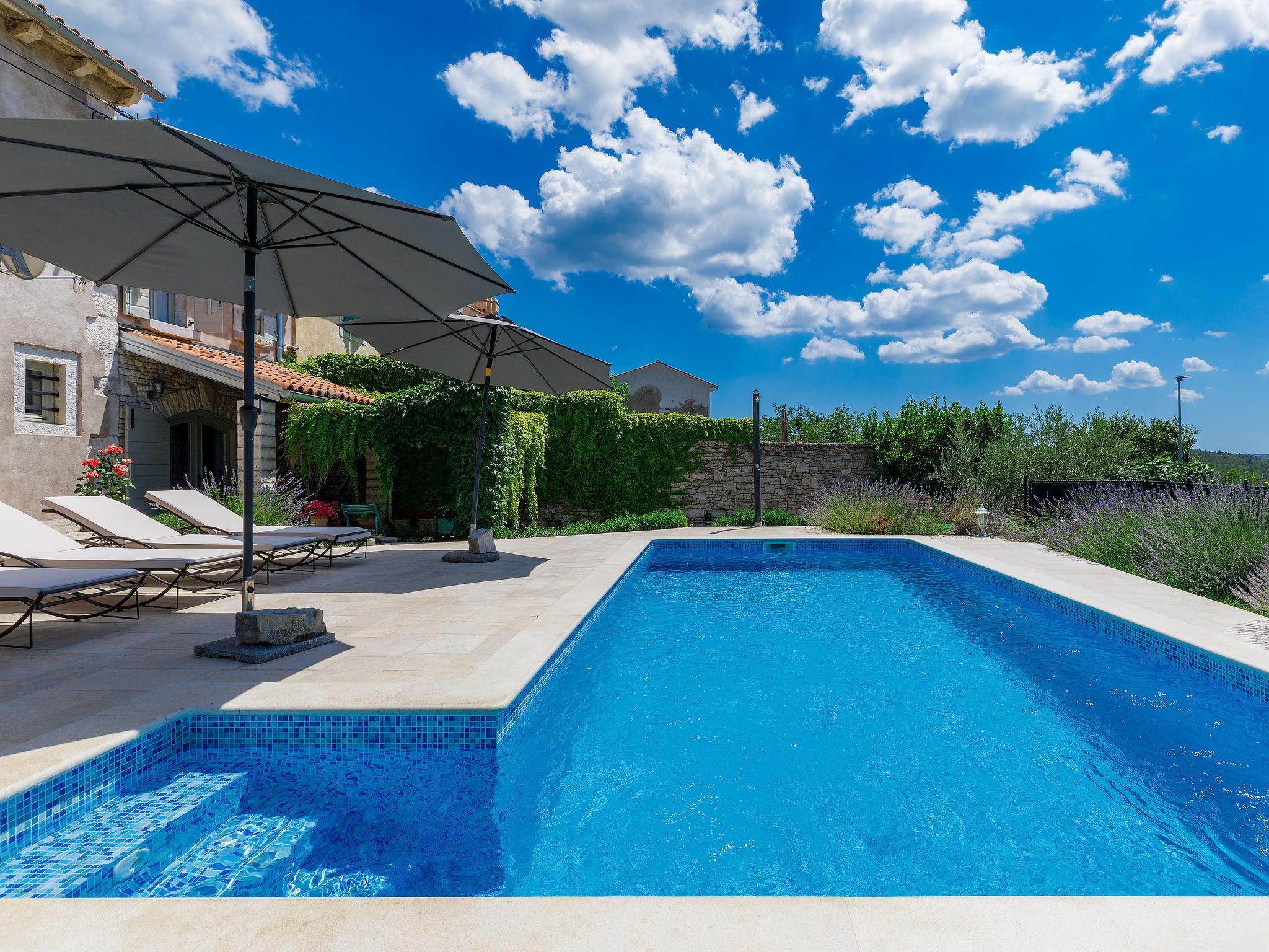 Doppelhaus "Villa Domenica", auf 2 Stockwerken, aus dem 18. Jahrhundert, renoviert. 1.1 km vom Zentrum von Trget, ausserhalb des Ortes, ruhige, sonnige, erhöhte Lage, 900 m vom Meer, 900 m vom Strand, in einer Sackgasse. Zur Alleinbenutzung: Grundstück 700 m2, Garten mit Pflanzen, Schwimmbad eckig (8 x 3 m, 140 cm tief, saisonale Verfügbarkeit: 11.Apr. - 24.Okt.) mit Innentreppe. Aussendusche, Terrasse (10 m2), Gartenmöbel, Grill, Kinderspielplatz (Schaukel). Im Hause: Internetzugang, Waschmaschine. Parkplatz (für 3 Autos) beim Haus auf dem Grundstück. Einkaufsgeschäft 1.1 km, Restaurant 600 m, Bushaltestelle 6.6 km, Kieselstrand 900 m. Verfügbar: Hundebox (im Preis inbegriffen).