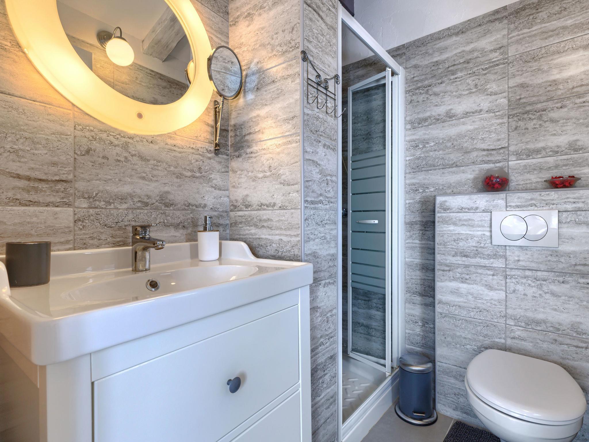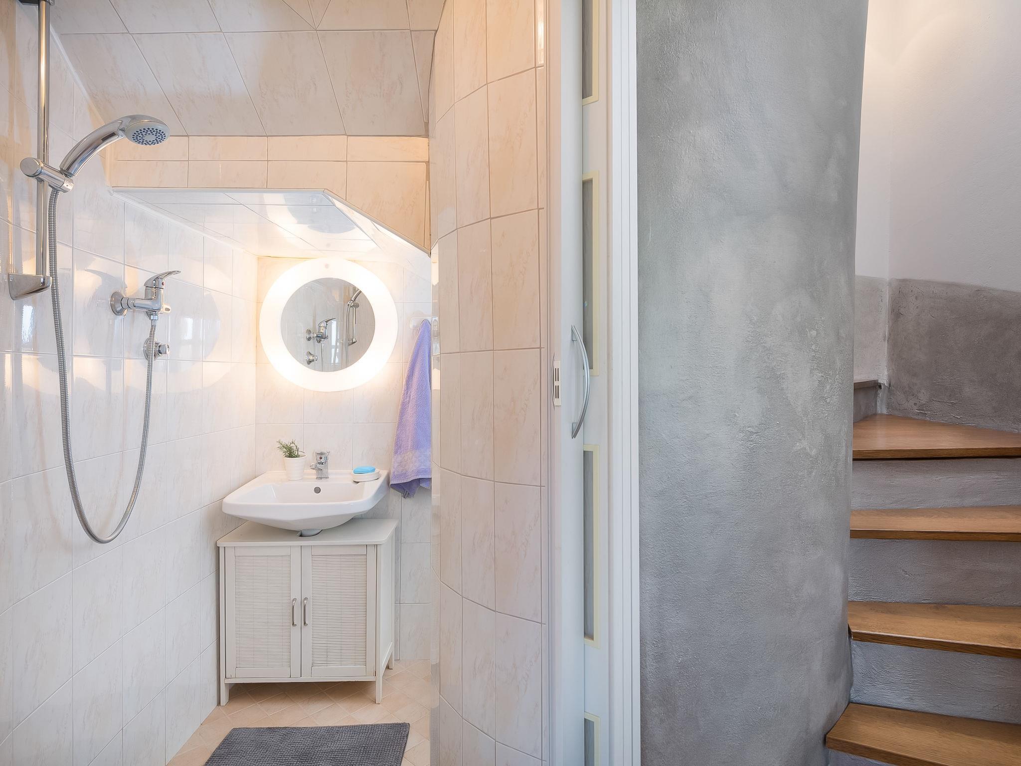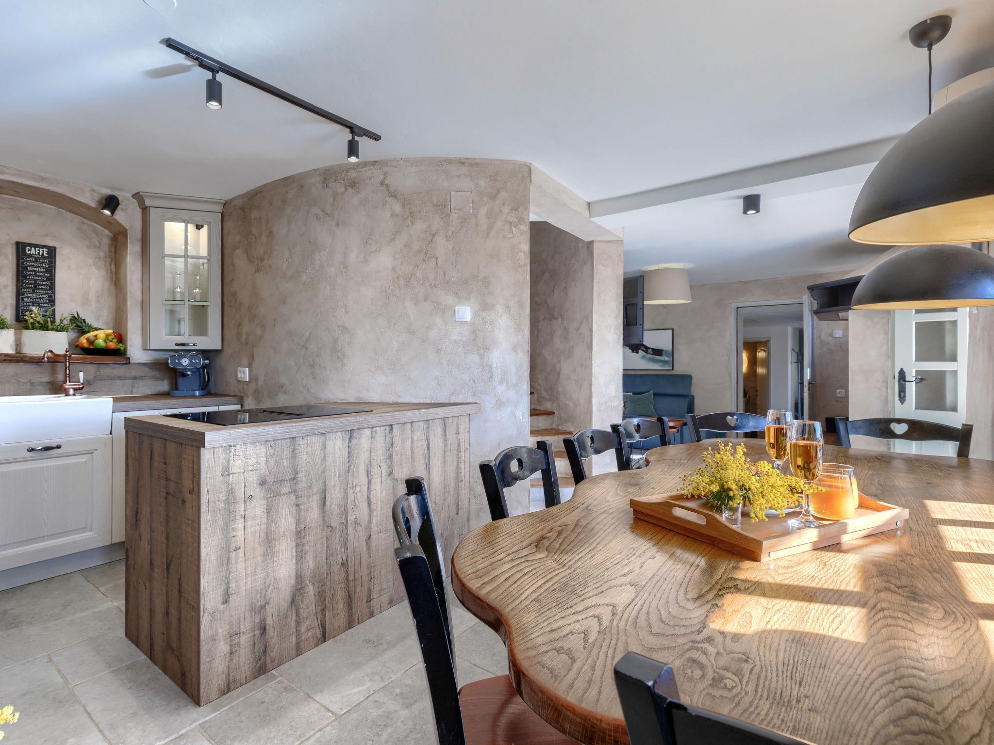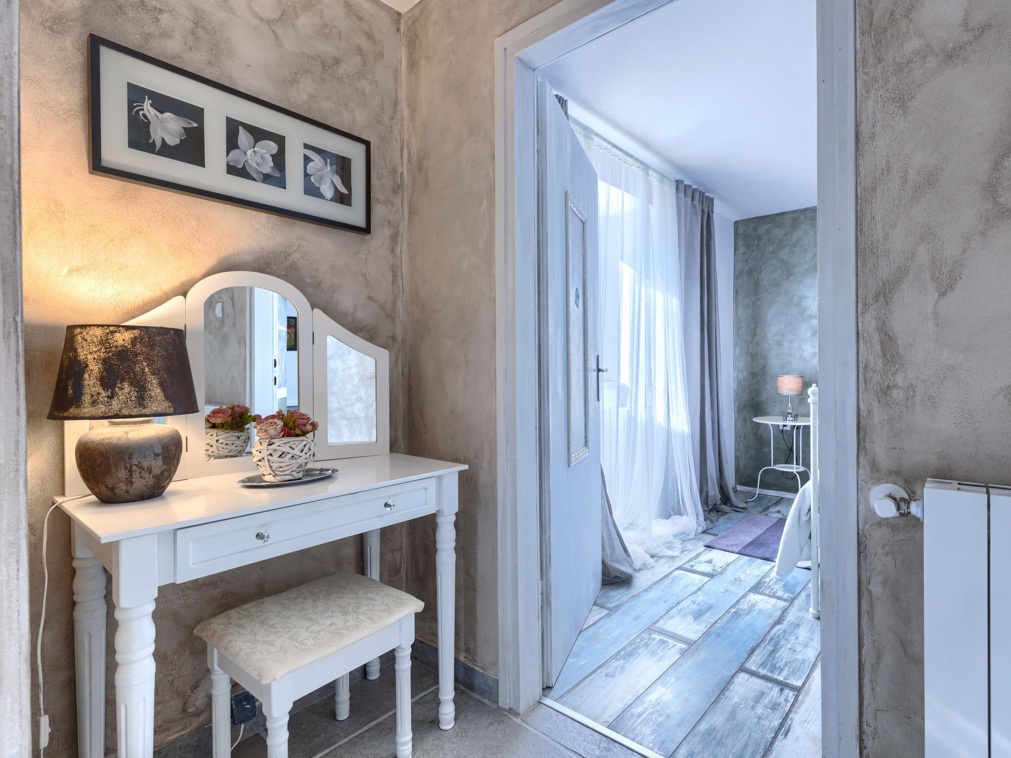 Doppelhaus "Villa Domenica", auf 2 Stockwerken, aus dem 18. Jahrhundert, renoviert. 1.1 km vom Zentrum von Trget, ausserhalb des Ortes, ruhige, sonnige, erhöhte Lage, 900 m vom Meer, 900 m vom Strand, in einer Sackgasse. Zur Alleinbenutzung: Grundstück 700 m2, Garten mit Pflanzen, Schwimmbad eckig (8 x 3 m, 140 cm tief, saisonale Verfügbarkeit: 11.Apr. - 24.Okt.) mit Innentreppe. Aussendusche, Terrasse (10 m2), Gartenmöbel, Grill, Kinderspielplatz (Schaukel). Im Hause: Internetzugang, Waschmaschine. Parkplatz (für 3 Autos) beim Haus auf dem Grundstück. Einkaufsgeschäft 1.1 km, Restaurant 600 m, Bushaltestelle 6.6 km, Kieselstrand 900 m. Verfügbar: Hundebox (im Preis inbegriffen).