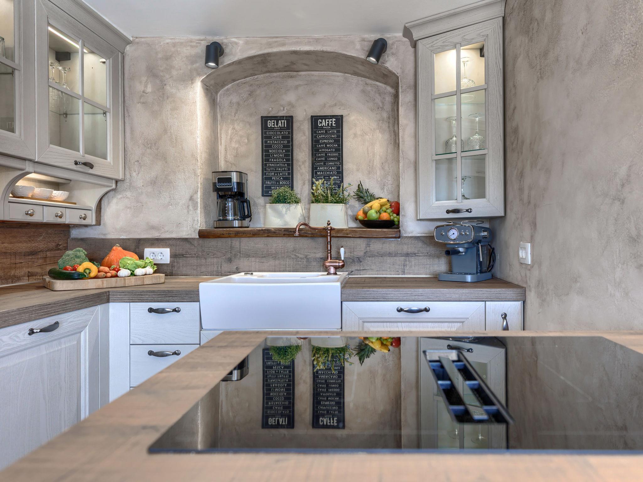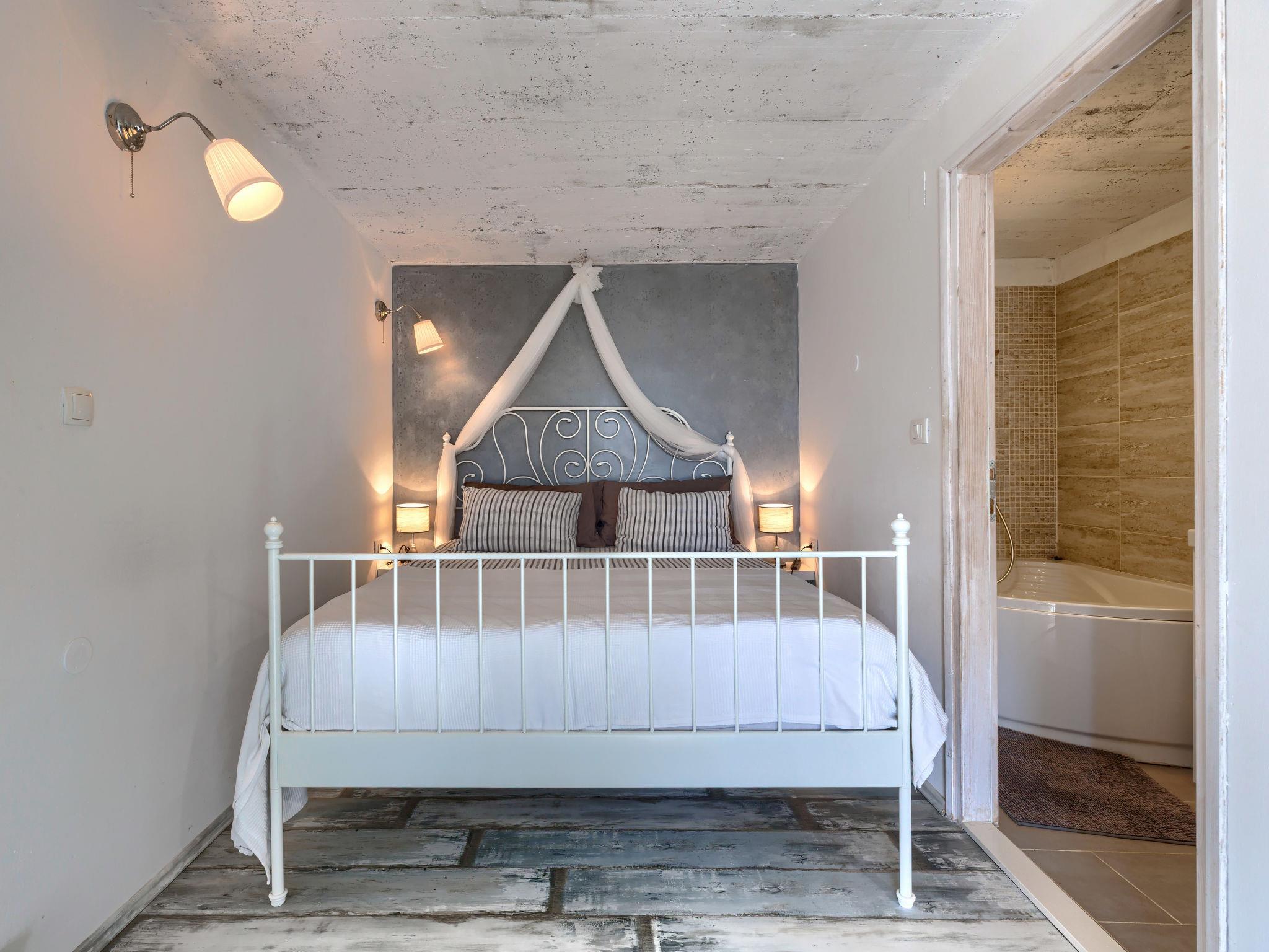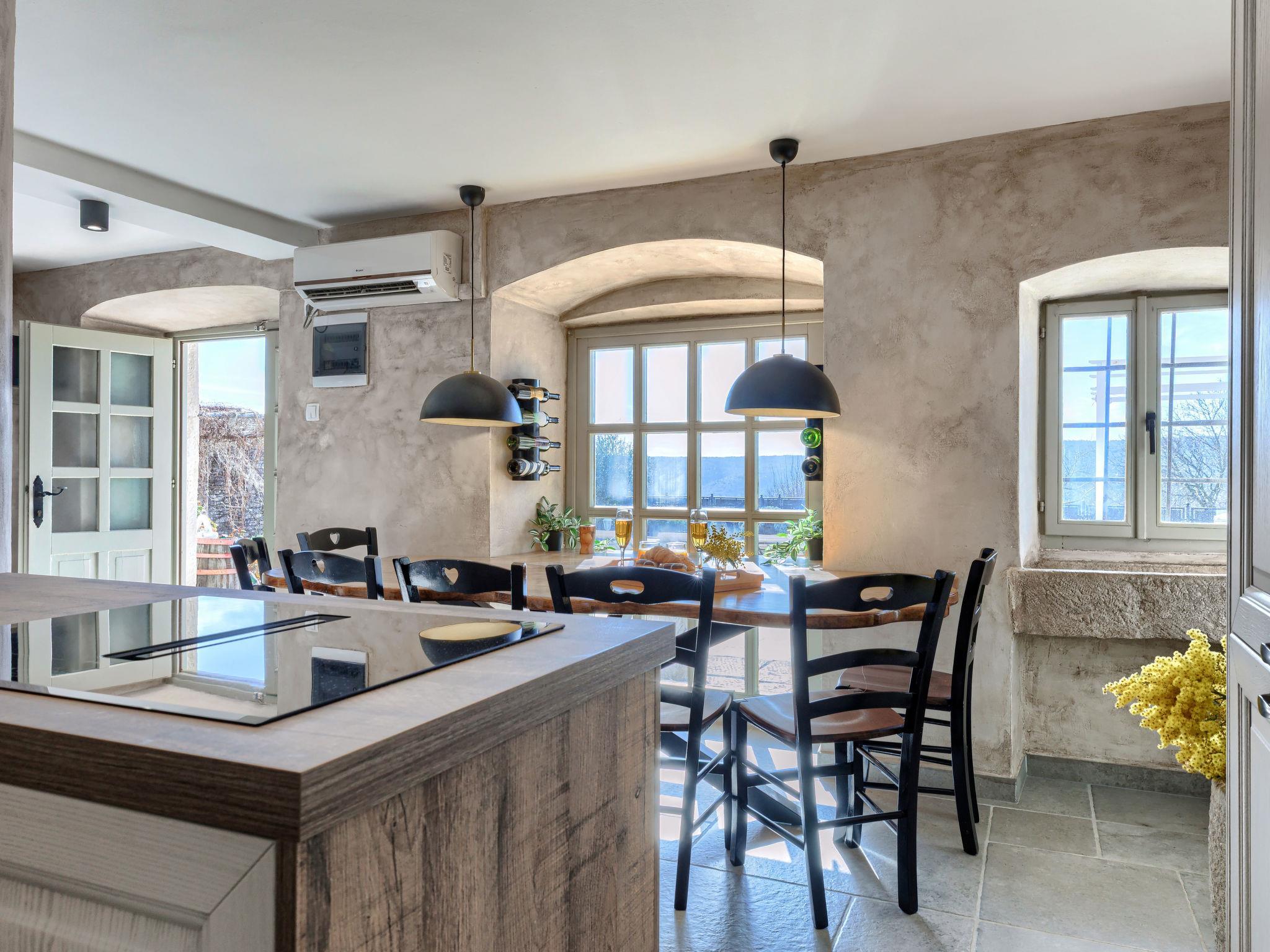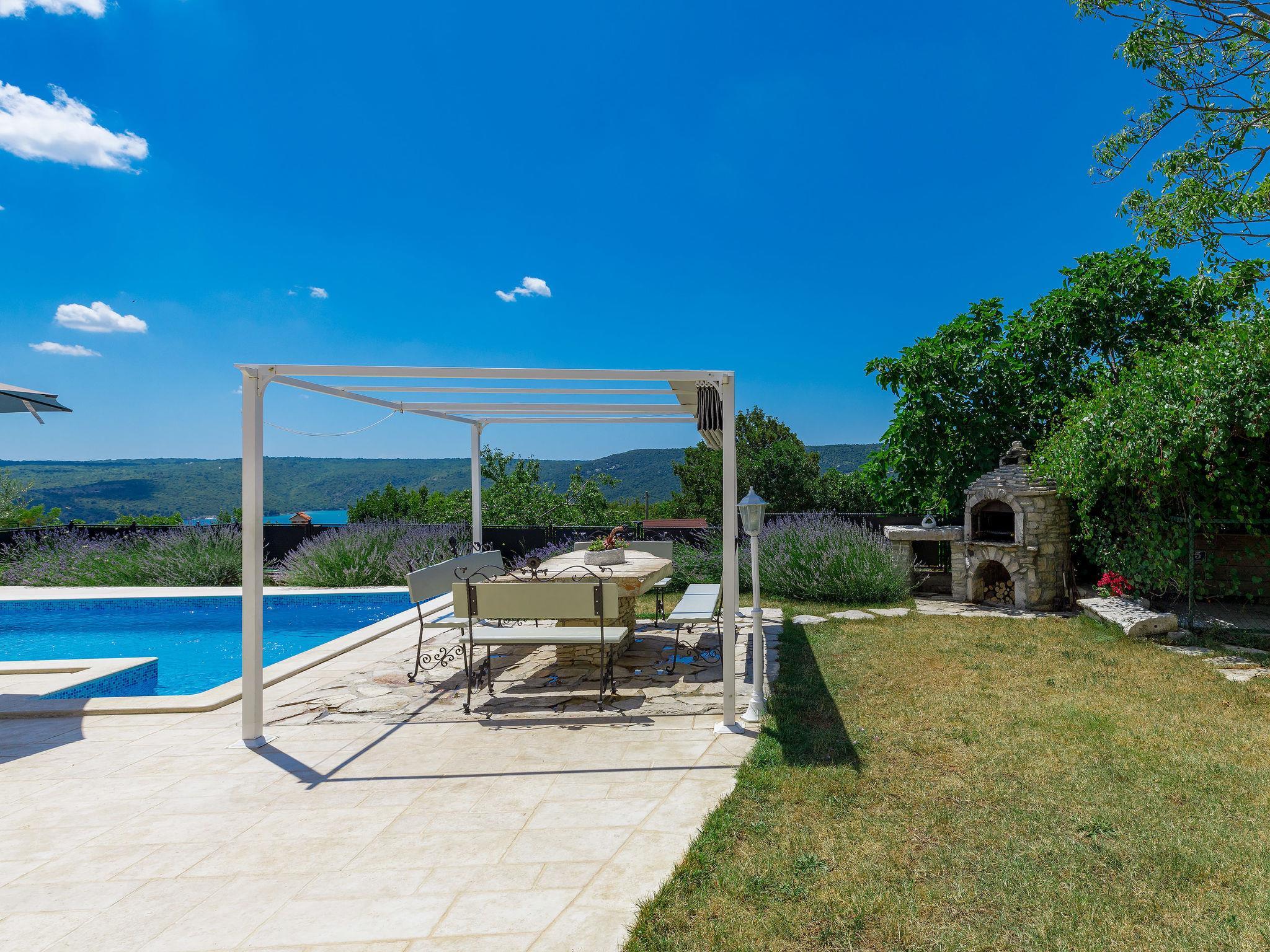 Doppelhaus "Villa Domenica", auf 2 Stockwerken, aus dem 18. Jahrhundert, renoviert. 1.1 km vom Zentrum von Trget, ausserhalb des Ortes, ruhige, sonnige, erhöhte Lage, 900 m vom Meer, 900 m vom Strand, in einer Sackgasse. Zur Alleinbenutzung: Grundstück 700 m2, Garten mit Pflanzen, Schwimmbad eckig (8 x 3 m, 140 cm tief, saisonale Verfügbarkeit: 11.Apr. - 24.Okt.) mit Innentreppe. Aussendusche, Terrasse (10 m2), Gartenmöbel, Grill, Kinderspielplatz (Schaukel). Im Hause: Internetzugang, Waschmaschine. Parkplatz (für 3 Autos) beim Haus auf dem Grundstück. Einkaufsgeschäft 1.1 km, Restaurant 600 m, Bushaltestelle 6.6 km, Kieselstrand 900 m. Verfügbar: Hundebox (im Preis inbegriffen).