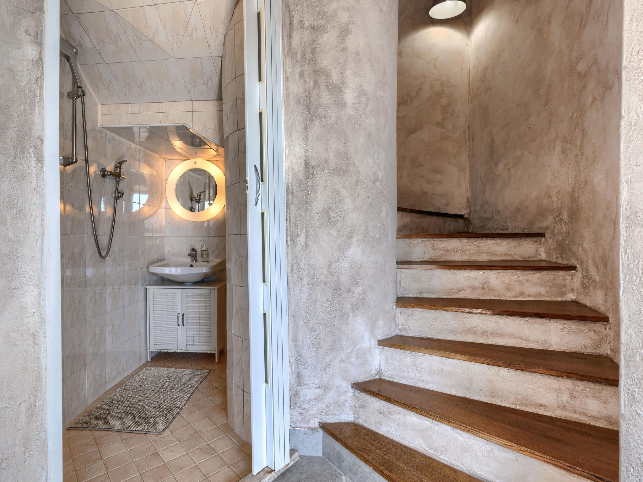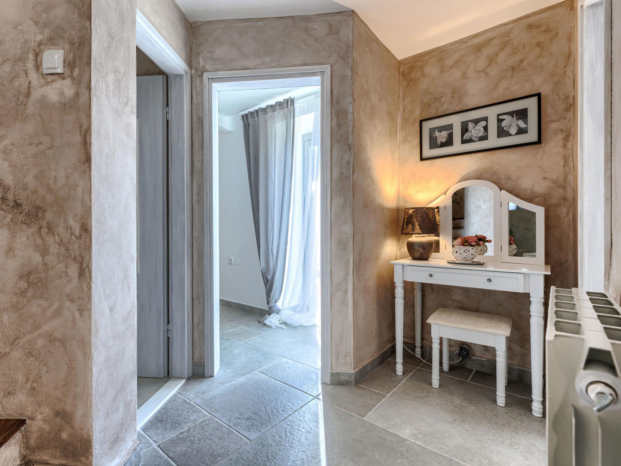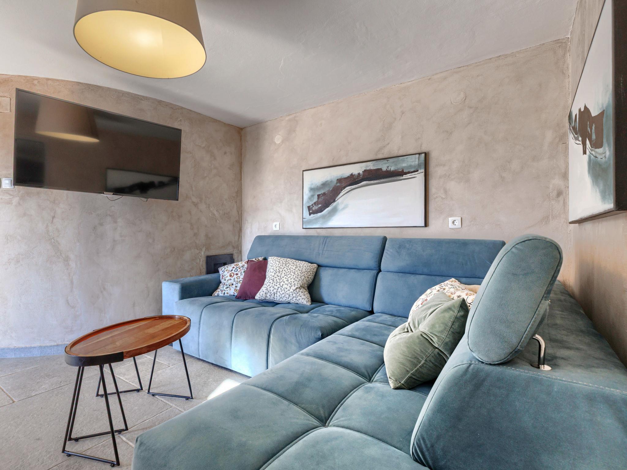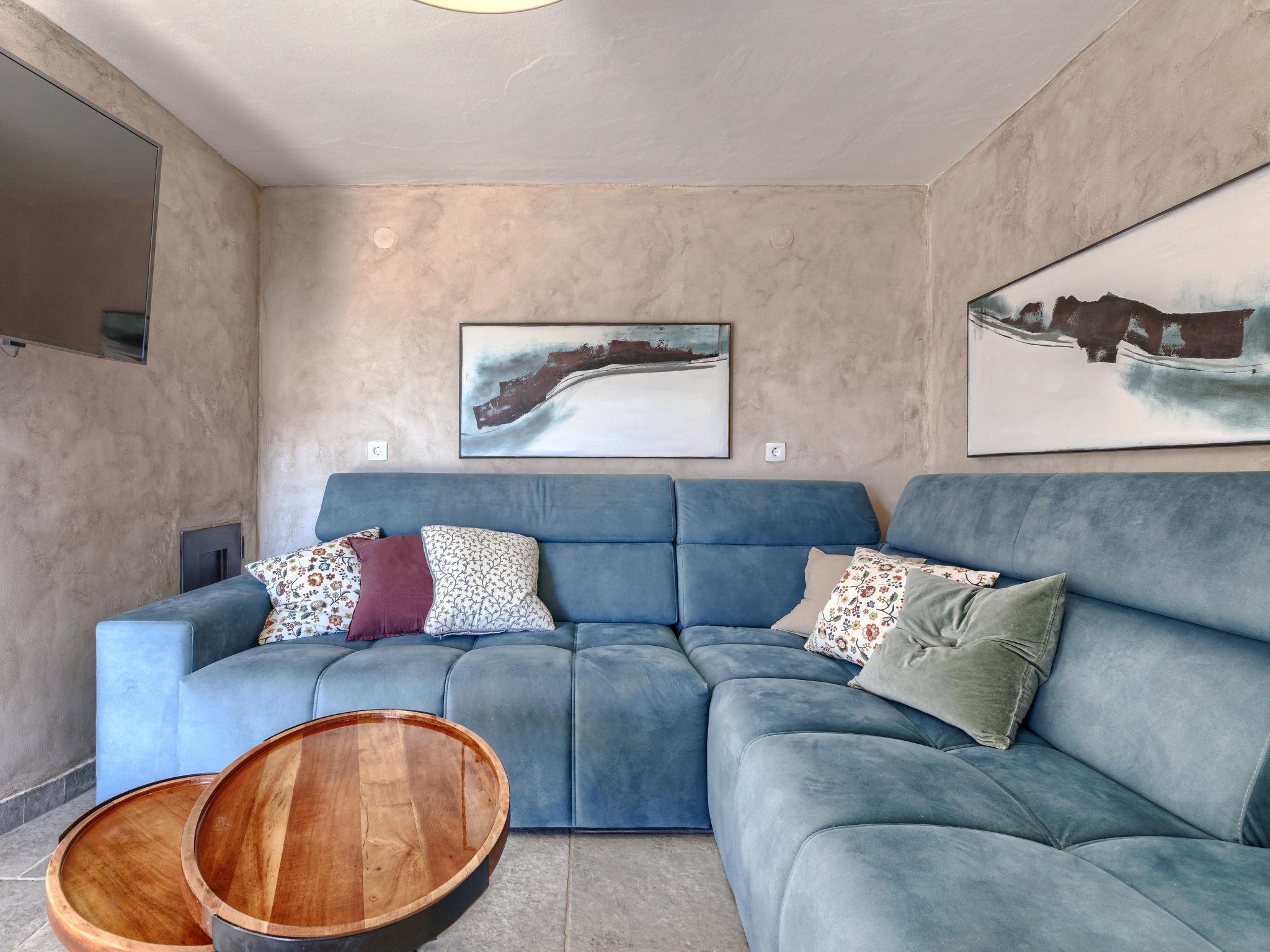 5-Zimmer-Doppelhaushälfte 110 m2 auf 2 Stockwerken. Stilvoll eingerichtet: Wohn-/Esszimmer mit Sat-TV (Flachbildschirm), Stereoanlage und Klimaanlage. 1 Zimmer mit 1 franz. Bett (160 cm, Länge 200 cm), Bad/WC und Sat-TV (Flachbildschirm), Klimaanlage. Ausgang zur Terrasse. Offene Küche (4 Kochplatten, Backofen, Geschirrspüler, Mikrowelle, Tiefkühler, elektrische Kaffeemaschine). Sep. WC. Obergeschoss: (Wendeltreppe) 1 Zimmer mit 1 franz. Bett (160 cm, Länge 200 cm), Sat-TV (Flachbildschirm), Klimaanlage. Durchgangszimmer mit 1 Bett (90 cm, Länge 200 cm), Sat-TV (Flachbildschirm). Ausgang zum Balkon. 1 Zimmer mit 1 franz. Bett (160 cm, Länge 200 cm), Dusche/WC und Sat-TV (Flachbildschirm), Klimaanlage. Dusche/WC. Balkon 6 m2, Terrasse 10 m2, überdacht. Terrassenmöbel, Liegestühle. Herrliche Sicht auf das Meer und die Landschaft. Zur Verfügung: Safe, Kinderhochstuhl, Babybett, Haartrockner. Internet (WLAN, gratis). Maximal 1 Haustier/Hund erlaubt.
