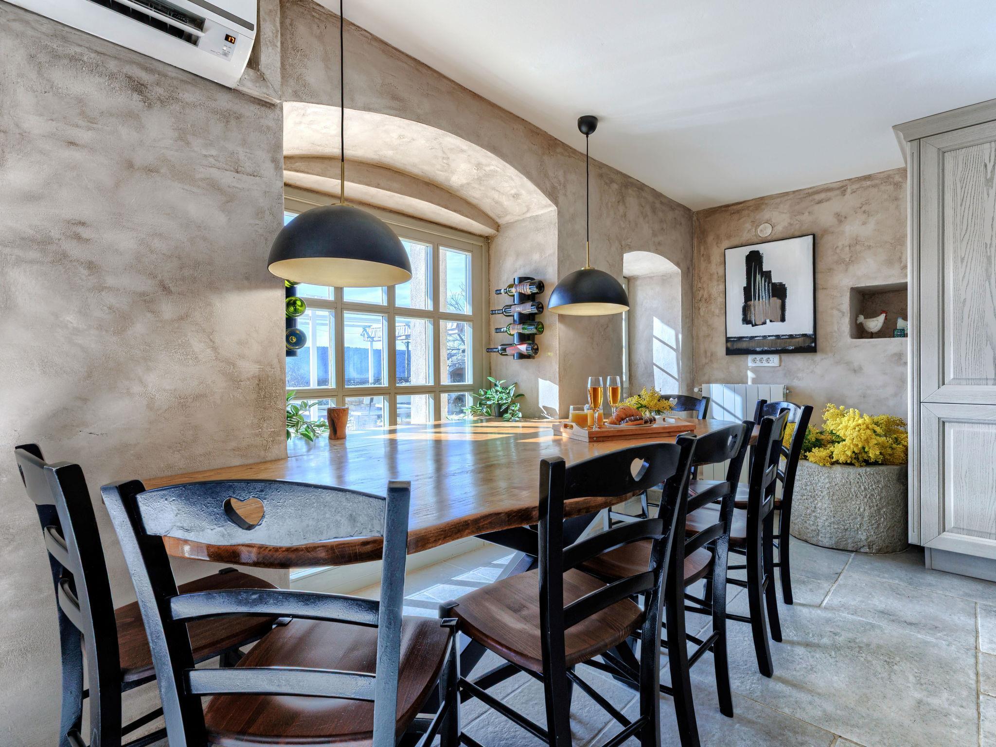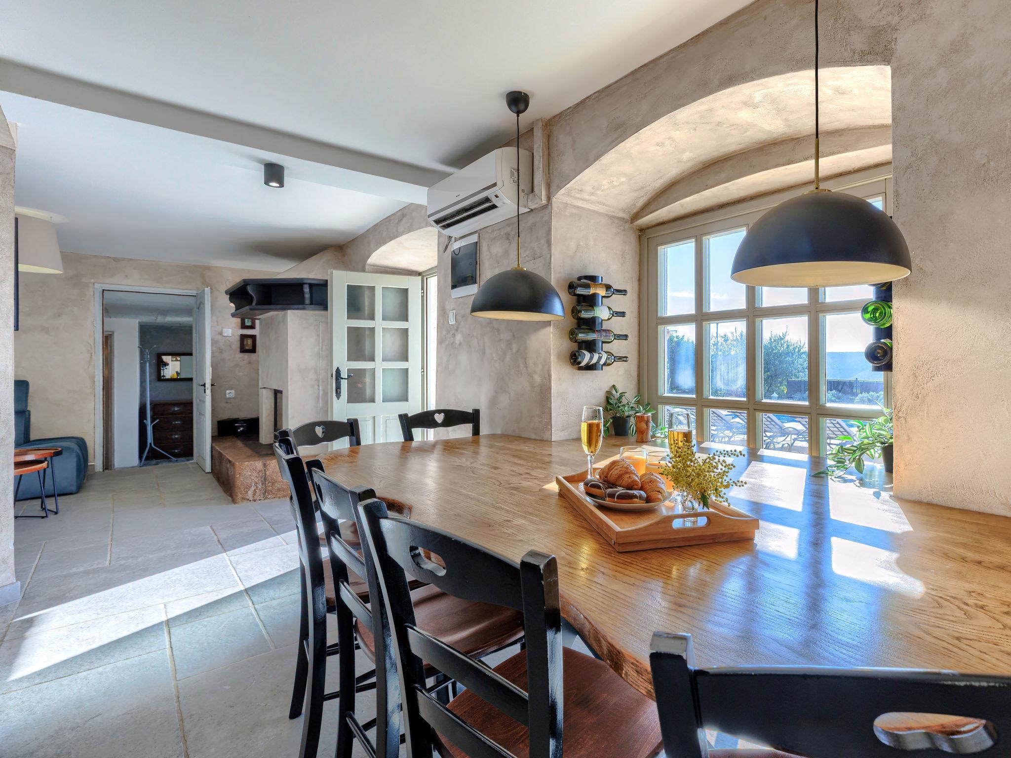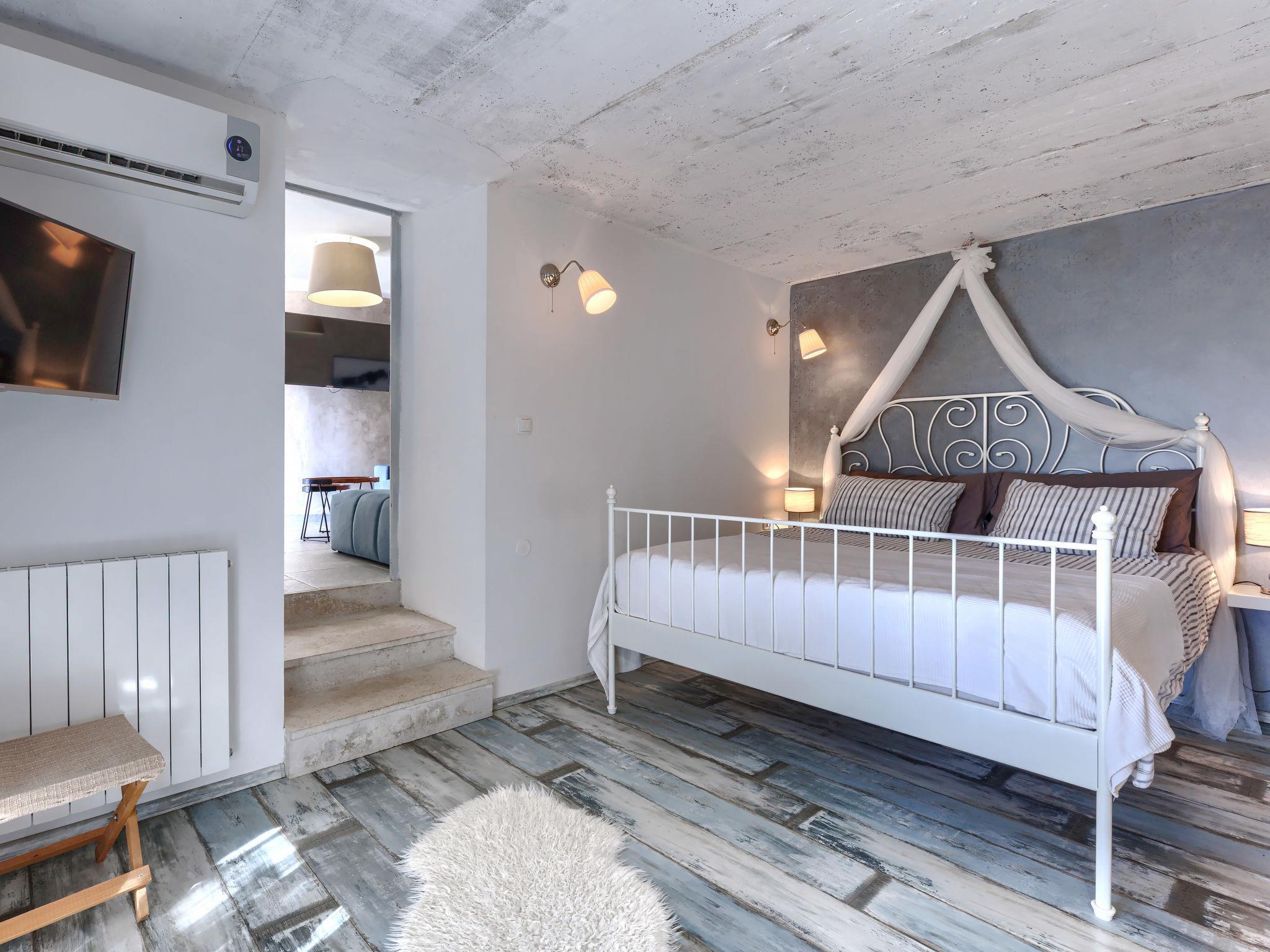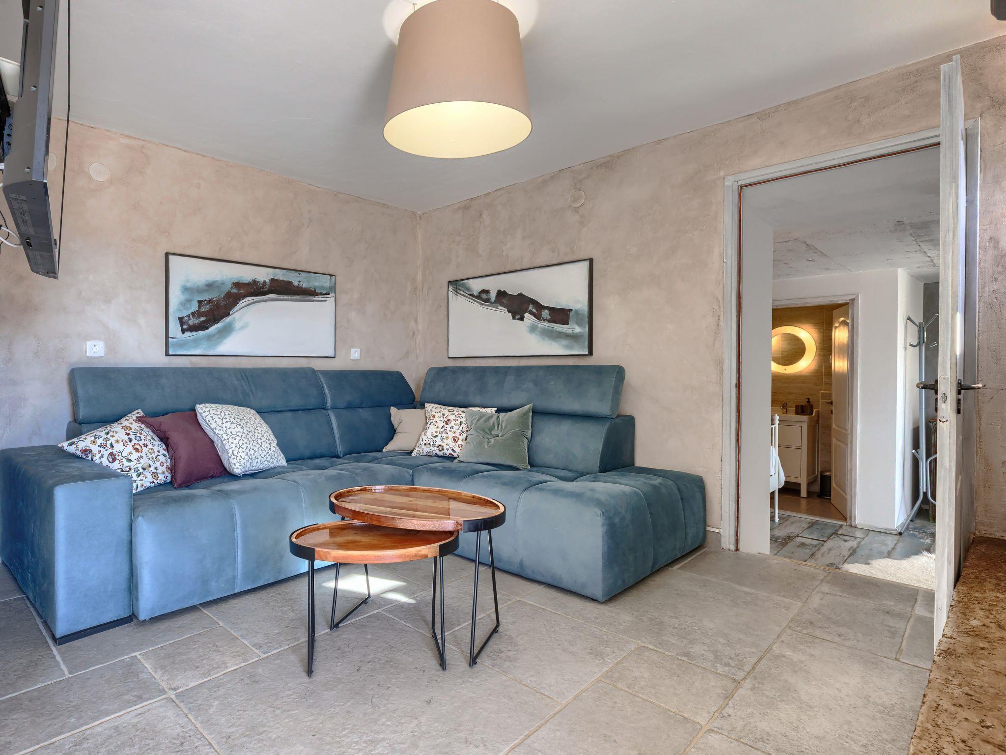 5-Zimmer-Doppelhaushälfte 110 m2 auf 2 Stockwerken. Stilvoll eingerichtet: Wohn-/Esszimmer mit Sat-TV (Flachbildschirm), Stereoanlage und Klimaanlage. 1 Zimmer mit 1 franz. Bett (160 cm, Länge 200 cm), Bad/WC und Sat-TV (Flachbildschirm), Klimaanlage. Ausgang zur Terrasse. Offene Küche (4 Kochplatten, Backofen, Geschirrspüler, Mikrowelle, Tiefkühler, elektrische Kaffeemaschine). Sep. WC. Obergeschoss: (Wendeltreppe) 1 Zimmer mit 1 franz. Bett (160 cm, Länge 200 cm), Sat-TV (Flachbildschirm), Klimaanlage. Durchgangszimmer mit 1 Bett (90 cm, Länge 200 cm), Sat-TV (Flachbildschirm). Ausgang zum Balkon. 1 Zimmer mit 1 franz. Bett (160 cm, Länge 200 cm), Dusche/WC und Sat-TV (Flachbildschirm), Klimaanlage. Dusche/WC. Balkon 6 m2, Terrasse 10 m2, überdacht. Terrassenmöbel, Liegestühle. Herrliche Sicht auf das Meer und die Landschaft. Zur Verfügung: Safe, Kinderhochstuhl, Babybett, Haartrockner. Internet (WLAN, gratis). Maximal 1 Haustier/Hund erlaubt.