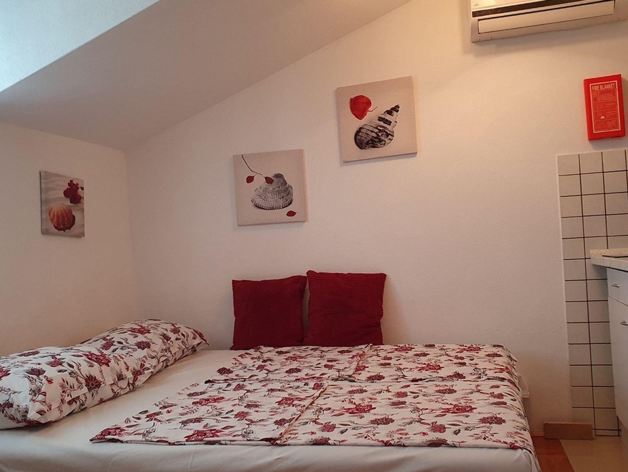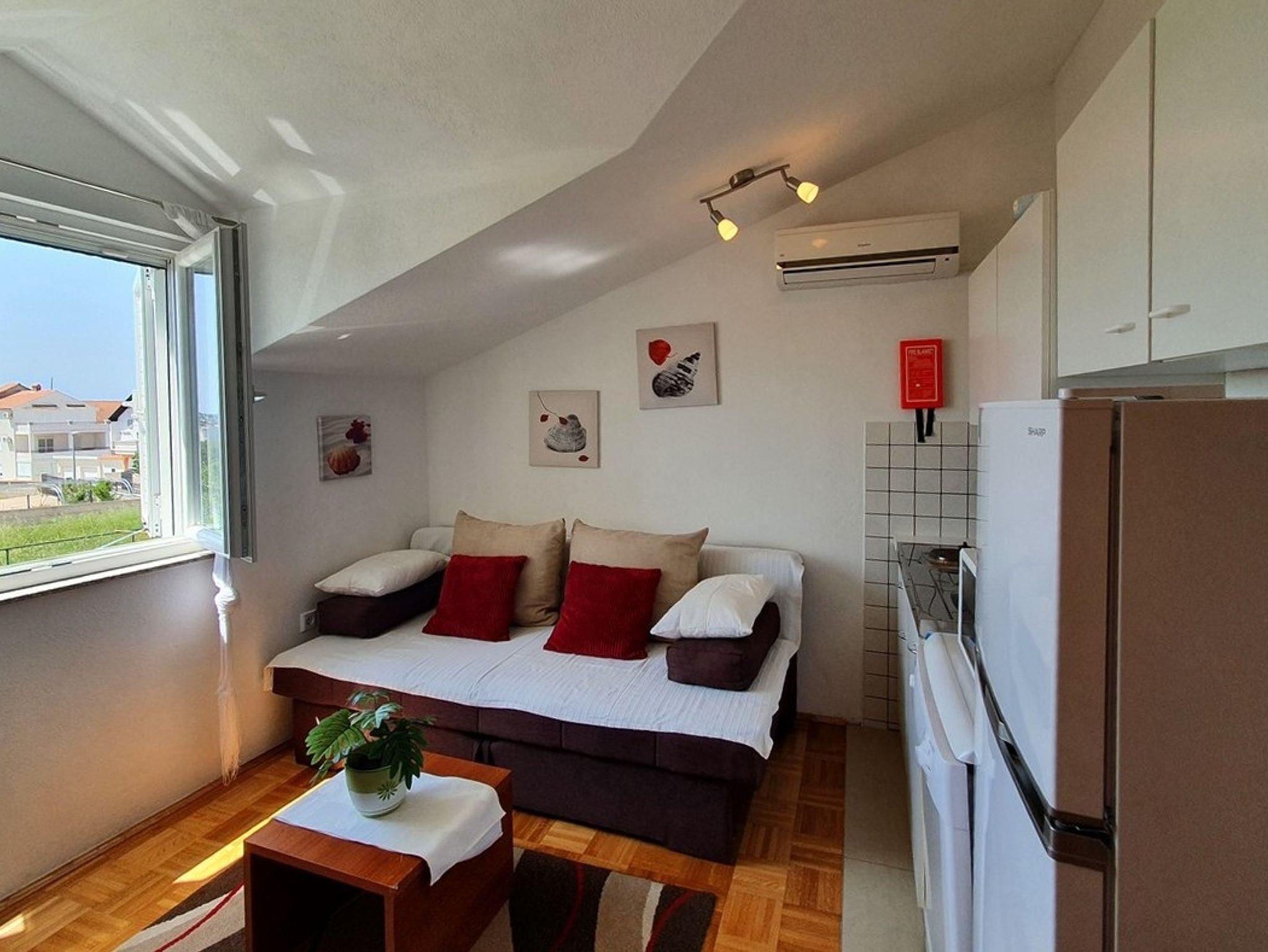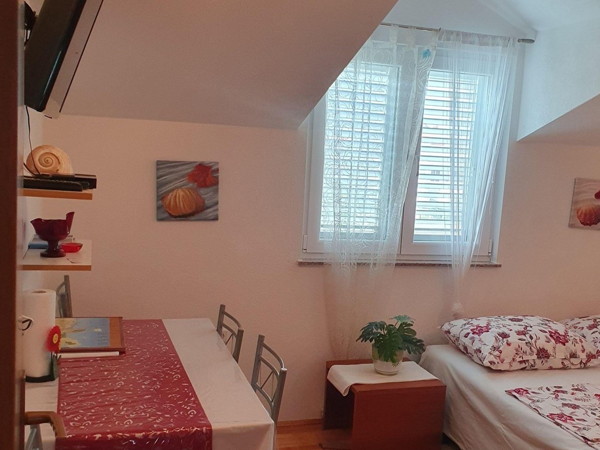 Ferienwohnung bietet Platz für 4 Gäste. Die Betten sind in Schlafzimmern, die es 1 gibt, und in Wohnzimmer, innerhalb einer Gesamtfläche von 26m2, angeordnet. Die Gäste haben eine eigene Terrasse zur Verfügung, auf der sie in warmen Sommernächten genießen können. Das Apartment bietet Meerblick. Es ist erlaubt, Speisen auf dem Gemeinschafts-Grill vorzubereiten. Räume der gebuchten Unterkunftseinheit werden nicht in eine Ganze verbunden. Unterkunftseinheit hat Räume, die von dem Rest der Einheit abgetrennt werden. IM PREIS INBEGRIFFEN: Kurtaxe, Endreinigung, Klimatisierung, Parkplatz, Internet, Fahrrad, Bügeleisen, Bügelbrett, Föhn, Sonnenschirm. VERBINDLICHE ZUSÄTZLICHE KOSTEN: Aufzahlung für Kurzaufenthalte (prozentualer Zuschlag pro Nächtigungsanzahl: 30% - 1, 20% - 2, 10% - 3). Die Verfügbarkeit zusätzlicher Dienstleistungen in Ihrem reservierten Termin und die Preise derselben (falls nicht aufgeführt) müssen im Voraus überprüft werden. Zusätzliche Dienstleistungen die in der Zahlungsaufforderung nicht aufgeführt sind werden direkt beim Vermieter bezahlt, angenommen der Gast nutzt auch diese. Ermäßigung auf den Grundpreis: Gratistag 14=13 (bei einem Aufenthalt von 14 Tagen oder mehr erhalten Sie einen Gratistag für den Aufenthalt bis 31.12.26).