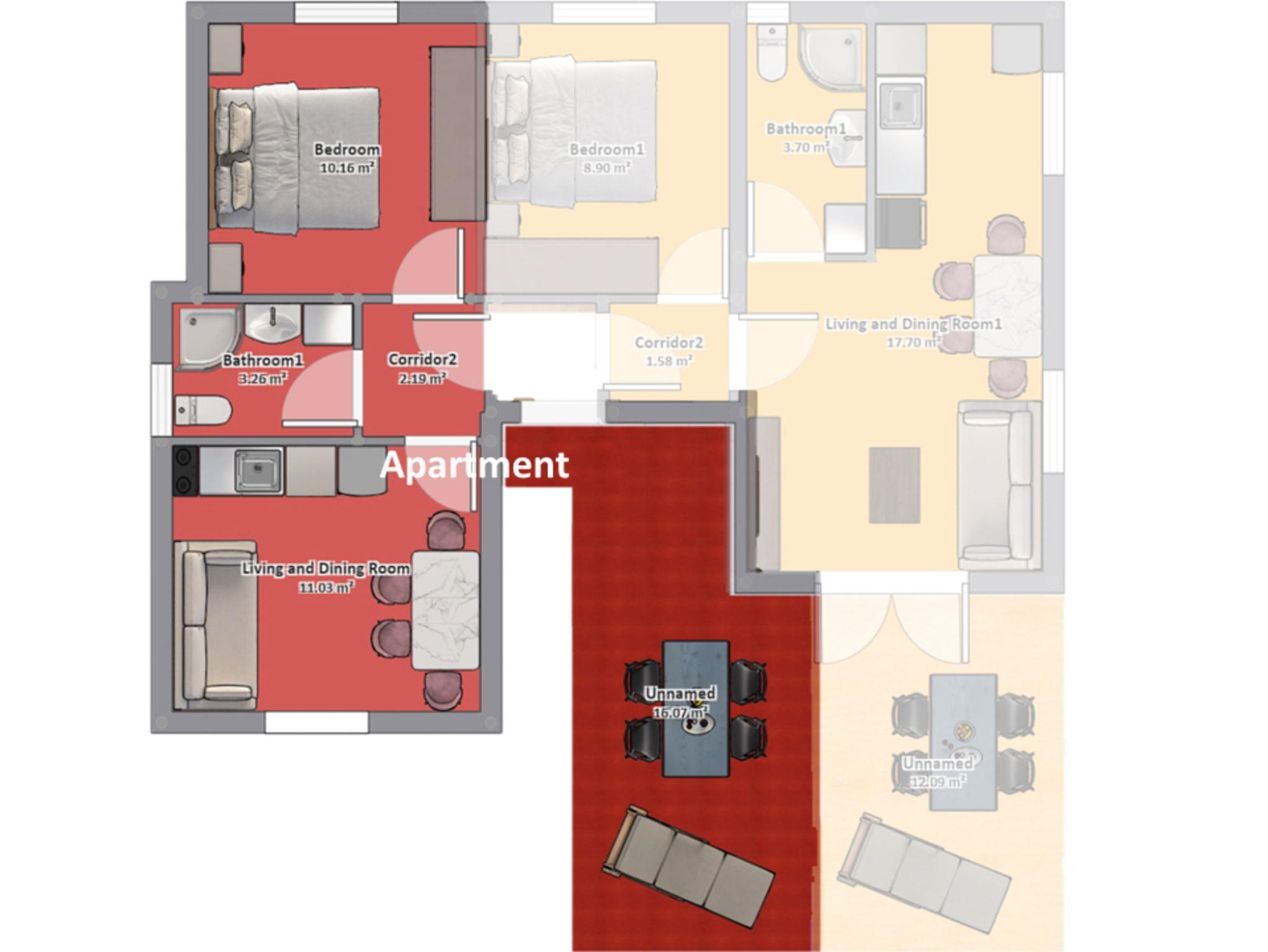 Umgebung des Objekts (Ordentlich), Hof (200m2, Sitzbereich), Parkplatz (Anzahl der Parkplätze: 4, Entfernung vom Objekt: im Hof), Grill: gemeinsam, WiFi Internet, Fahrrad (Anzahl: 2), Föhn, Bügeleisen, Bügelbrett, Sonnenschirm