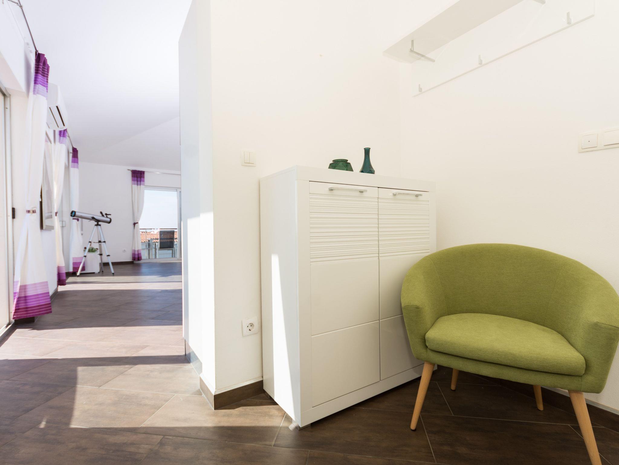 Ferienwohnung bietet Platz für 5 Gäste. Die Betten sind in Schlafzimmern, die es 2 gibt, und in Wohnzimmer, innerhalb einer Gesamtfläche von 83m2, angeordnet. Die Gäste haben eine eigene Terrasse zur Verfügung, auf der sie in warmen Sommernächten genießen können. Das Apartment bietet Meerblick. In der Unterkunftseinheit besteht die Möglichkeit des Mitbringens von Haustieren gegen Aufpreis. IM PREIS INBEGRIFFEN: Kurtaxe, Endreinigung, Klimatisierung, Parkplatz, Internet, Bügeleisen, Bügelbrett, Föhn. UNVERBINDLICHE ZUSÄTZLICHE KOSTEN: Haustiere (12,00 € pro Nacht). Die Verfügbarkeit zusätzlicher Dienstleistungen in Ihrem reservierten Termin und die Preise derselben (falls nicht aufgeführt) müssen im Voraus überprüft werden. Zusätzliche Dienstleistungen die in der Zahlungsaufforderung nicht aufgeführt sind werden direkt beim Vermieter bezahlt, angenommen der Gast nutzt auch diese.
