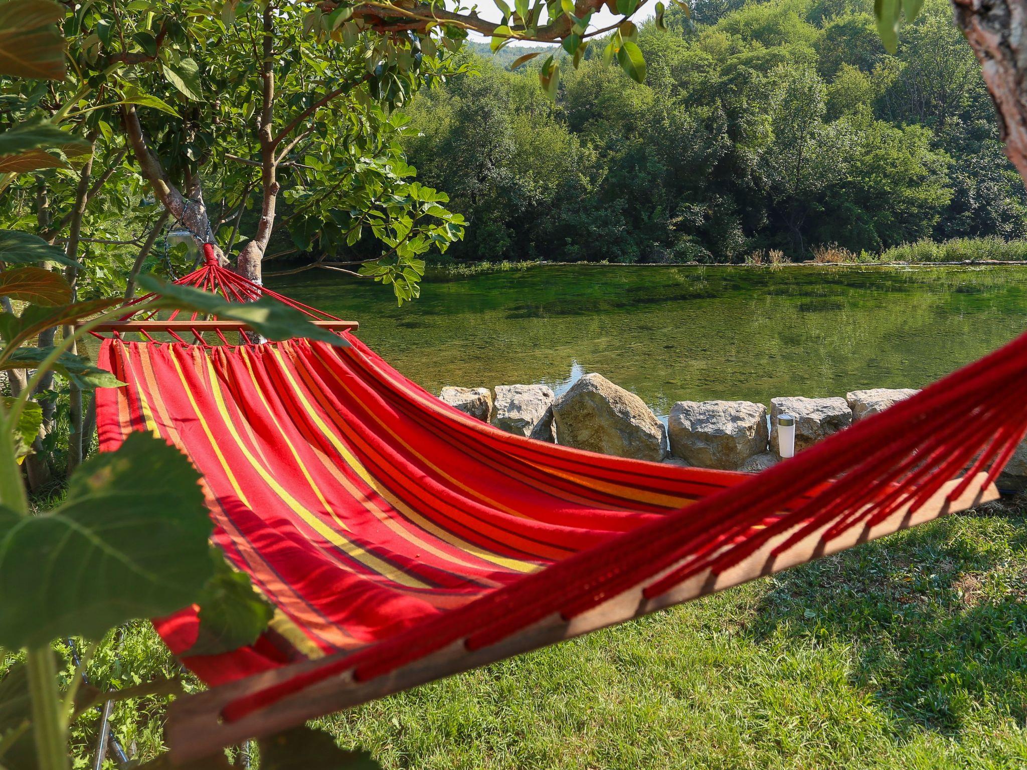 Das Anwesen besteht aus dem Haupthaus, der Wassermühle, die durch eine alte Brücke mit dem Haus verbunden ist, einem Außengrill, sechs Terrassen und einer Außenterrasse mit einem großen Esstisch. Außerdem gibt es einen Kinderspielplatz vor dem Haus. Von allen Terrassen aus hat man einen Blick auf den Fluss und die Wasserfälle sowie die Wassermühle. Kostenlose Parkplätze für bis zu 5 Autos sind vorhanden.