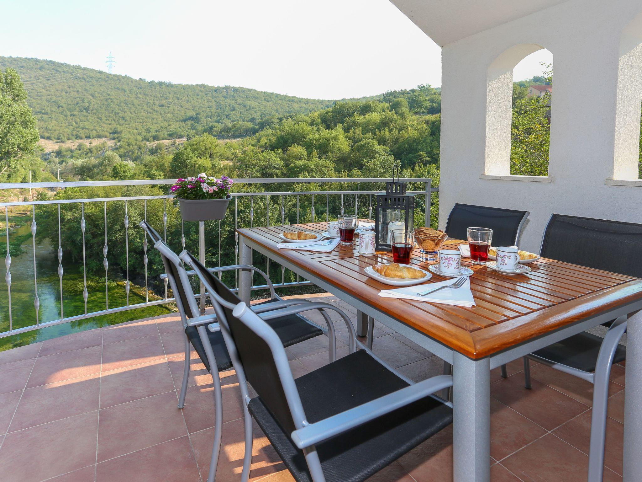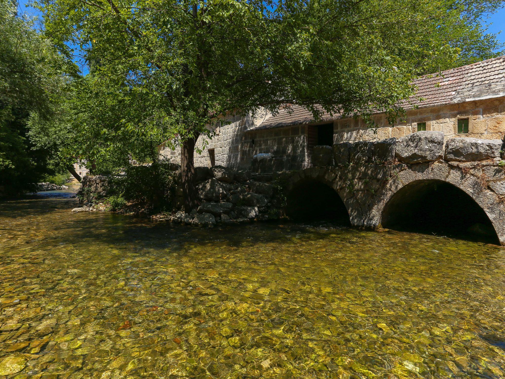 Das Wasserfallhaus wurde nur 500 m von der Quelle des Flusses Grab entfernt, in der ruhigen Umgebung des Dorfes Grab in der Gespanschaft Trilj, umgeben von unberührter Natur und mit einem spektakulären Blick auf den Fluss und die kleinen Wasserfälle gebaut. Das Anwesen befindet sich nur wenige Schritte von der alten Wassermühle entfernt, einer von drei erhaltenen Wassermühlen in diesem Teil des dalmatinischen Hinterlandes. Sie werden das Wasserfallhaus lieben wegen seiner großartigen Aussicht und seiner perfekten Lage auf dem Lande, aber dennoch in der Nähe der Stadt Trilj (5 km) mit ihren vielen Geschäften, Cafés und Restaurants und der alten Stadt Split (40 km), mit allen Vorteilen einer größeren Stadt und den nahe gelegenen Stränden. Leicht erreichbar von der Autobahn. Der nächstgelegene Flughafen (Split) ist 60 km entfernt. Das nächste Geschäft ist 500 m und das nächste Restaurant 800 m entfernt. Die Lage ist besonders für Aktivurlauber geeignet, da es in der Nähe Rad- und Wanderwege gibt. Fallschirmspringen und Gleitschirmfliegen sowie Rafting auf dem Fluss Cetina sind in der Umgebung ebenfalls möglich. Durch die gute Anbindung an die nahe gelegenen Städte Sinj, Split und Trogir können Sie einen Tag am Strand verbringen (der nächste Strand ist 40 km entfernt) und am Abend zurückkehren, den Nationalpark Krka besuchen (einfacher Zugang zur Autobahn), den Roten und den Blauen See in Imotski oder jede andere Stadt an der Küste und im Hinterland.