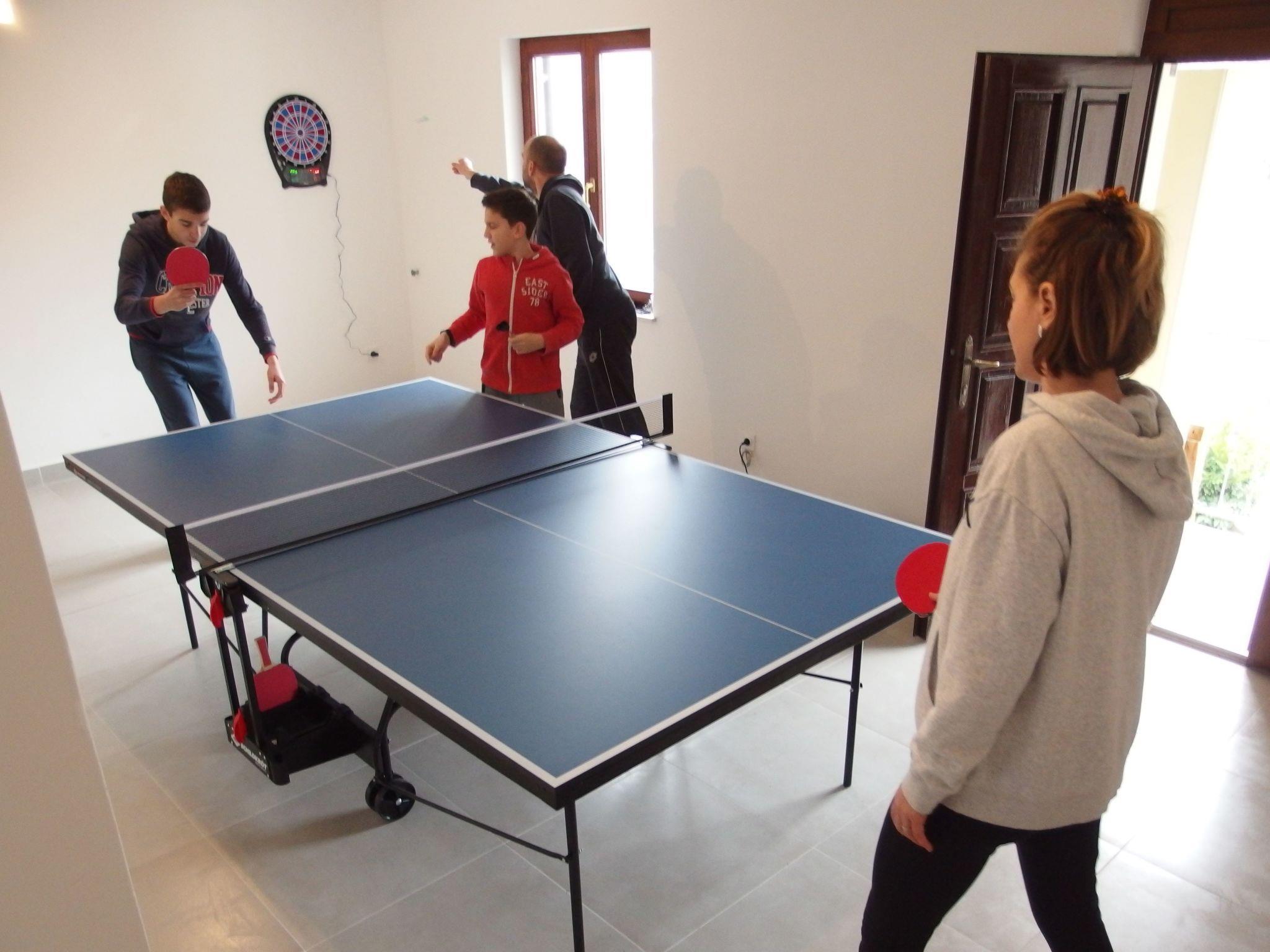 Das Haus wird nur als eine Einheit vermietet (beide Etagen/Appartements), so dass die Privatsphäre garantiert ist. Dieses voll ausgestattete Haus mit zwei Wohnzimmern, die mit den Küchen verbunden sind, vier Schlafzimmern, zwei Bädern und zwei Toiletten bietet unseren Gästen einen komfortablen Aufenthalt. Im Erdgeschoss des Hauses können Sie Indoor-Tischtennis oder elektronische Darts spielen.