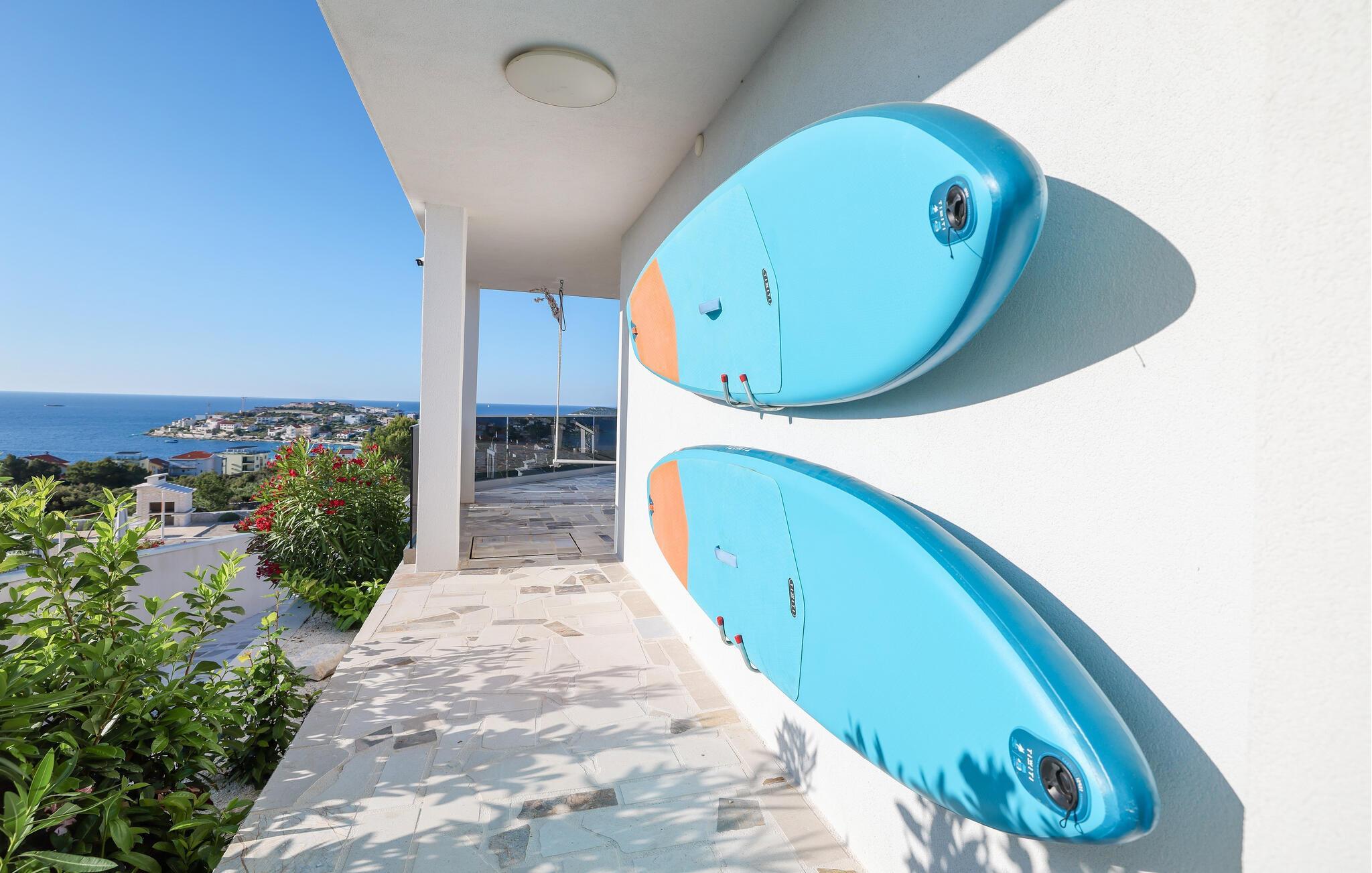 allem die Dachterrasse wird zu einem Ihrer Lieblingsorte werden, wo Sie genüsslich im Whirlpool sitzend den Lauf der Sonne über das Meer verfolgen können. Zu Ihrer weiterenUnterhaltung finden Sie auch ein ICOCAR und zwei SUP Bretter vor.