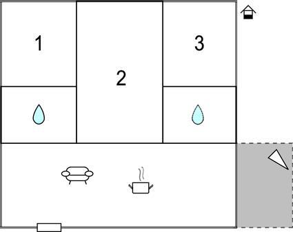 Badezimmer 5m2 (nr. 1) - WC. Warmes und kaltes Wasser. Dusche