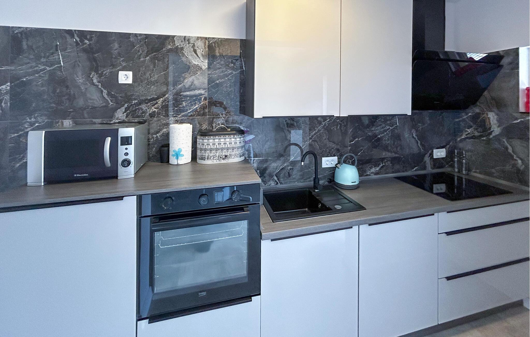 Die Küche verfügt über Warmwasser