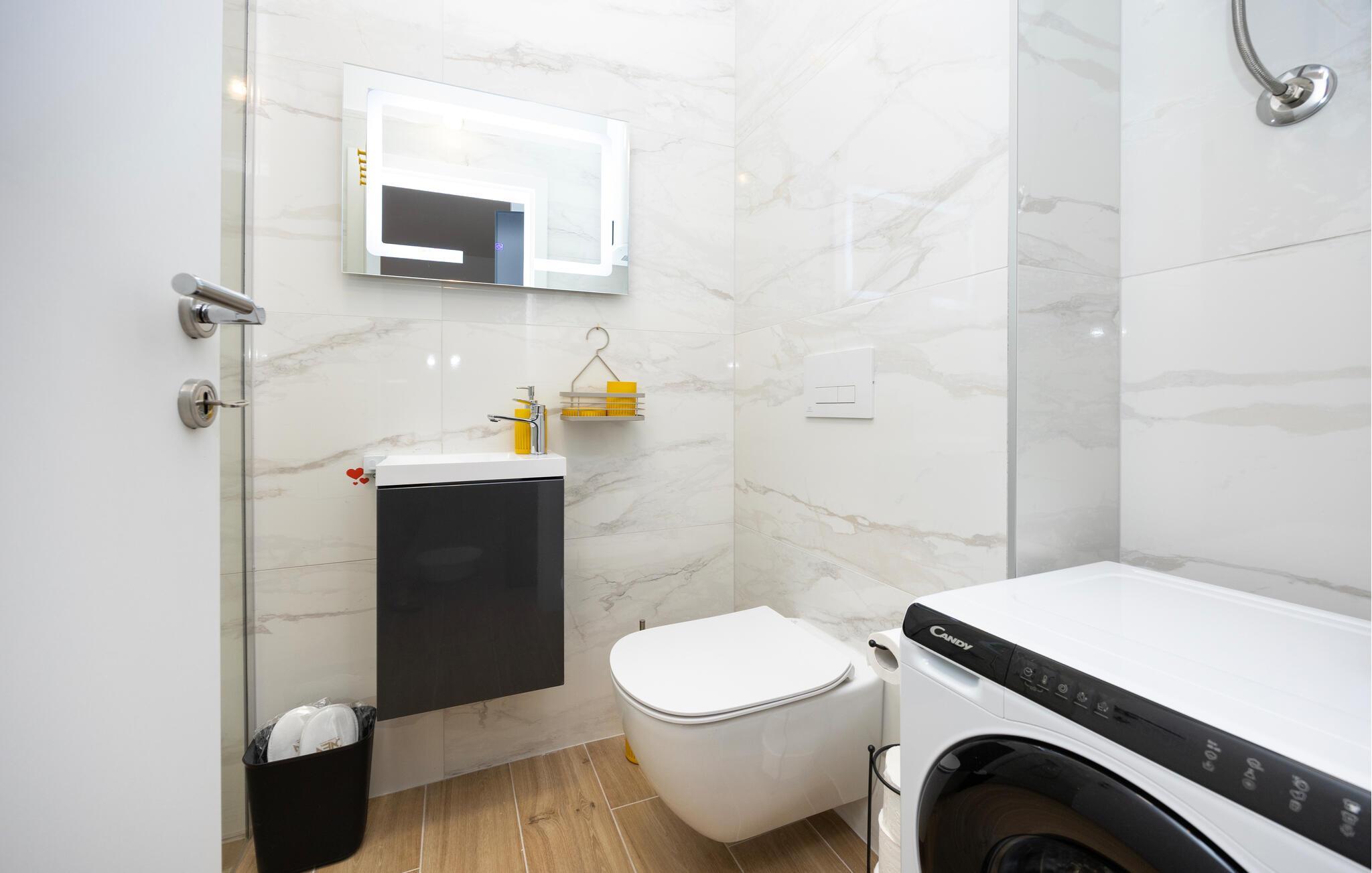 Badezimmer 4m2 (nr. 1) - WC. Warmes und kaltes Wasser. Dusche