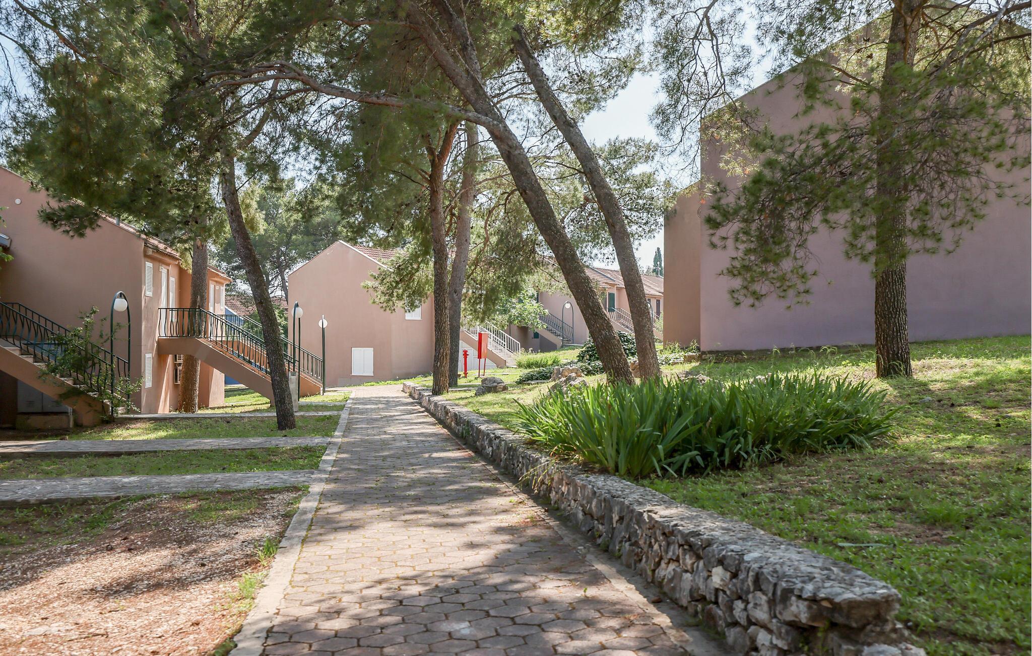 Genießen Sie den Urlaub in dieser strandnahen Ferienwohnung mit Poolzugang.