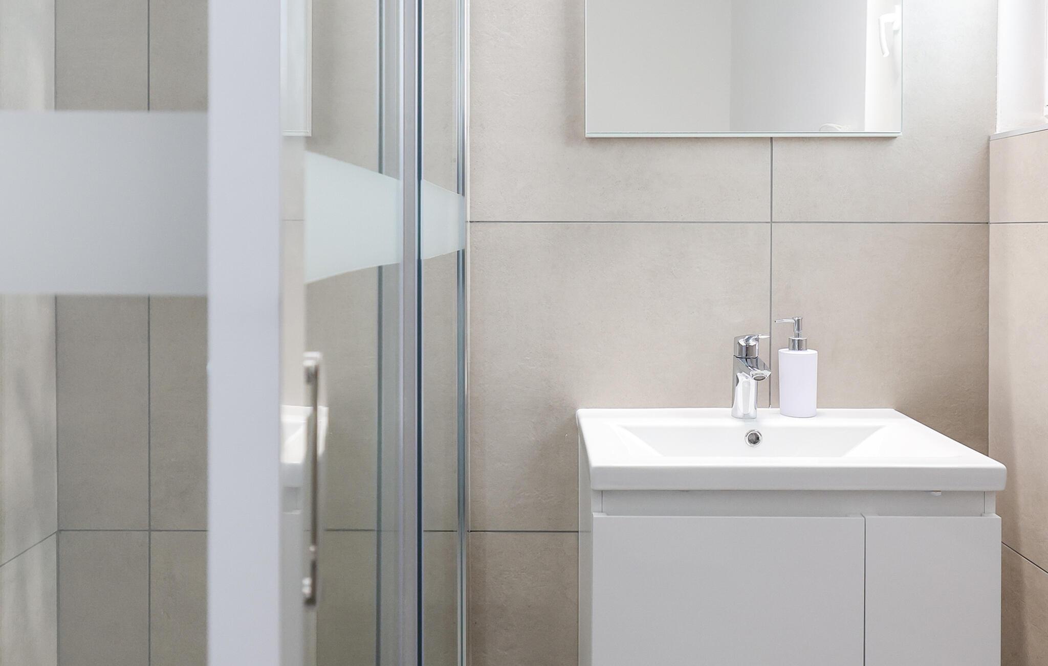 Badezimmer 4m2 (nr. 1) - WC. Warmes und kaltes Wasser. Dusche