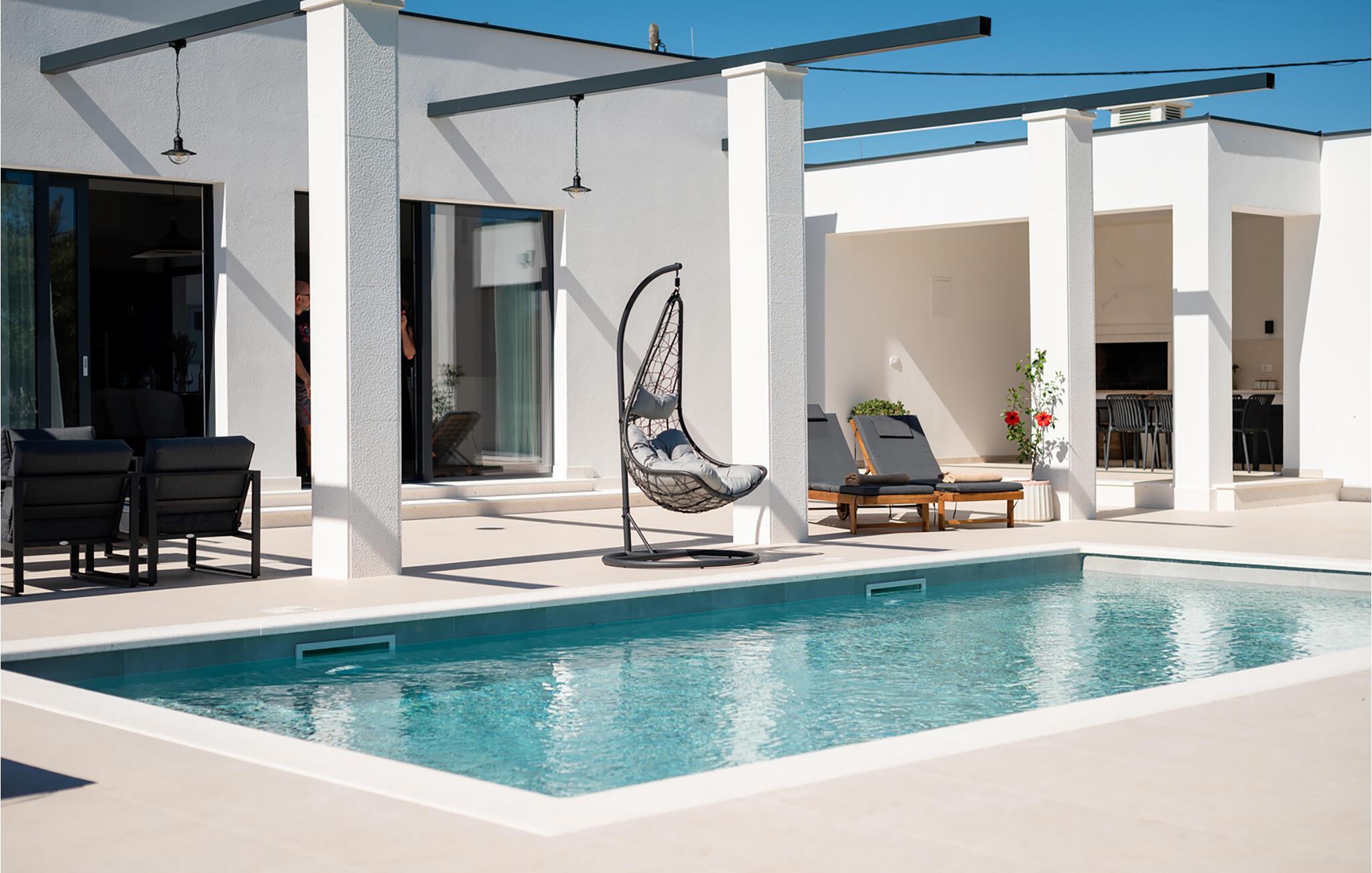 Der elegante, weitläufige Außenbereich ist wie geschaffen, um das herrliche Mittelmeerklima in vollen Zügen zu genießen. Erfrischen Sie sich im Pool, gönnen Sie sich wohlige Momente in der Sauna und stoßen Sie im Whirlpool auf die gemeinsame Zeit an. Bereiten Sie in der Sommerküche stimmungsvolle Grillabende vor und plaudern Sie bei Wein und Kerzenschein bis in die Nacht hinein.