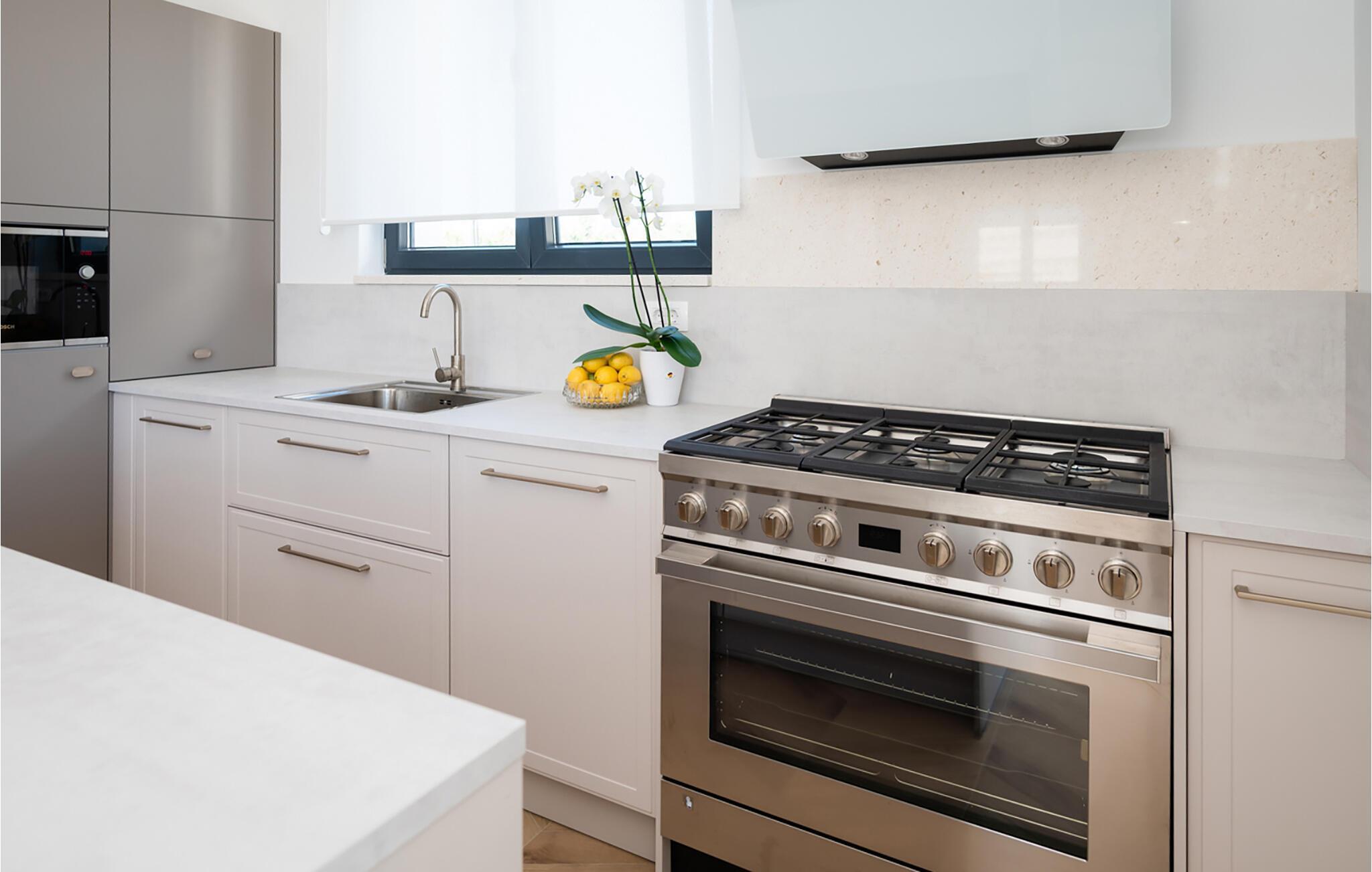 Zaubern Sie köstliche Gerichte in der hellen, modernen Küche und genießen Sie Ihre Mahlzeiten am einladenden Esstisch. Machen Sie es sich auf dem hochwertigen Sofa bequem und streamen Sie einen Film.