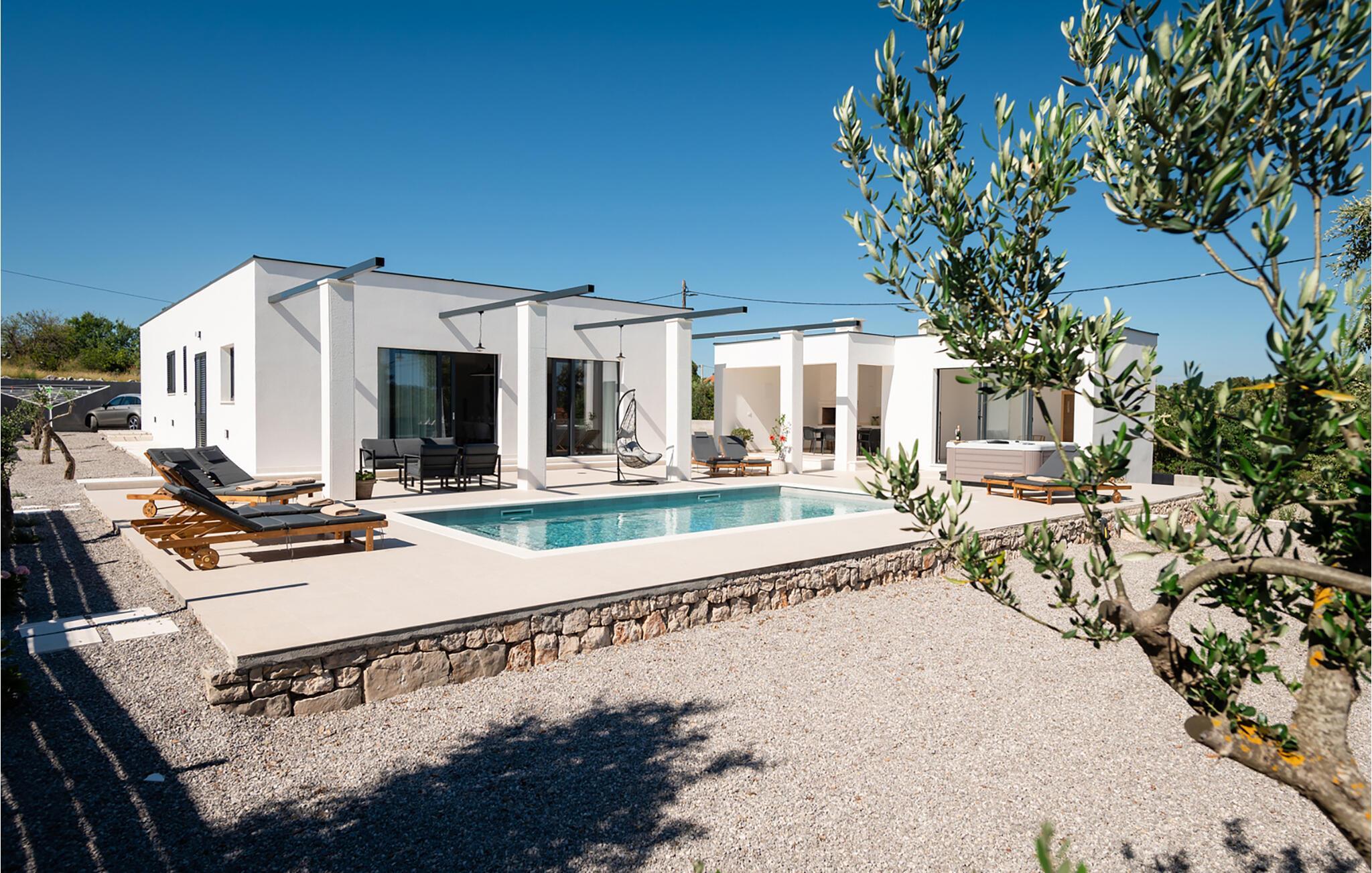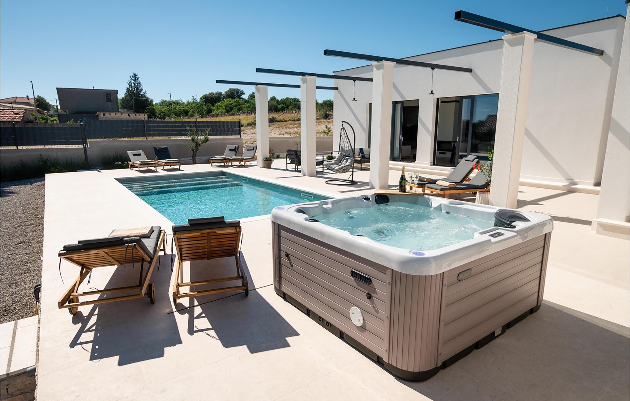 Gönnen Sie sich einen sonnigen Wellness-Urlaub in diesem luxuriösen Ferienhaus mit Pool, Sauna und Whirlpool.