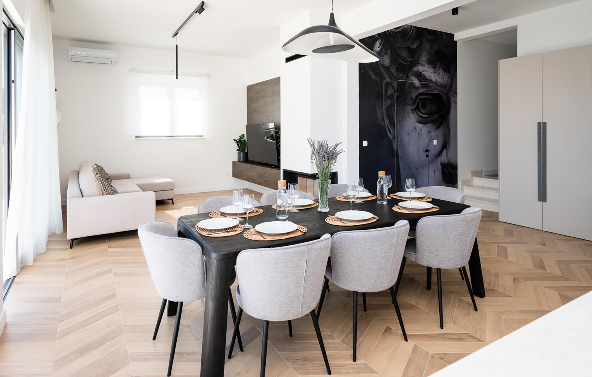 Dieses exklusive Urlaubsdomizil verwöhnt Sie mit einem großzügigen, stilvoll eingerichteten Interieur und zahlreichen Extras.