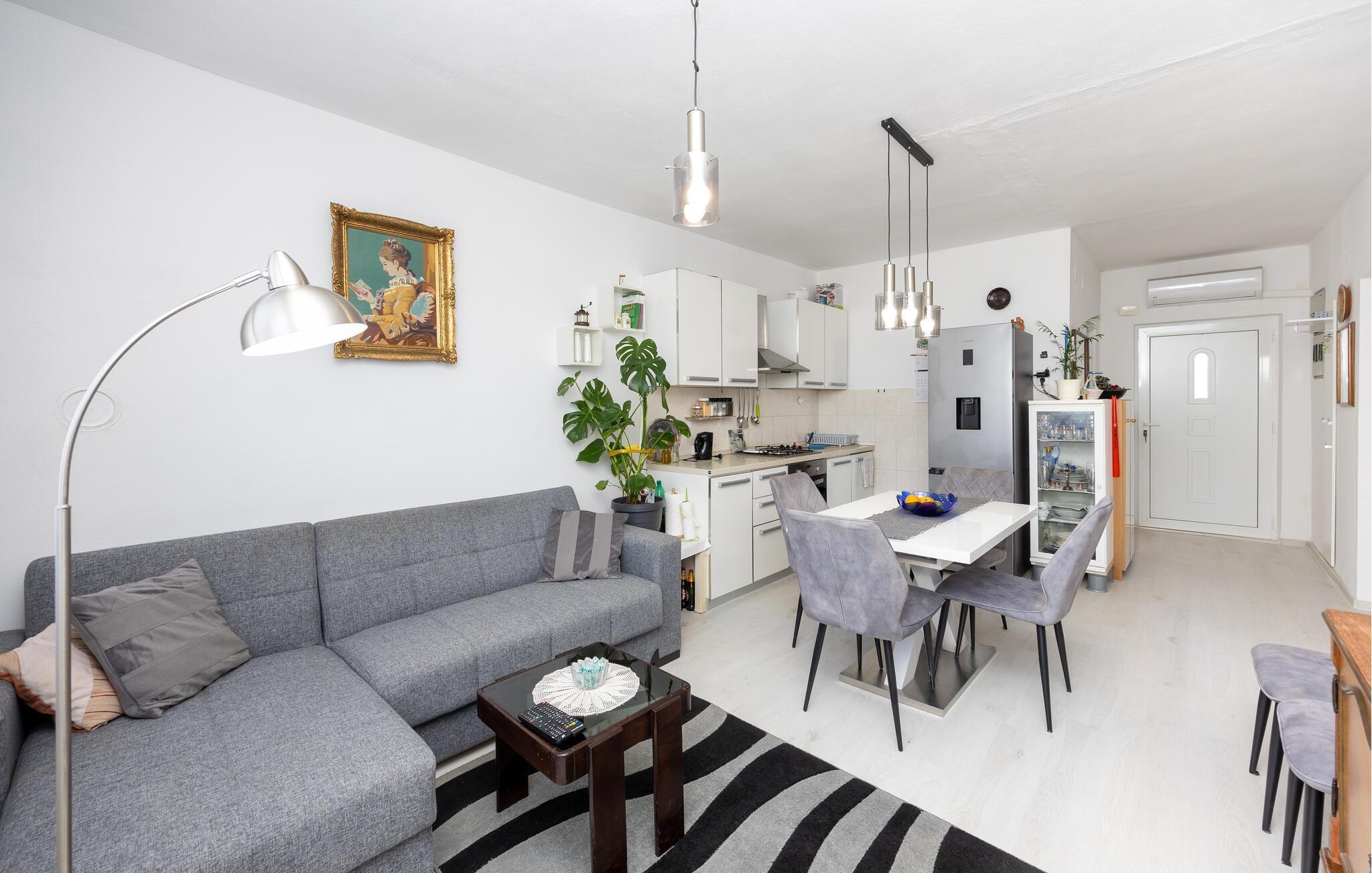 Diese helle und geschmackvoll möblierte Ferienwohnung begrüßt Sie mit einer frischen und freundlichen Wohnatmosphäre. Nutzen Sie die offene Küche für gesellige Koch-Events und genießen Sie das Resultat bei harmonischen Mahlzeiten am einladenden Esstisch. Entspannen Sie abends bei einem Brettspiel oder streamen Sie einen guten Film auf dem Sofa.