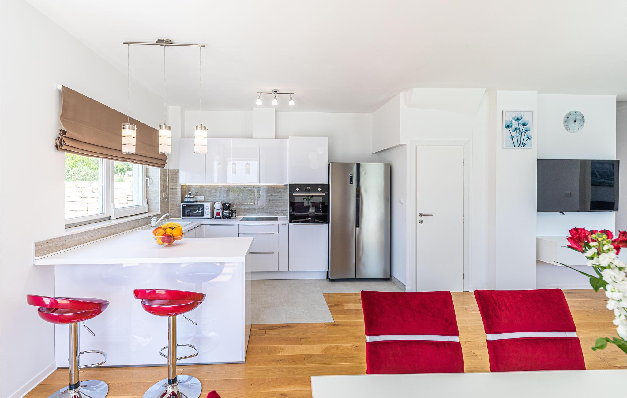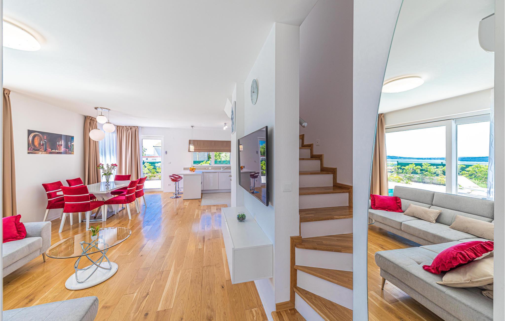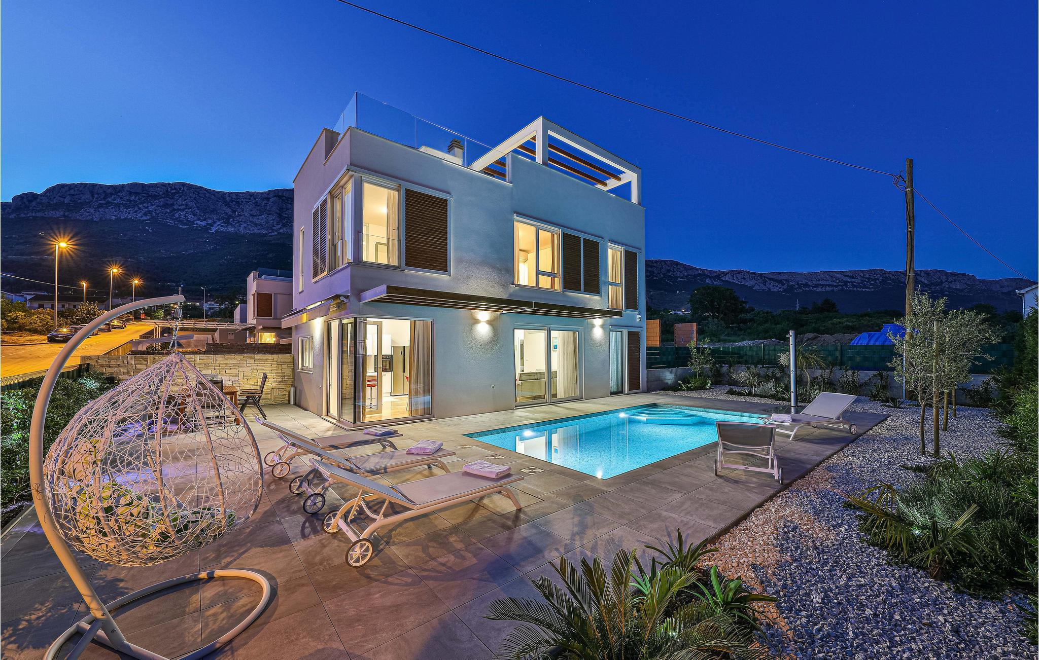Erleben Sie einen fantastischen Urlaub in diesem modernen Ferienhaus mit allen Bequemlichkeiten, die Sie sich für eine erholsame Zeit wünschen können. Zwischen dem schroffen Gebirge und dem türkisen Meer finden Sie diesen wunderbaren Flecken Erde. Entspannen Sie auf der Terrasse, genießen Sie die Sonne und springen Sie für eine schnelle Erfrischung in den privaten Pool vor dem Haus mit wunderbarer Panorama-Aussicht auf das Wasser. Am Abend bestaunen Sie die farbenprächtigen Sonnenuntergänge bei einem Glas Weißweinschorle, bevor Sie sich in die bequemen Betten fallen lassen und von einem neuen erlebnisreichen Tag in Kroatien träumen.