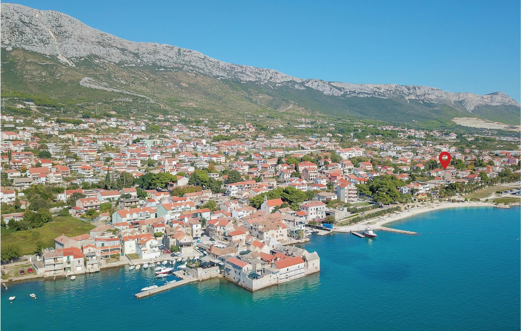 Diese geräumige Ferienwohnung befindet sich auf der 1. Etage eines Hauses in unmittelbarer Nähe der Marina Kastela. Die Ferienwohnung ist modern eingerichtet und besteht aus einem Schlafzimmer, Badezimmer und einer Küche mit Wohnraum. Von der Terrasse werden Sie den Ausblick auf das Meer und die Marina genießen, wenn Sie hier Ihren Morgenkaffee zu sich nehmen. Eine Außenküche wird mit CDF972 gemeinsam benutzt. In der Nähe befindet sich das Ferienhaus CDT266 vom gleichen Eigentümer. Besuchen Sie die historischen Städte Split und Trogir in ca. 15 km Entfernung von hier.