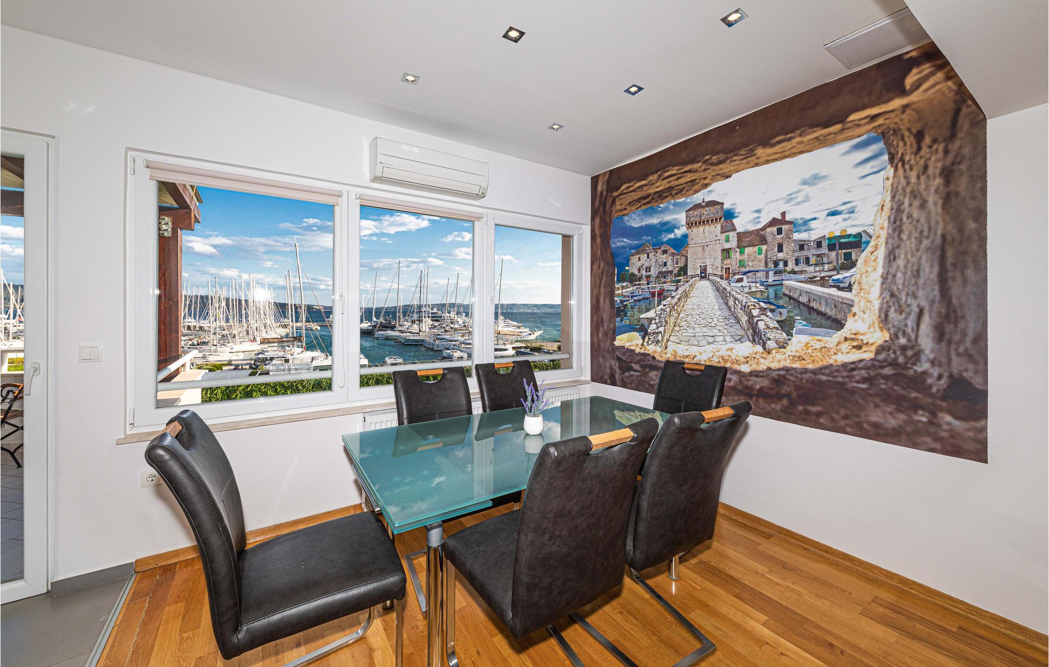Dieses moderne und komfortable Feriendomizil mit Pool befindet sich in exklusiver Lage und ist ganz nah am Yachthafen und den Stränden. Das Haus besteht aus vielen Wohneinheiten, die durch Außentreppen miteinander verbunden sind, weshalb es sich besonders für einen gemeinsamen Urlaub von Freundesgruppen oder Familien eignet. Die niedrigste Deckenhöhe im Dachgeschoss beträgt 120 cm. An der großen, offenen Terrasse befindet sich der beheizte Swimmingpool mit Gegenstromanlage, wo Sie auch an kühleren Tagen das Baden genießen können. In unmittelbarer Nähe befindet sich die Stadtmitte, in der sich viele Restaurants und weitere Geschäfte befinden. In der Nähe des Hauses gibt es einen Segelclub für Segler. In den Städten Trogir und Split werden auch die Wünsche der Anspruchsvollsten erfüllt, unter anderem können Sie die reiche Kultur kennenlernen. Fahrräder, SUP und Kajak stehen Ihnen zur Verfügung, die zusammen mit CDF972 und CDF075 benutzt werden. Frühstück mit Zuzahlung kann vor Ort mit dem Vermieter vereinbart werden.