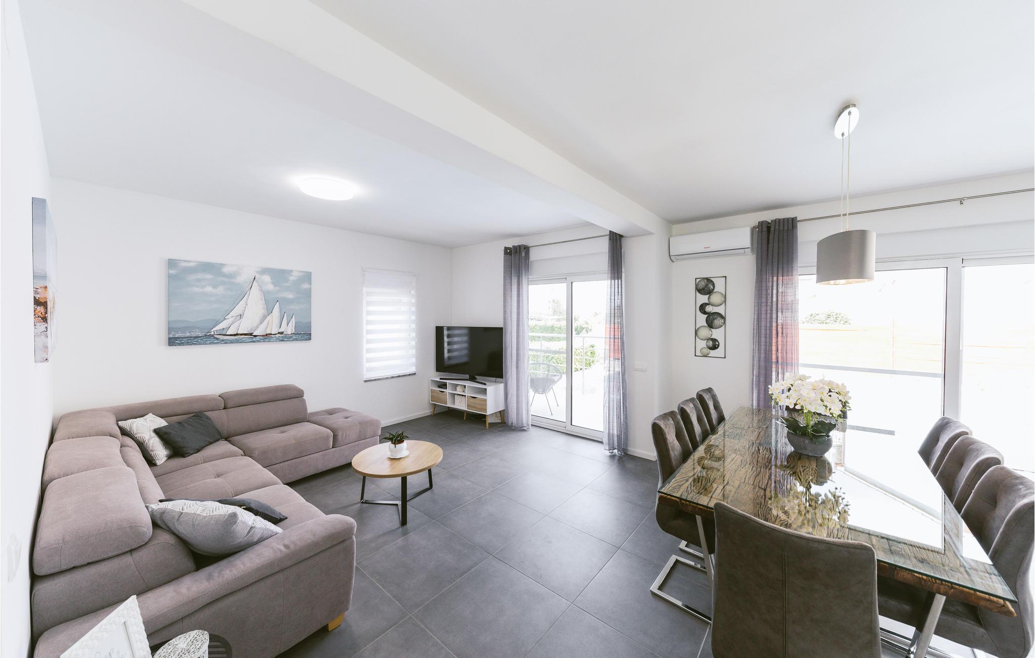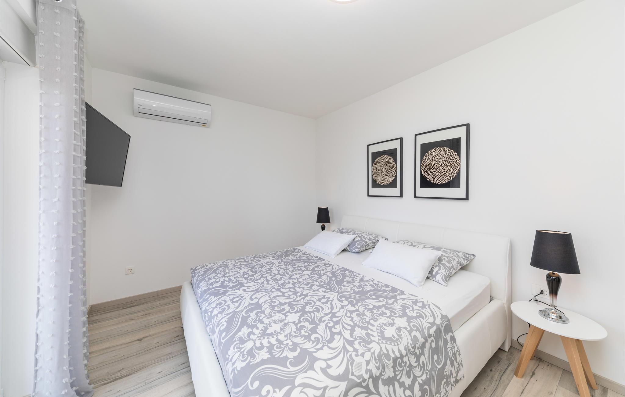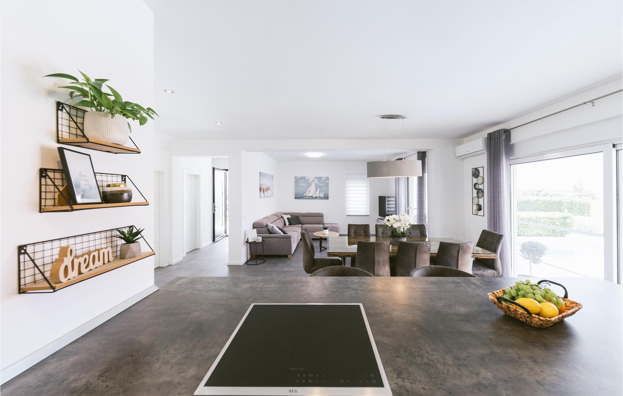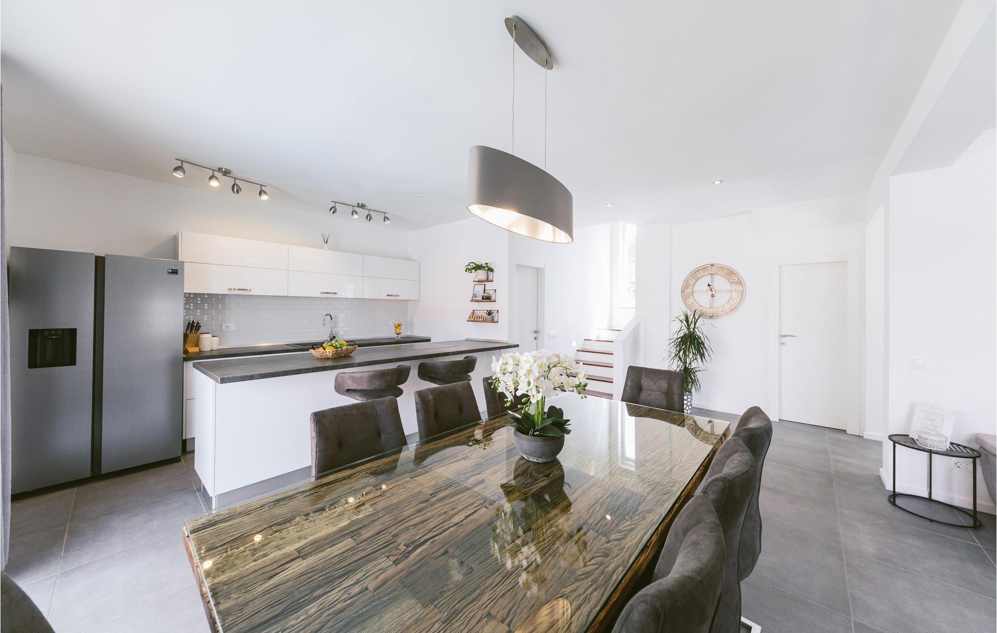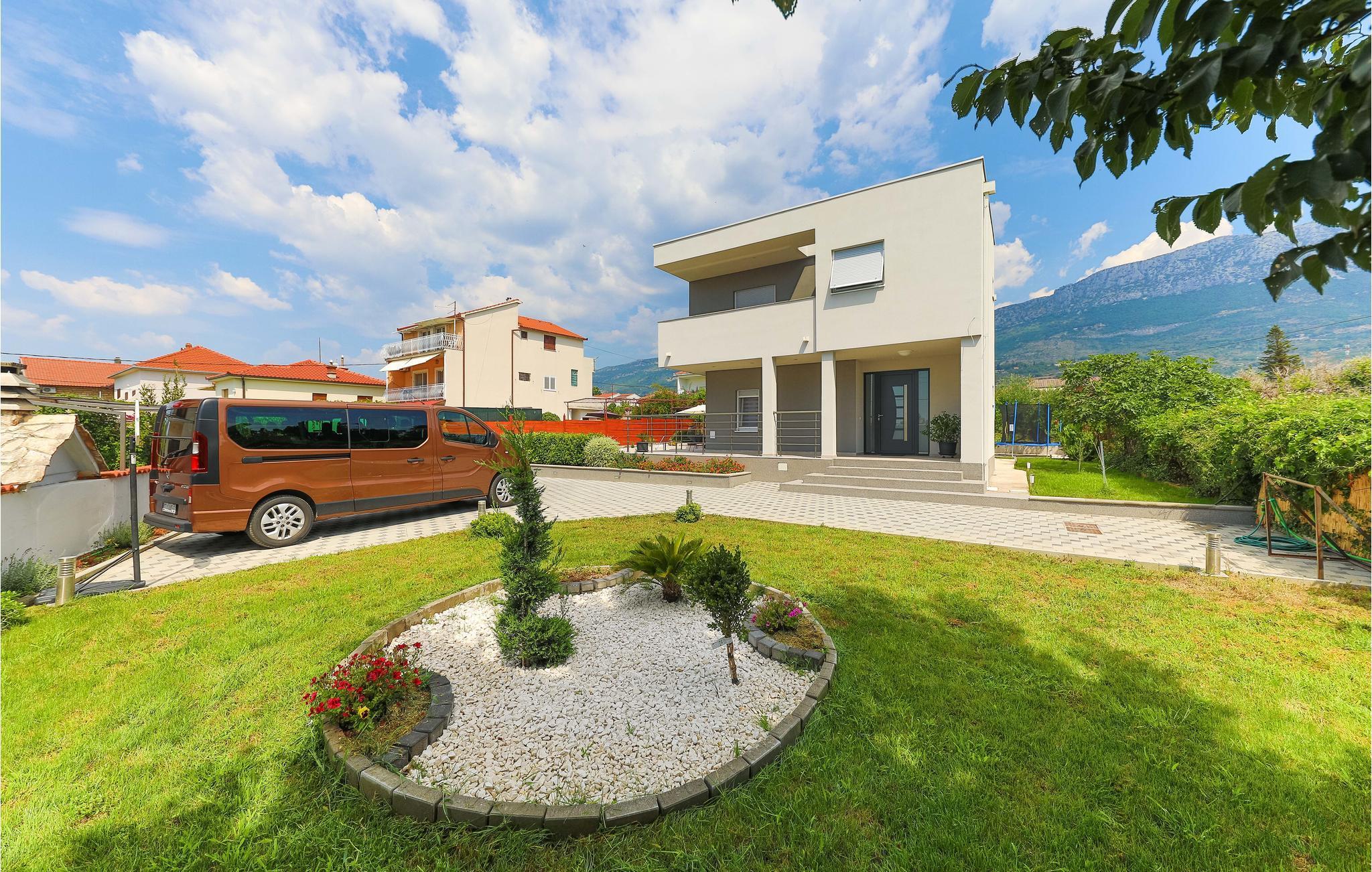 Dieses großartige Ferienhaus mit Pool liegt nur 3 Gehminuten vom wunderschönen klaren Meer der Bucht von Kaštelanski entfernt, in Kaštel Kambelovac nahe der Stadt Trogir. Voll ausgestattet für einen komfortablen Familienurlaub mit Freunden verfügt das Ferienhaus unter anderem über vier Schlafzimmer und eine große Terrasse in der Nähe des Pools. Genießen Sie hier viele Sommerveranstaltungen und Restaurants, die täglich frische mediterrane Köstlichkeiten und Premium-Wein anbieten, wo Sie sich mit der regionalen Küche vertraut machen können, und schöne lange Abendspaziergänge entlang der Küste. Der Mond und die Sterne sind selten heller und perfekt für angenehmes Nachtschwimmen.