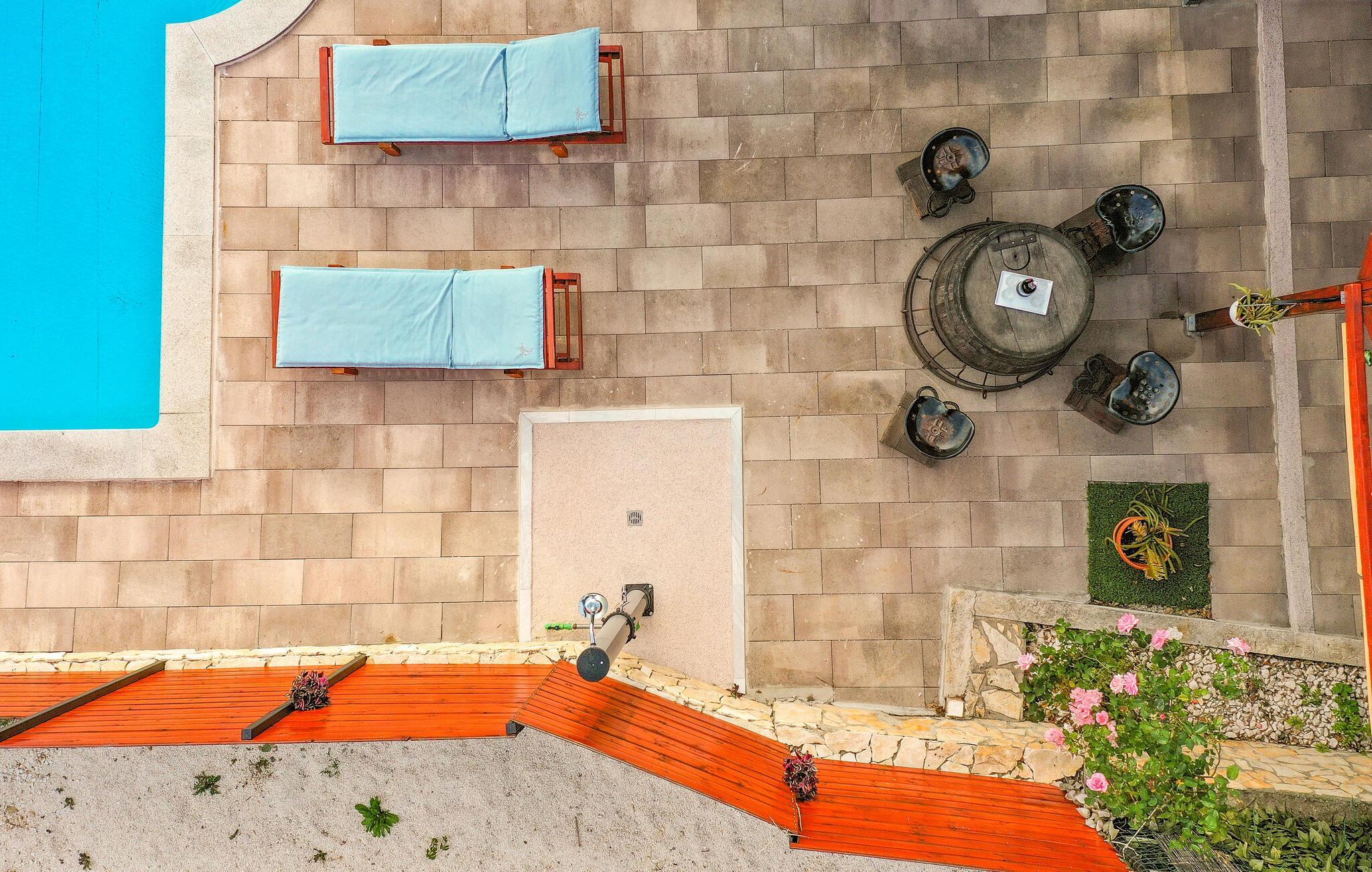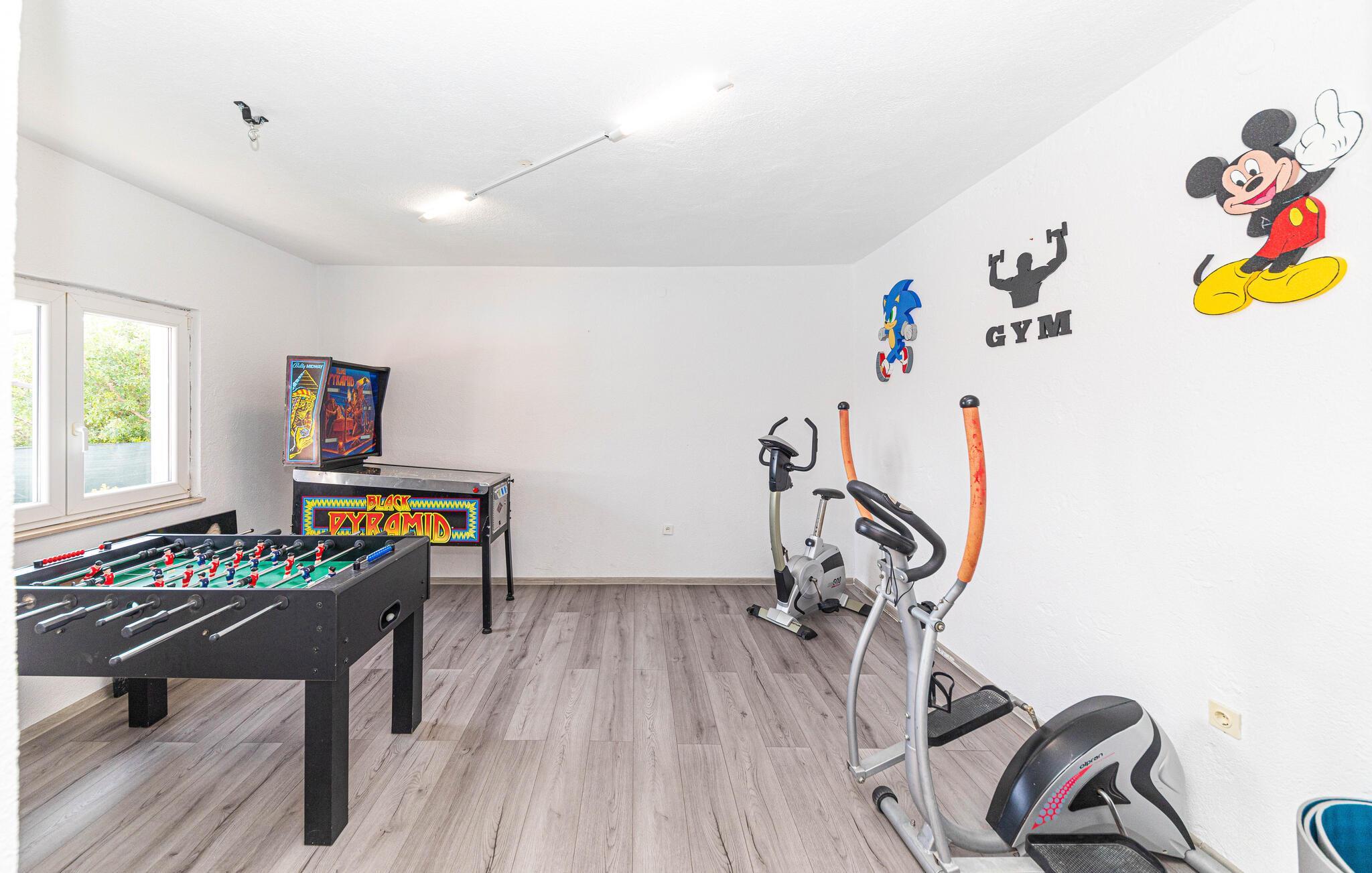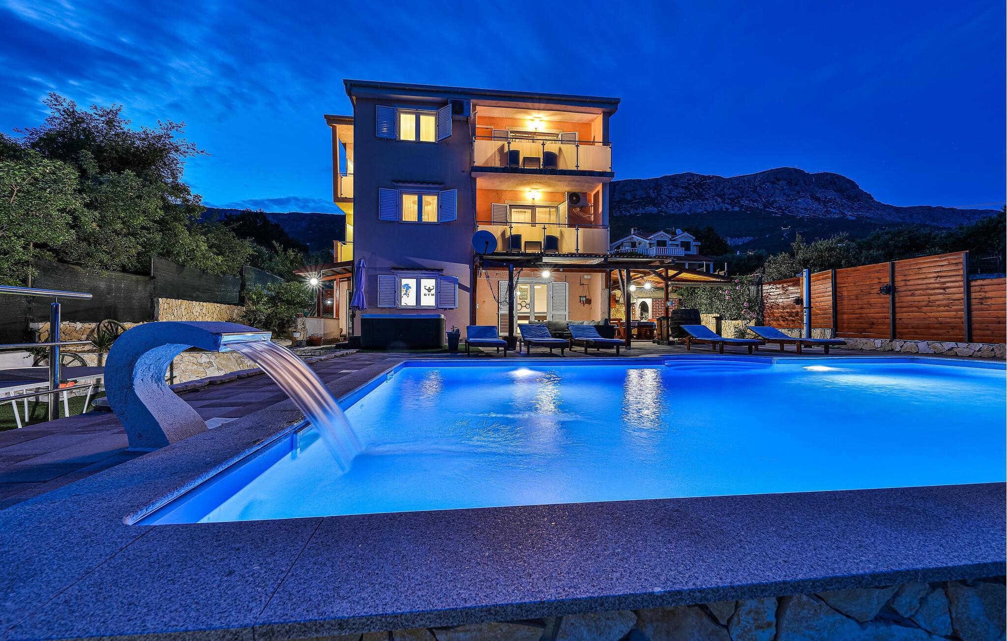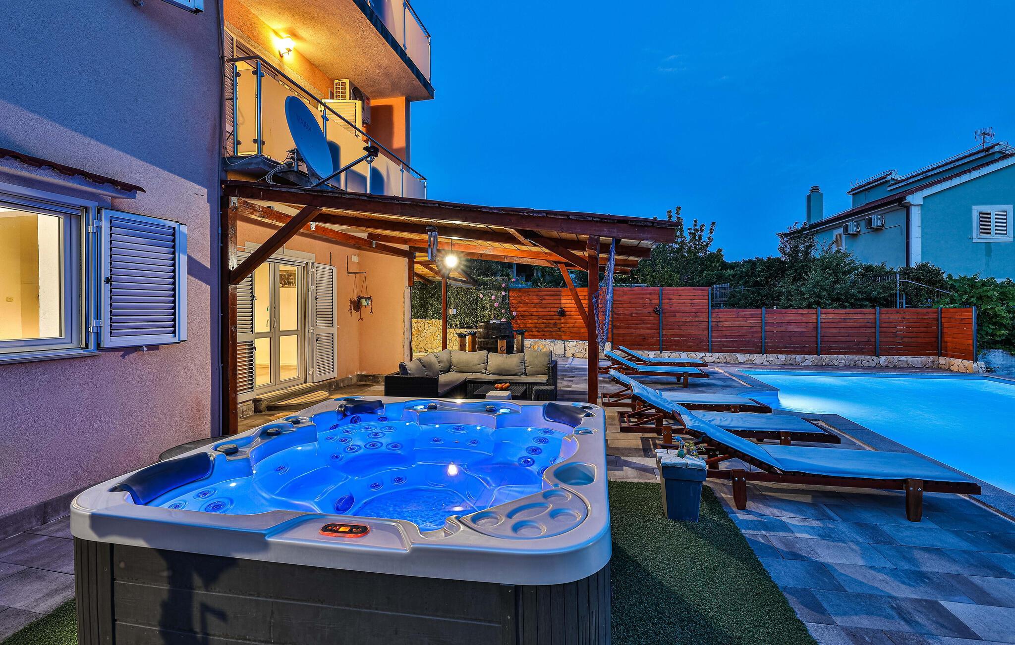 In einem ruhigen Ortsteil von Kastel Kambelovac liegt dieses Ferienhaus mit Panoramablick auf das Meer und die Bucht von Kastela. Hier können Sie Ihren Urlaub in vollen Zügen genießen. Die Etagen sind durch Innentreppen miteinander verbunden. Vor dem Haus befindet sich der erfrischende Pool, wo es an Badespaß nicht fehlen wird. Prickelndes Sprudeln bietet der Whirlpool für 6 Personen und auf dem Sonnendeck können Sie entspannen. Das ganze Angebot rundet die Sauna ab, wo Sie Körper und Seele mit Energie tanken werden. Besuchen Sie die schönen Städte Trogir und Split und ihre auf der UNESCO-Welterbeliste eingetragenen Sehenswürdigkeiten. In den märchenhaften Altstadtkernen, die einen mediterranen Charme ausstrahlen, gibt es schöne Restaurants und tolle Einkaufsmöglichkeiten sowie ein buntes Nachtleben. Spazieren Sie entlang der Riviera von Kastela und lassen Sie sich vom mediterranen Ambiente verzaubern.