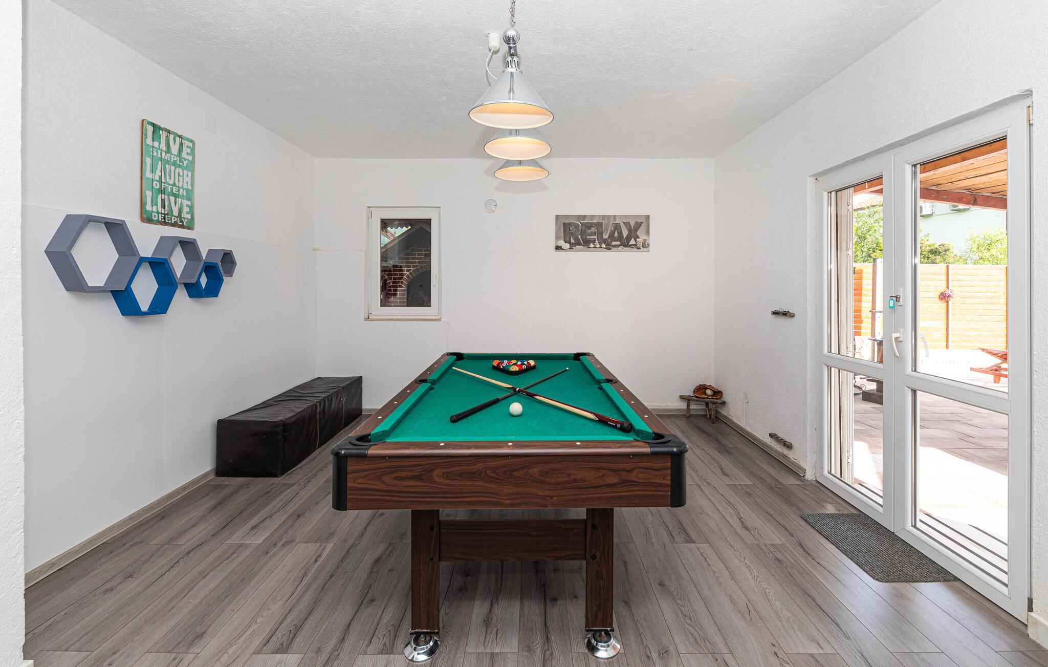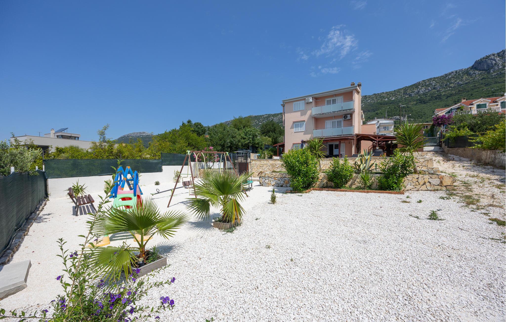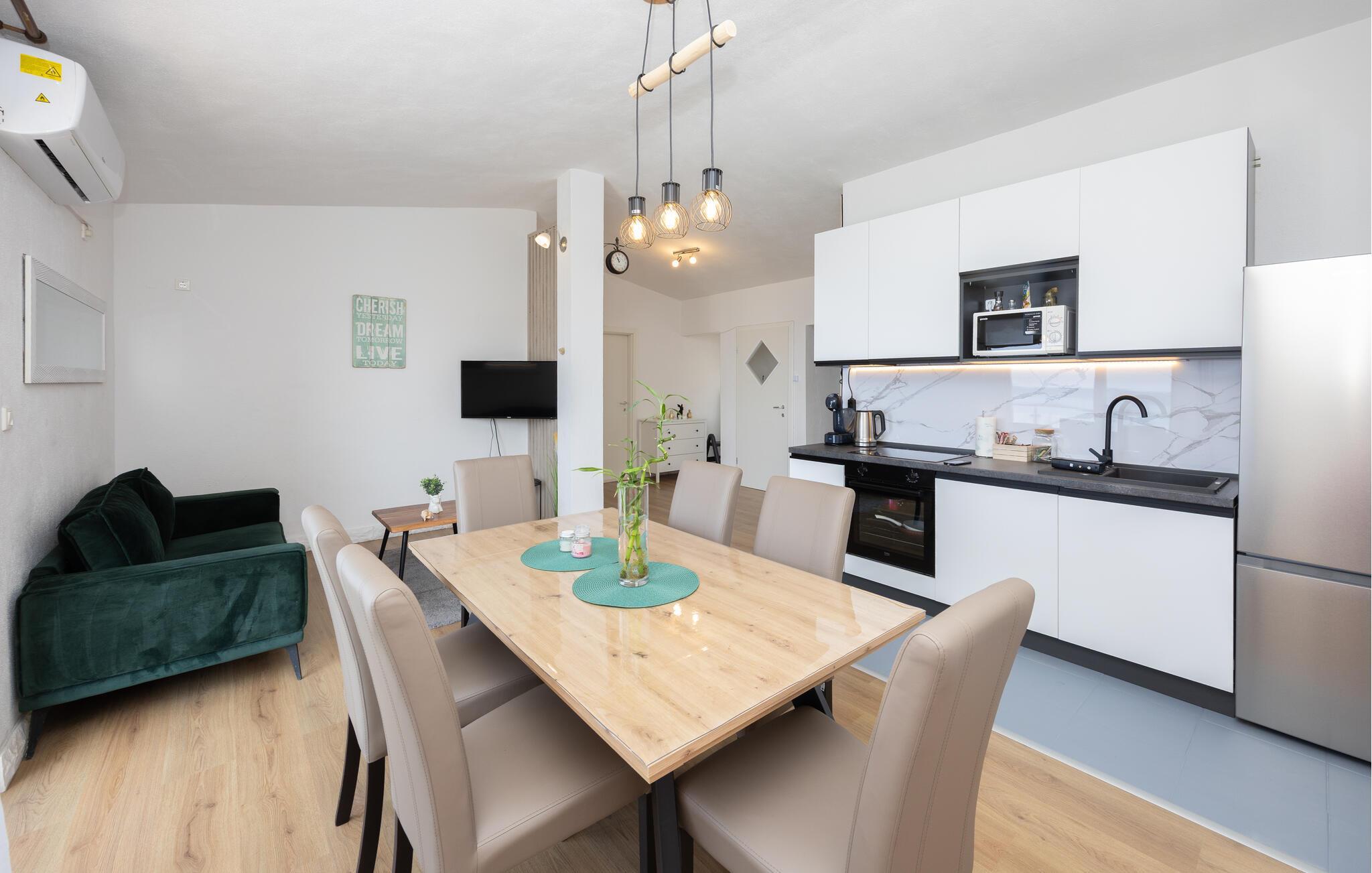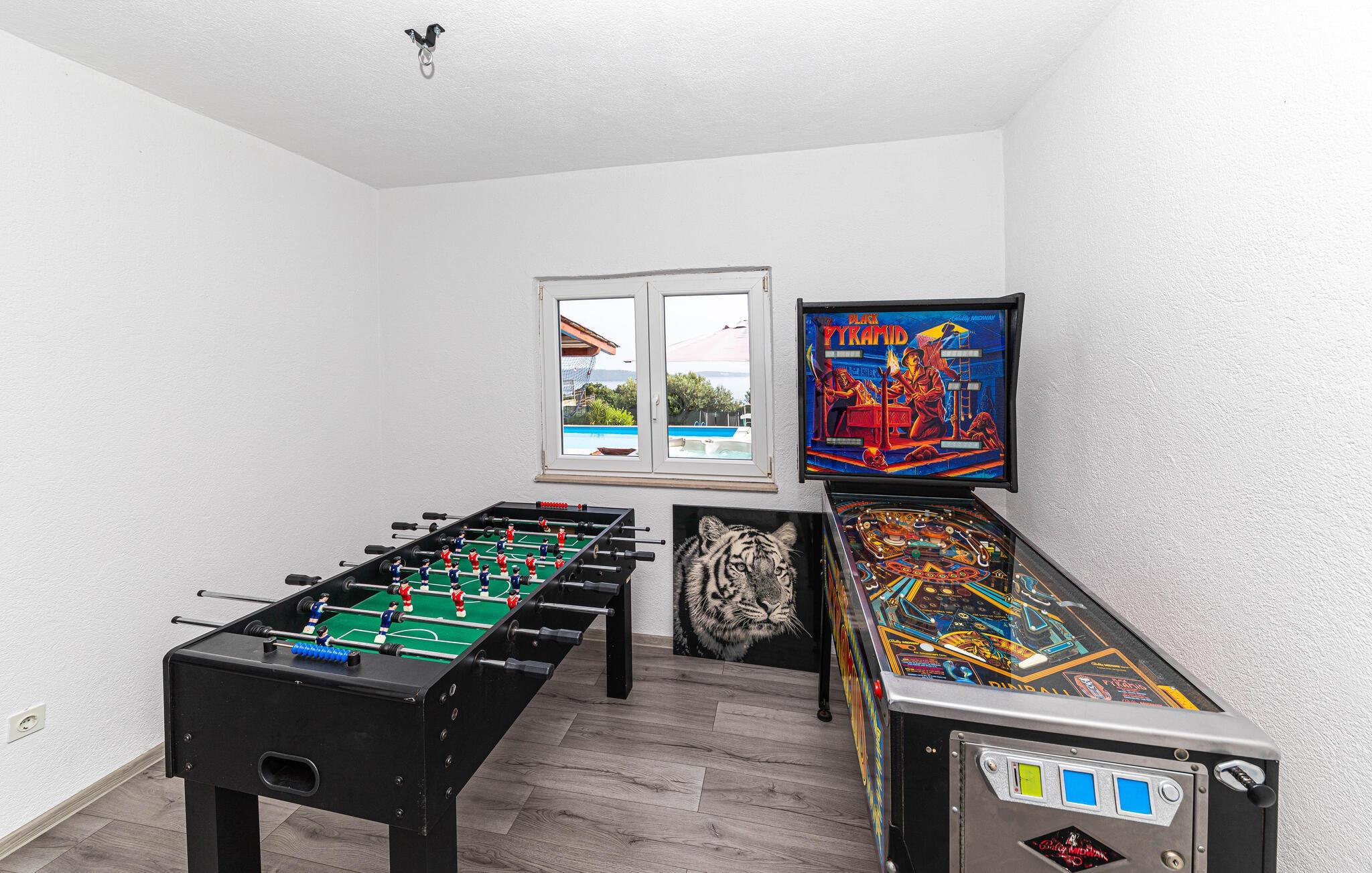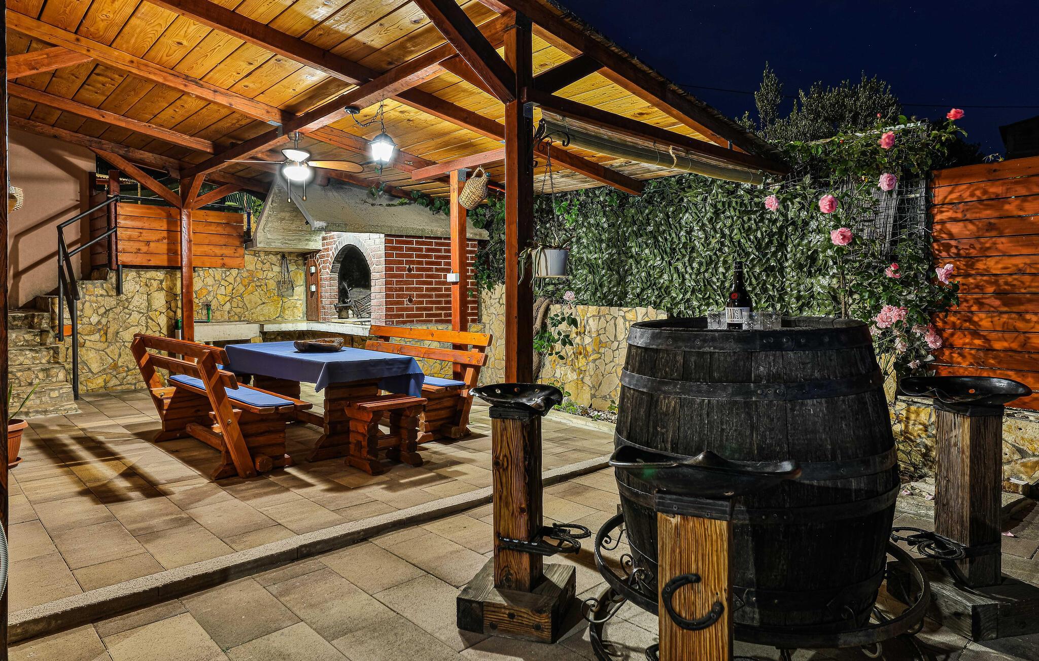In einem ruhigen Ortsteil von Kastel Kambelovac liegt dieses Ferienhaus mit Panoramablick auf das Meer und die Bucht von Kastela. Hier können Sie Ihren Urlaub in vollen Zügen genießen. Die Etagen sind durch Innentreppen miteinander verbunden. Vor dem Haus befindet sich der erfrischende Pool, wo es an Badespaß nicht fehlen wird. Prickelndes Sprudeln bietet der Whirlpool für 6 Personen und auf dem Sonnendeck können Sie entspannen. Das ganze Angebot rundet die Sauna ab, wo Sie Körper und Seele mit Energie tanken werden. Besuchen Sie die schönen Städte Trogir und Split und ihre auf der UNESCO-Welterbeliste eingetragenen Sehenswürdigkeiten. In den märchenhaften Altstadtkernen, die einen mediterranen Charme ausstrahlen, gibt es schöne Restaurants und tolle Einkaufsmöglichkeiten sowie ein buntes Nachtleben. Spazieren Sie entlang der Riviera von Kastela und lassen Sie sich vom mediterranen Ambiente verzaubern.
