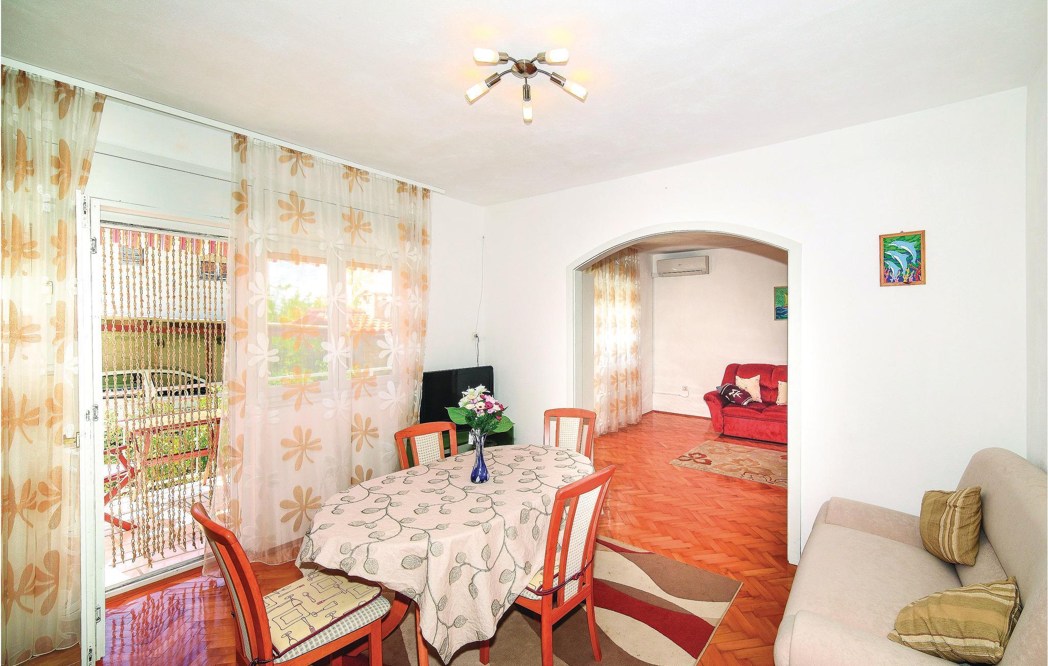 Diese funktional eingerichtete Ferienwohnung im Erdegeschoss eines privaten Hauses liegt in Kastel Kambelovac. Die Ferienwohnung besteht aus zwei Schlafzimmer, Badezimmer und aus einer Küche mit Wohnraum. Die Ferienwohnung hat eine Terrasse mit Meerblick auf der Südseite. Ein Parkplatz in der Garage und der Gemeinschafts-Grill stehen Ihnen zur Verfügung. Entspannen Sie an den nahe gelegenen Beton- und Kiesstränden, diese sind auch gut für Ihre Kinder geeignet. Der Ort Kastel Kambelovac befindet sich zwischen den historischen Städten Trogir und Split, die Sie unbedingt besuchen und erleben müssen. Die Stadt Trogir, gehört zum Welterbe der UNESCO.