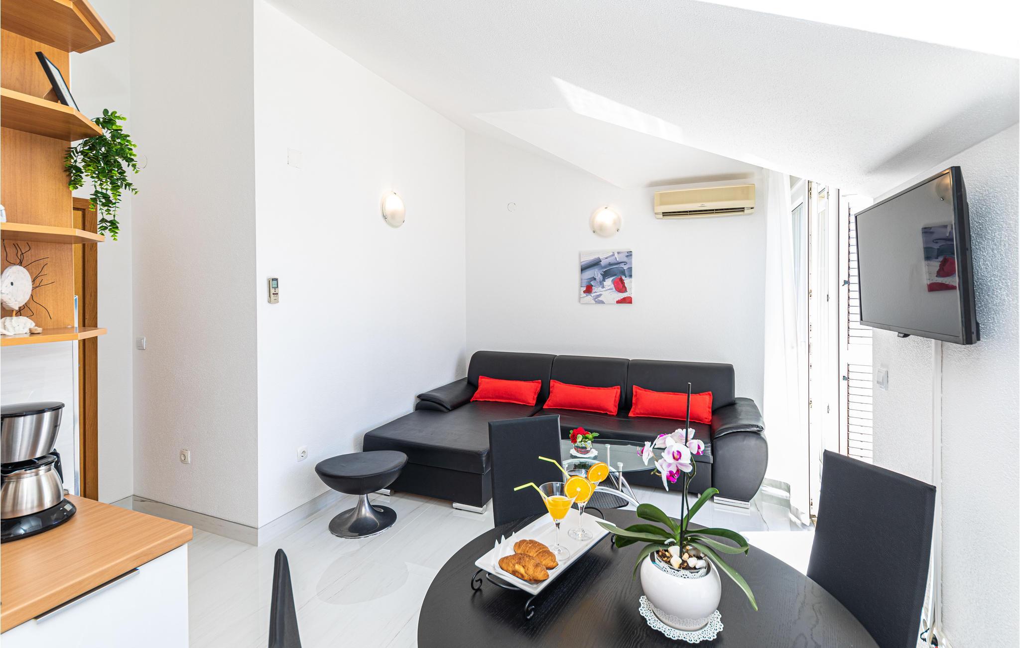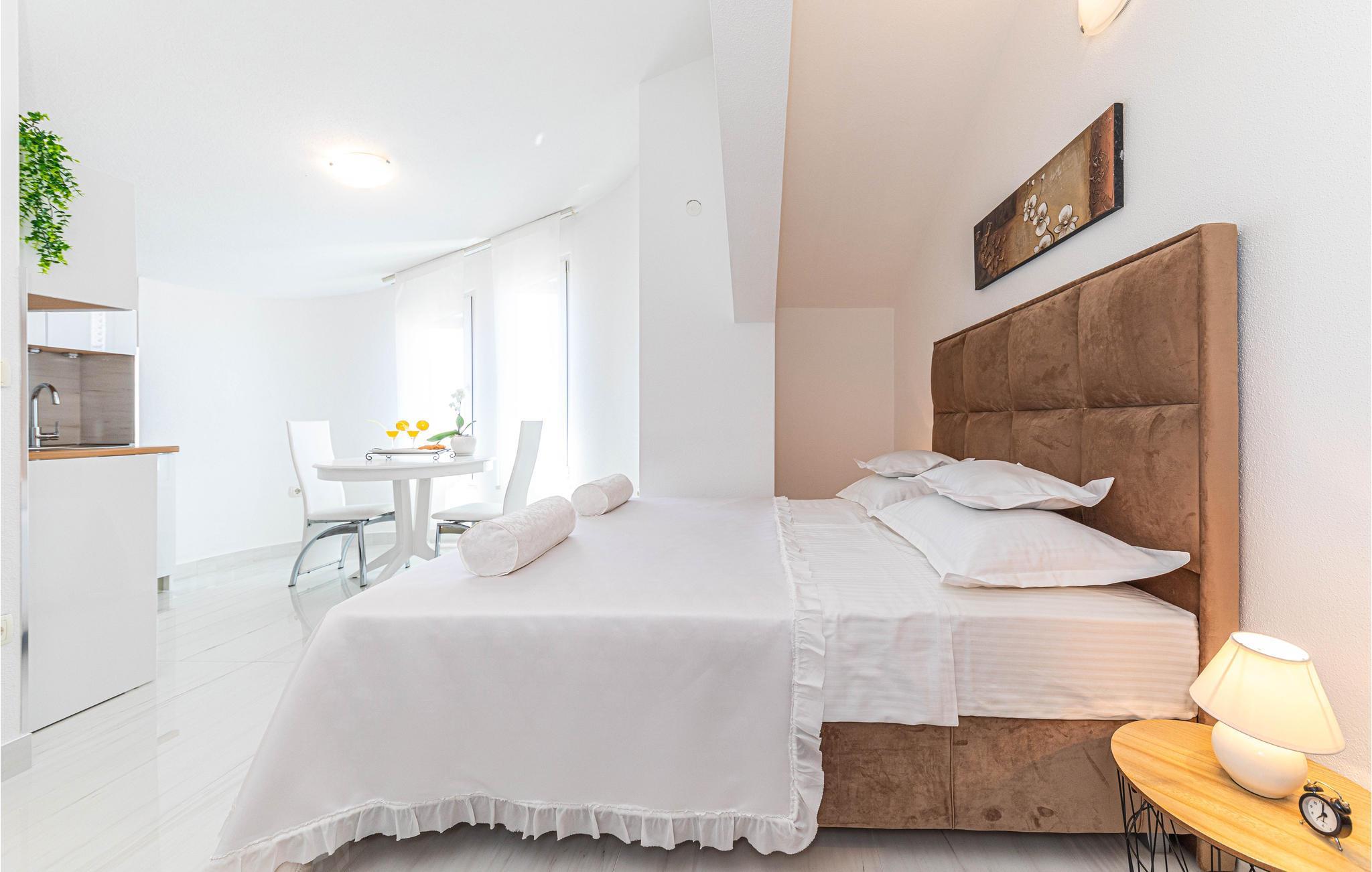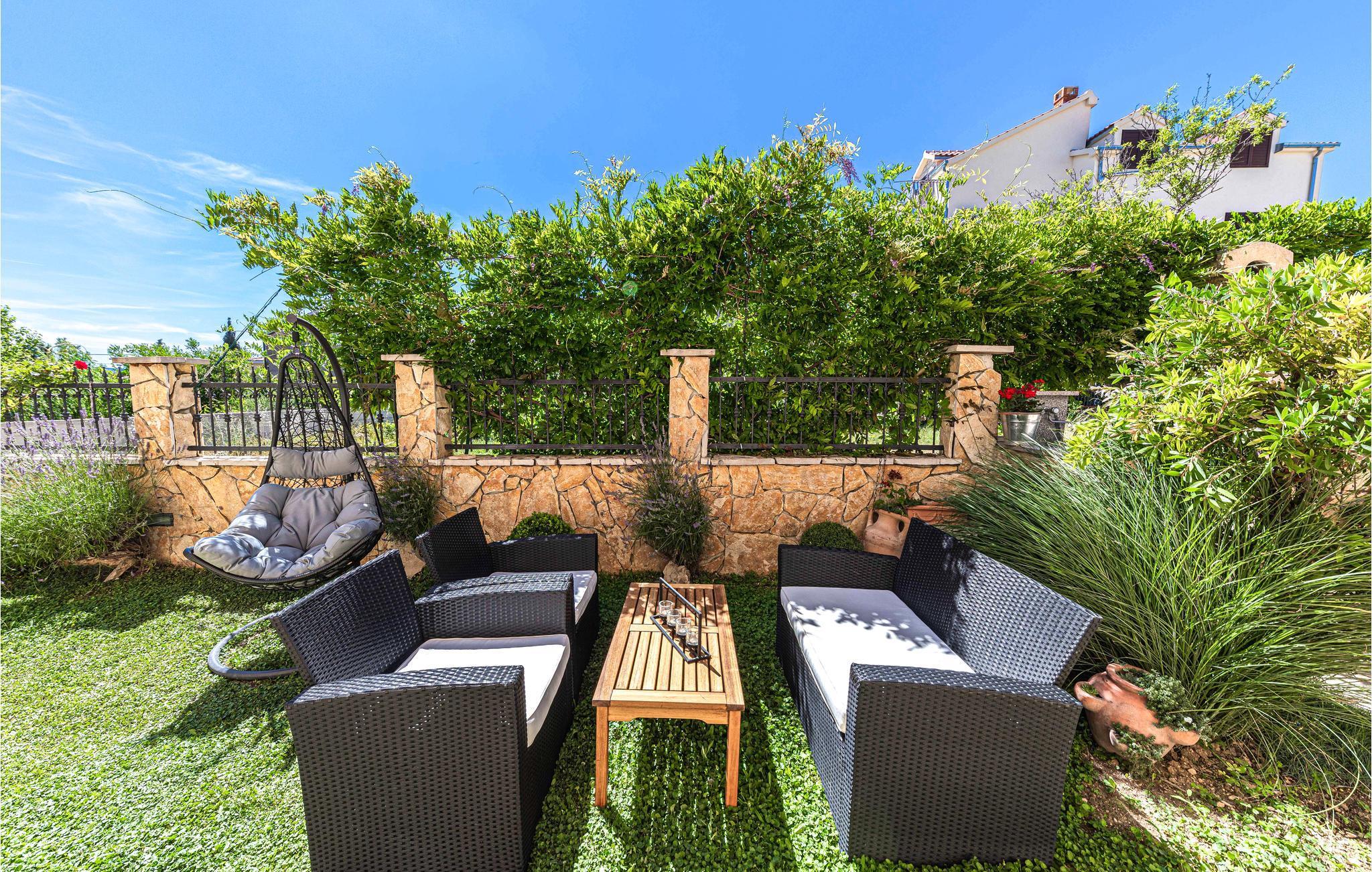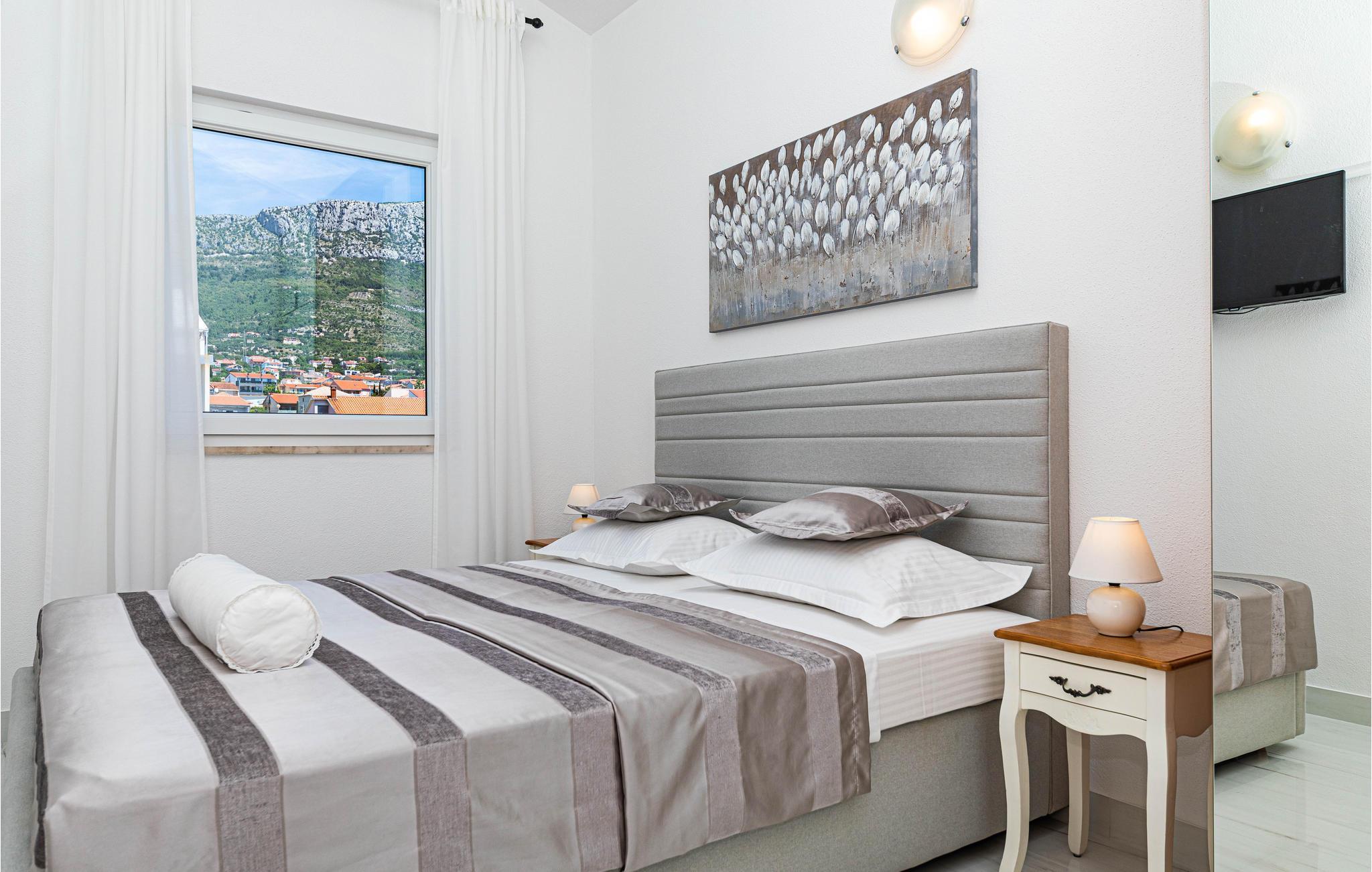 Diese schön eingerichtete Ferienwohnung liegt auf der zweiten Etage eines Privathauses und ist das einzige Objekt im Haus, das für Touristenzwecke vermietet wird. Sie besteht aus zwei Wohneinheiten, die durch einen Flur verbunden sind. Eine davon ist das Schlafzimmer 3, welches ein Studioapartment mit kleiner Küche und eigenem Bad ist. Die Mindestdeckenhöhe beträgt 170 cm. Im Erdgeschoß steht Ihnen die Terrasse mit Grill zur Verfügung. Genießen Sie die Sonne und das Meer am nahegelegenen Strand, den Sie in wenigen Gehminuten erreichen. Besuchen Sie die kulturreichen Städte Trogir und Split.