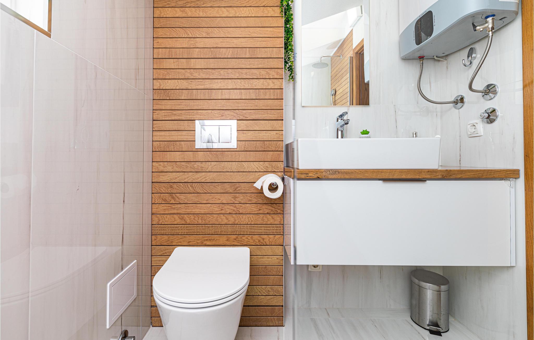 Badezimmer (nr. 2) - WC. Warmes und kaltes Wasser. Dusche