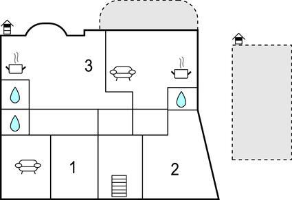 Badezimmer (nr. 3) - WC. Warmes und kaltes Wasser. Dusche